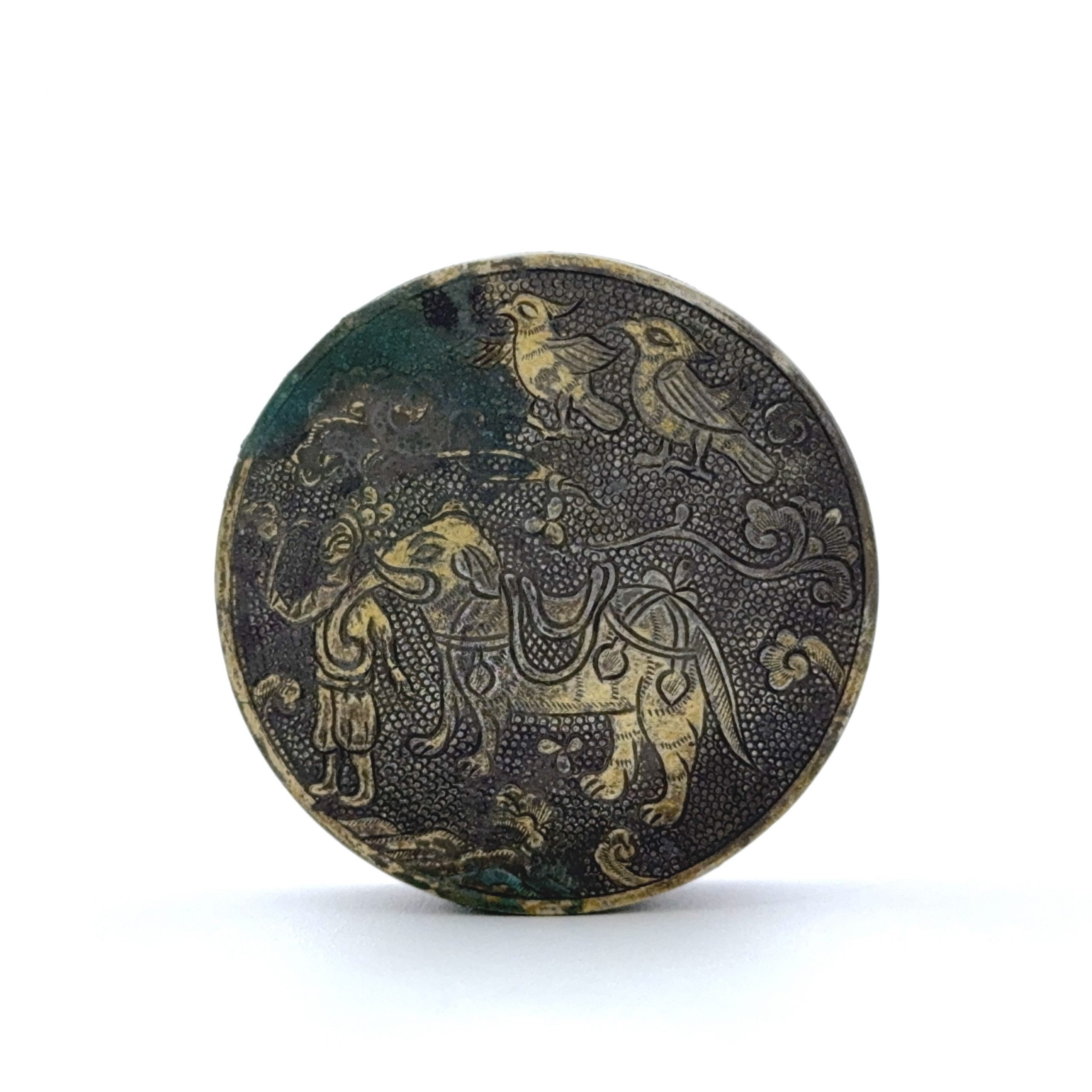唐 銀鎏金 象人物紋 圓盒 Lot1~53秦峰男収蔵品
