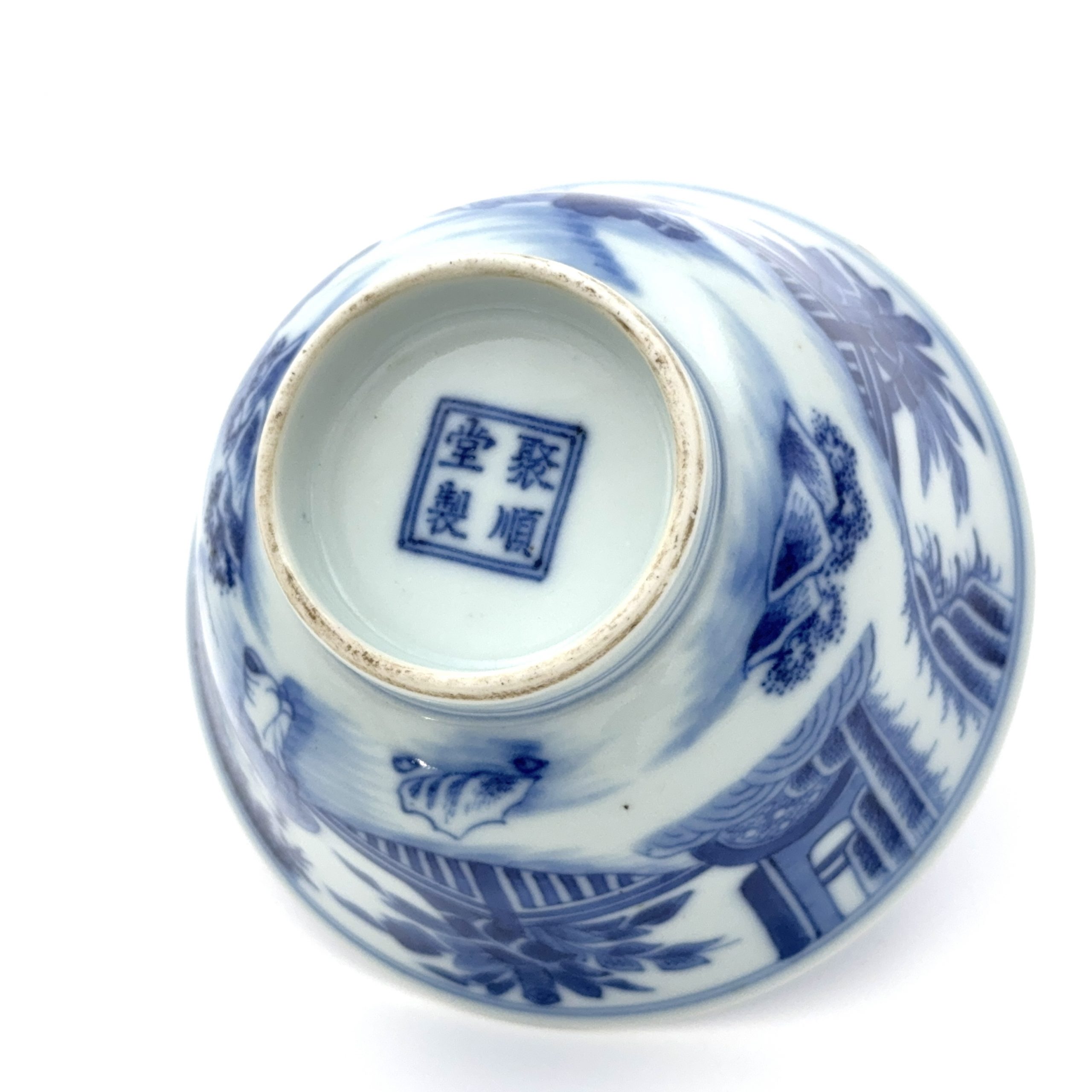 清「聚順堂製」「永楽年製」款 青花 山水人物図 杯⑤