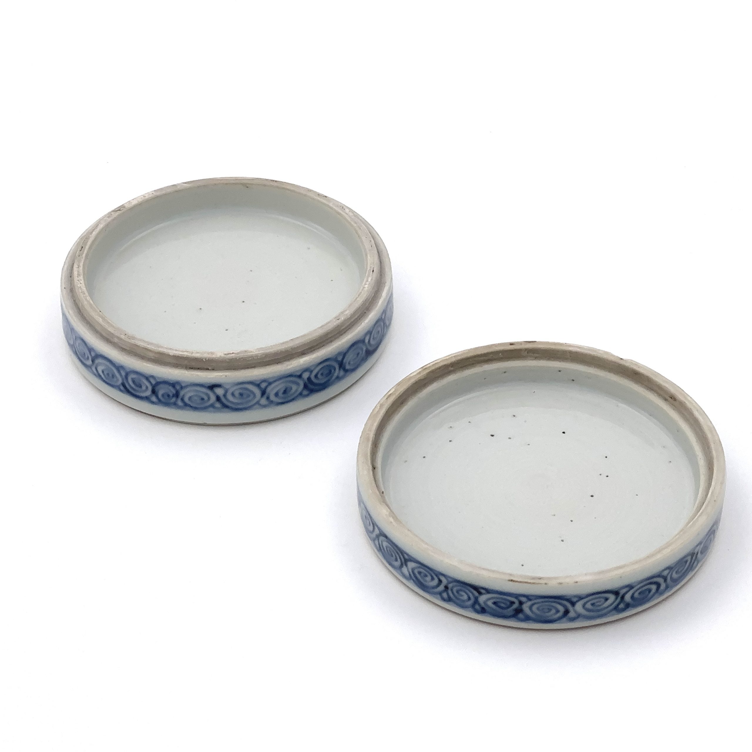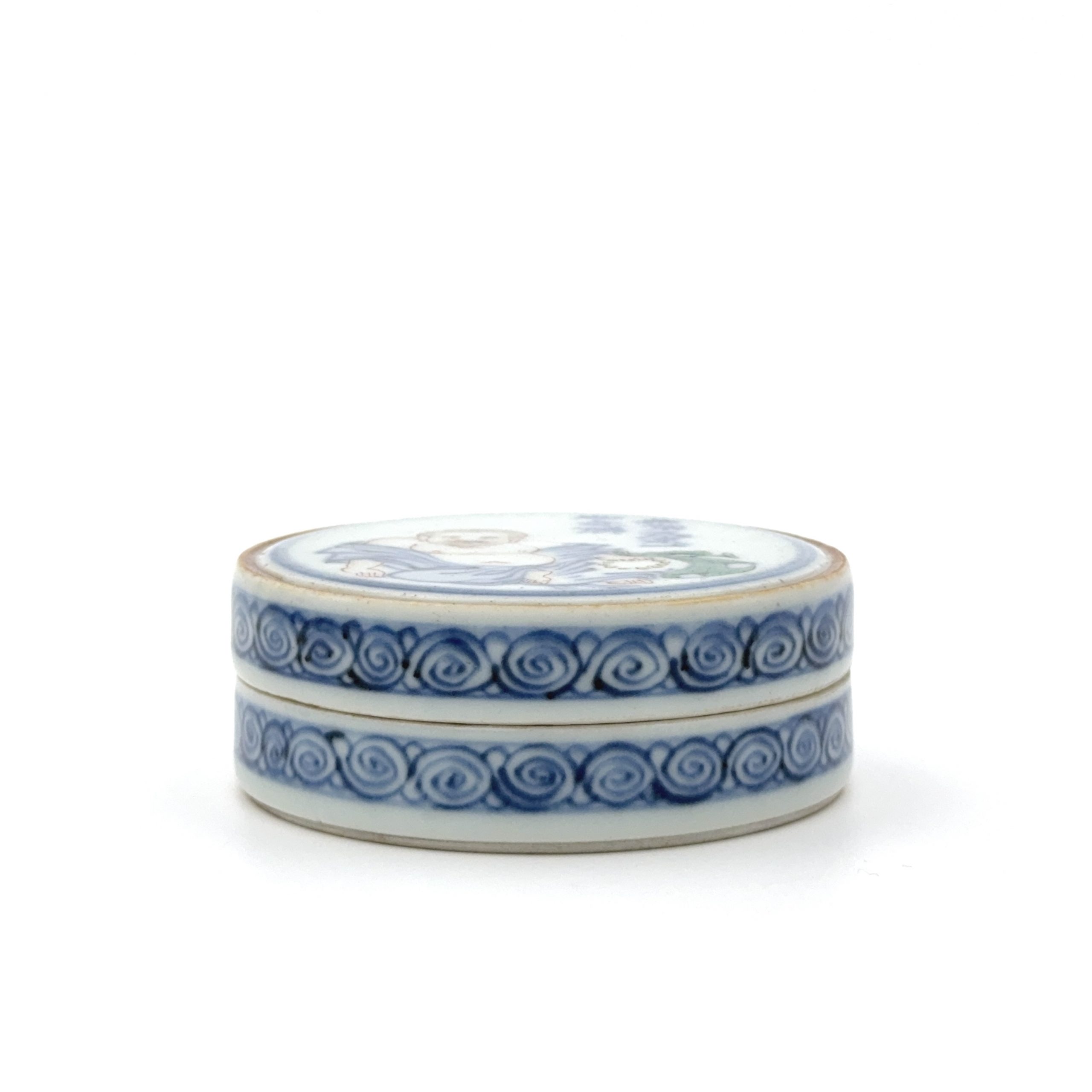 清初「成化年製」款 青花 三彩 布袋紋 圓盒