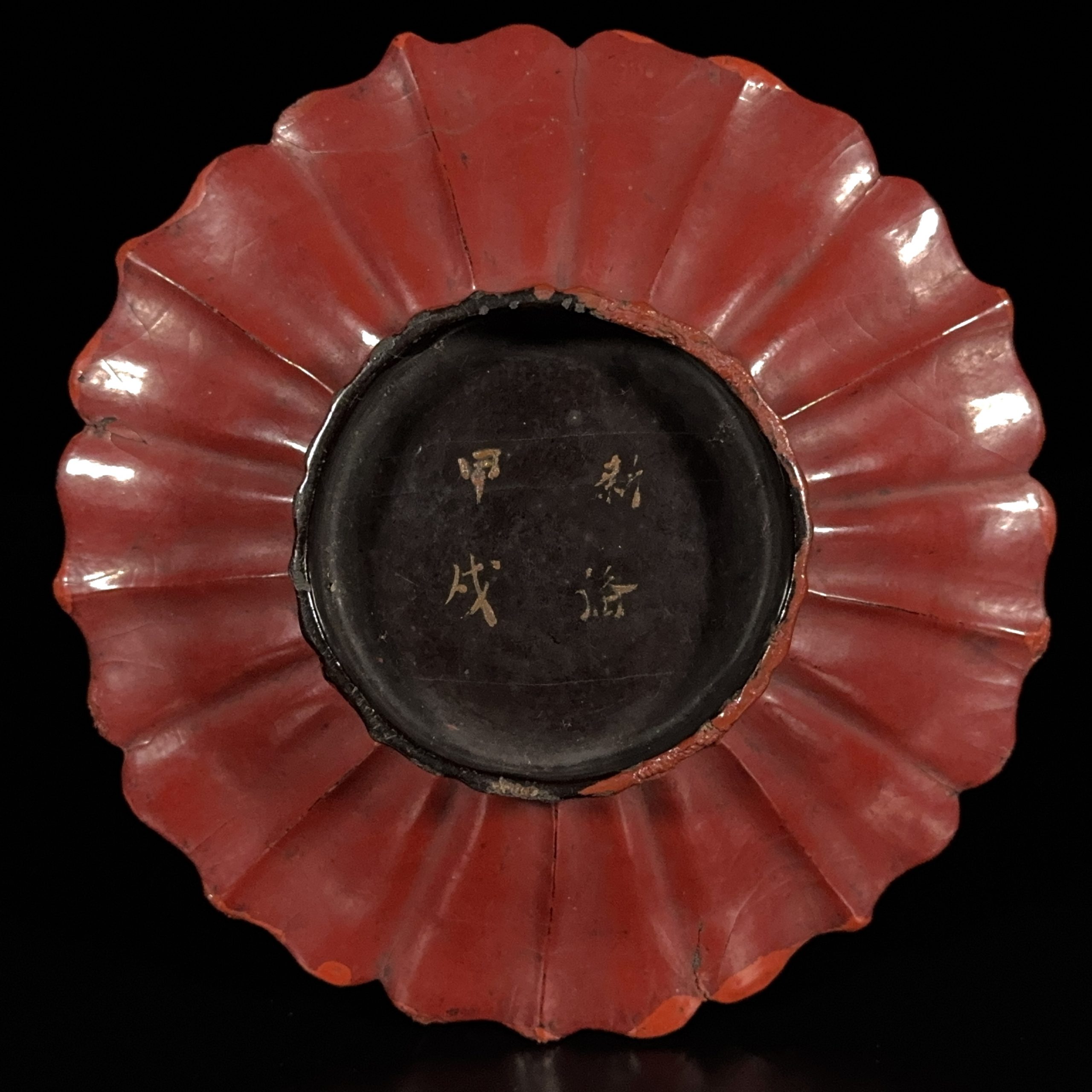 南宋/元「新洛甲戍」朱漆 輪花盤
