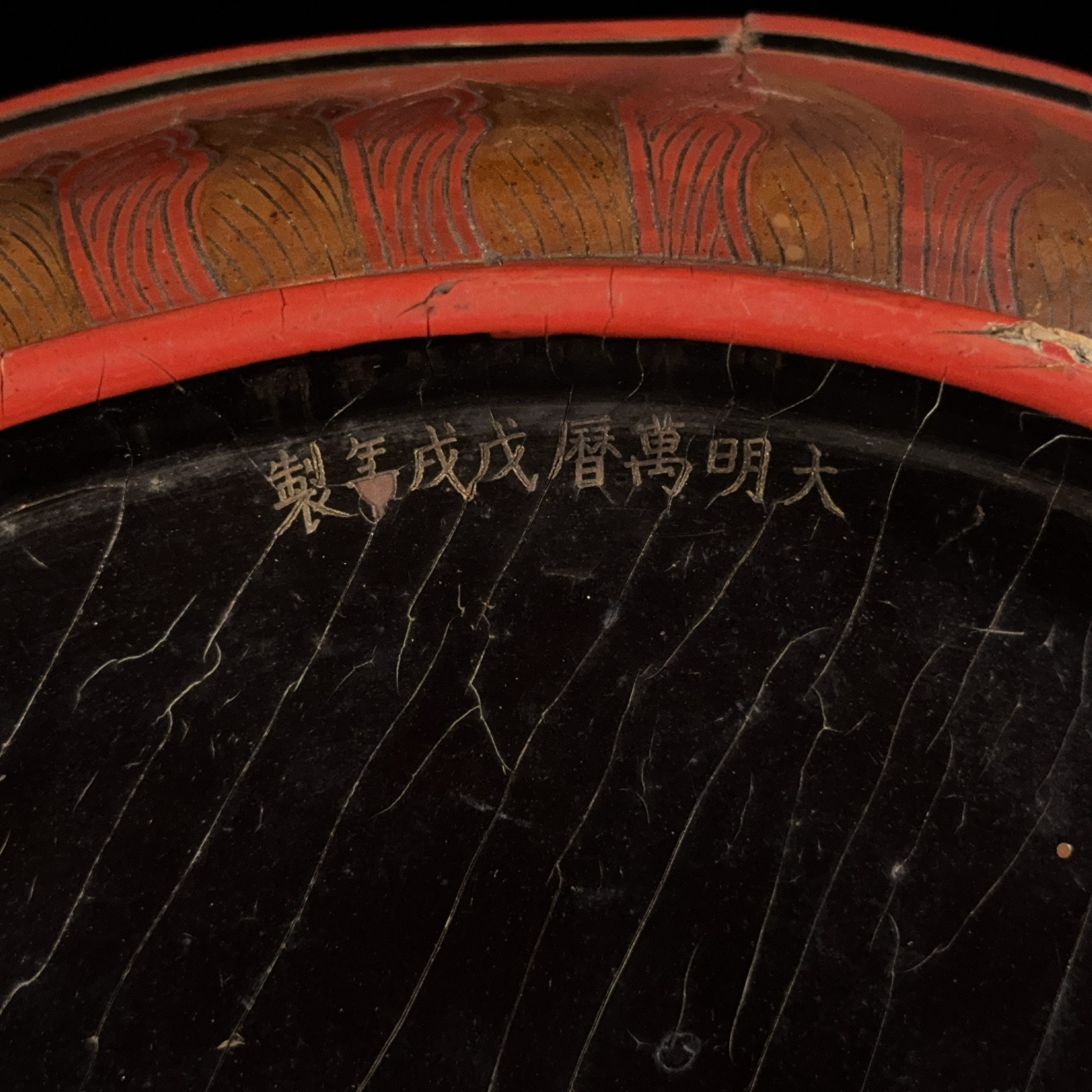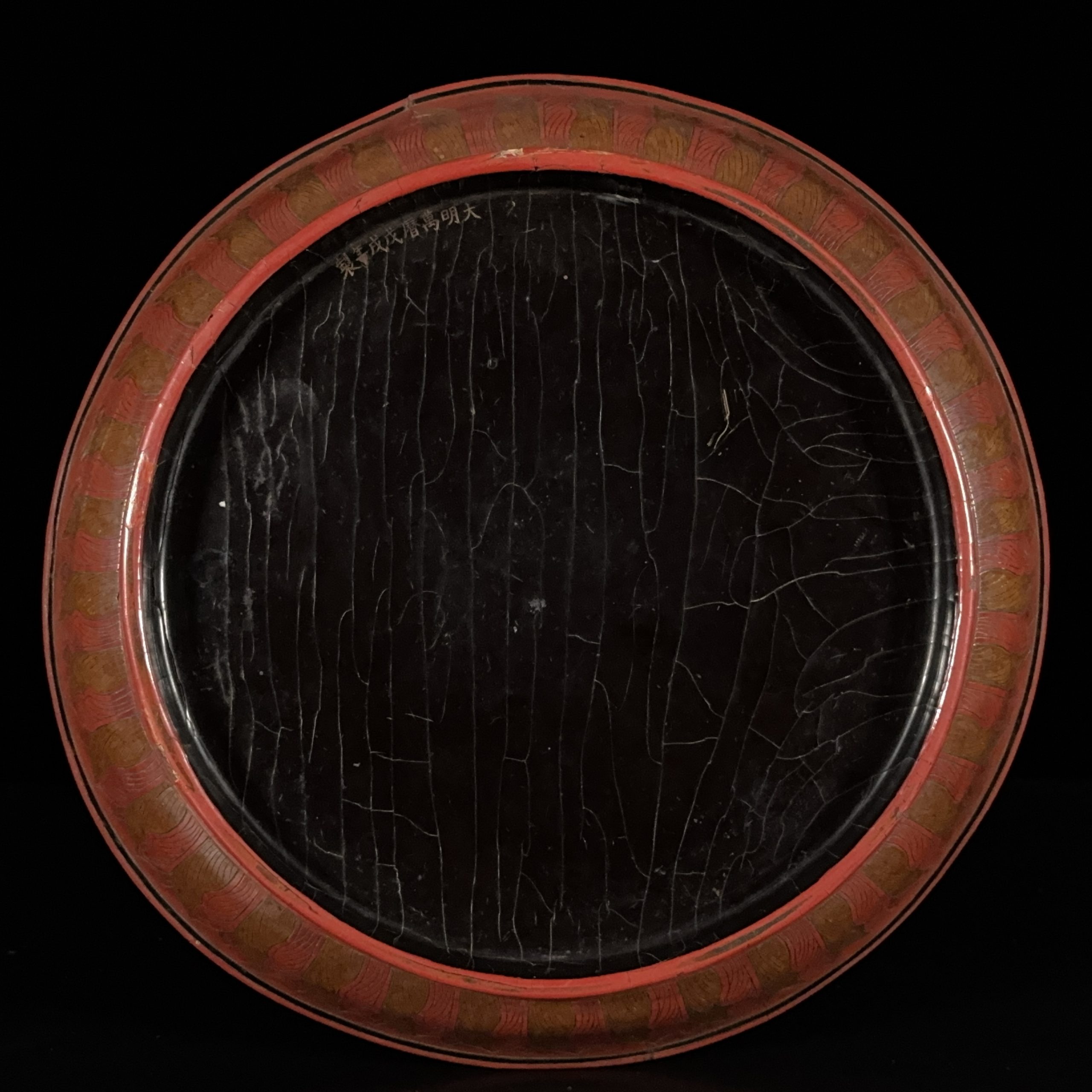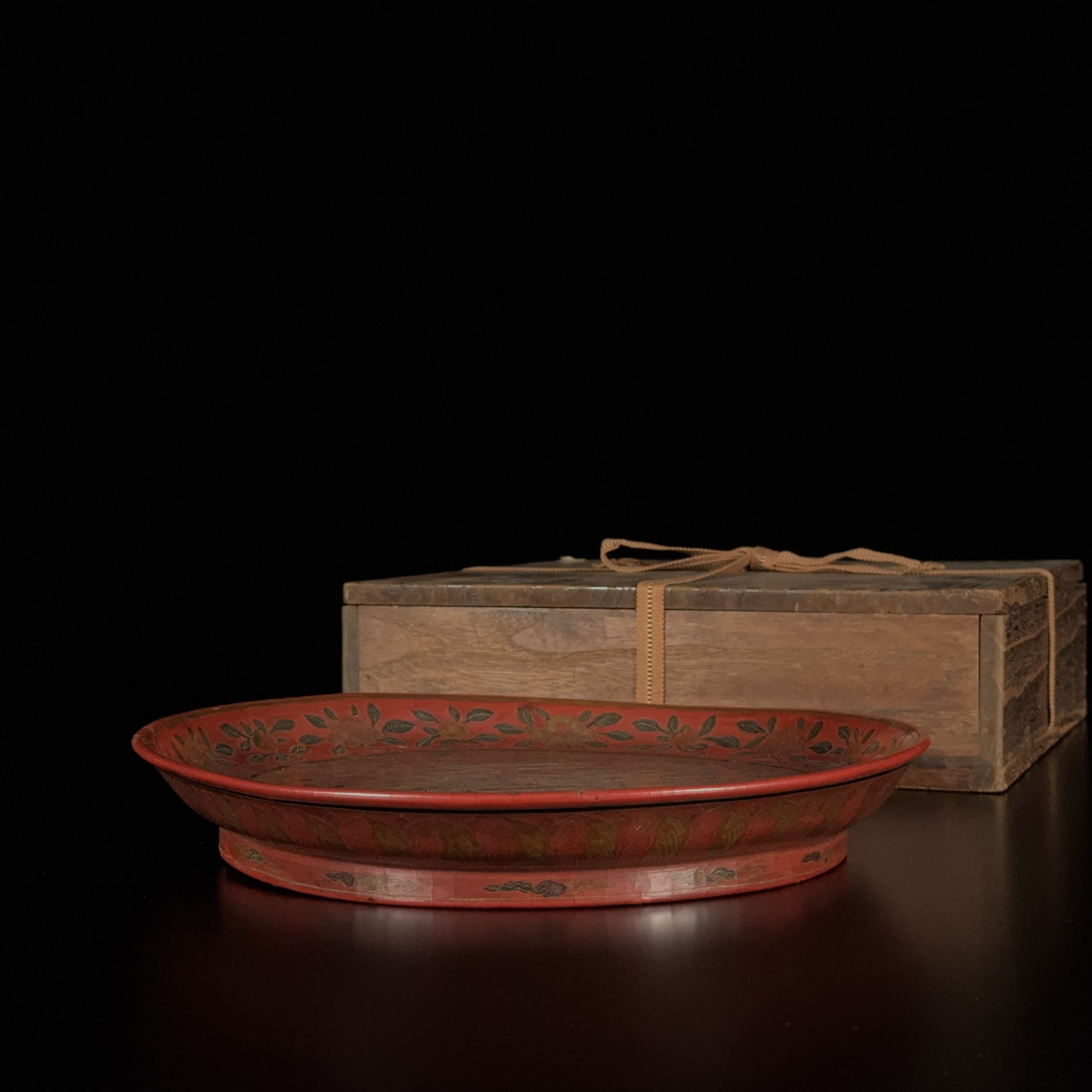 明萬暦「大明萬暦年製」款 填彩漆雕 雲龍紋 盤