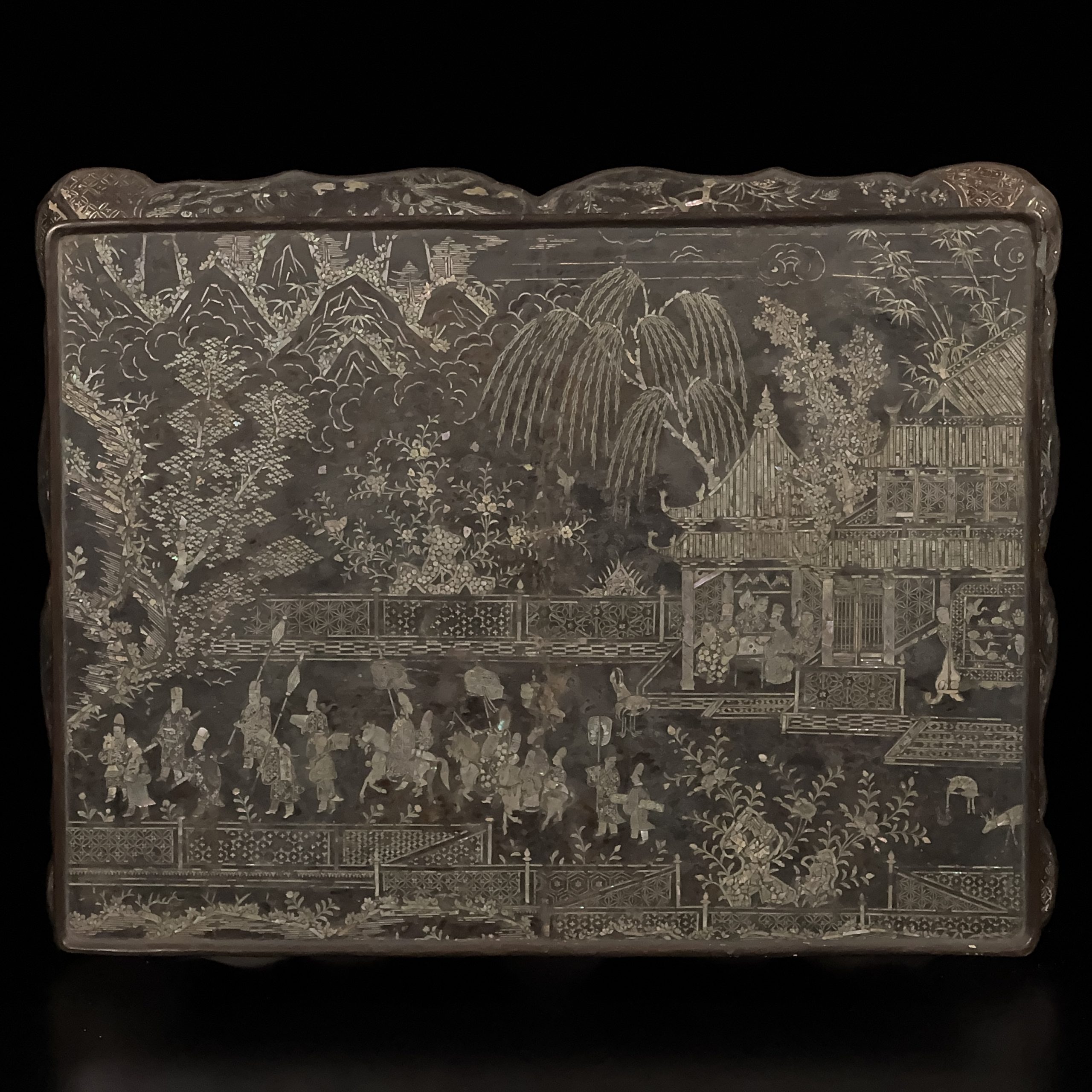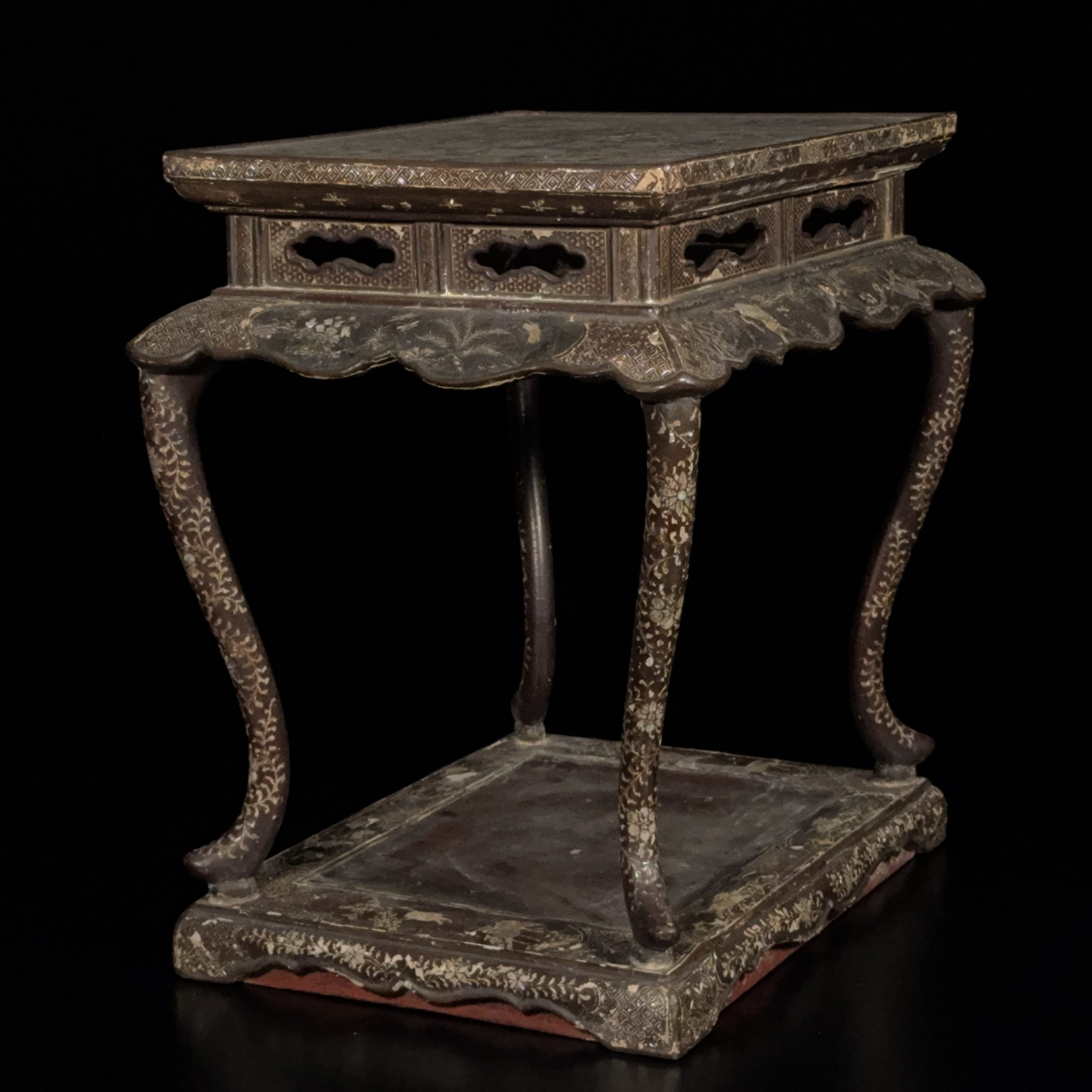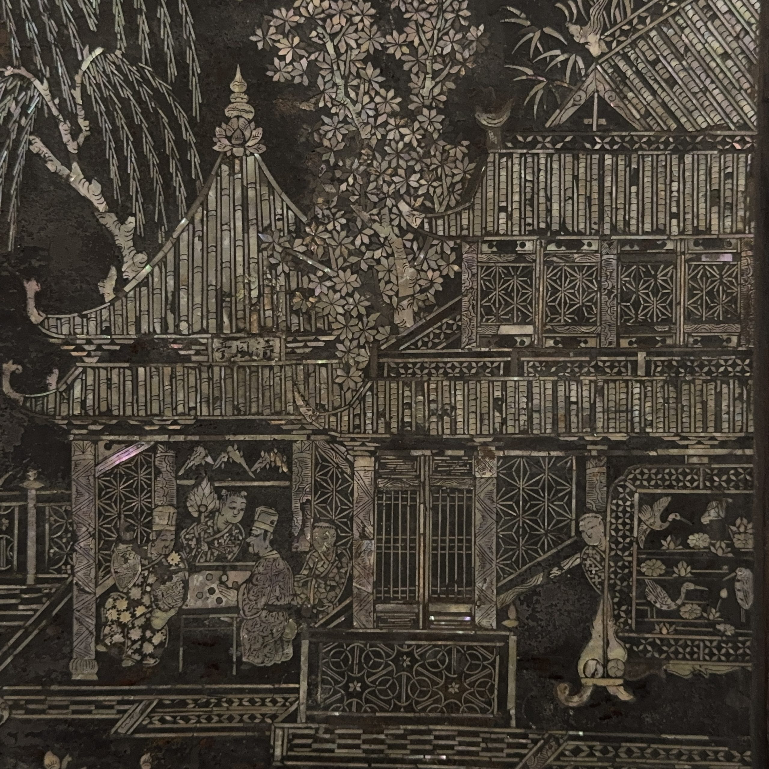 明 黒漆嵌螺鈿 楼閣人物紋 桌