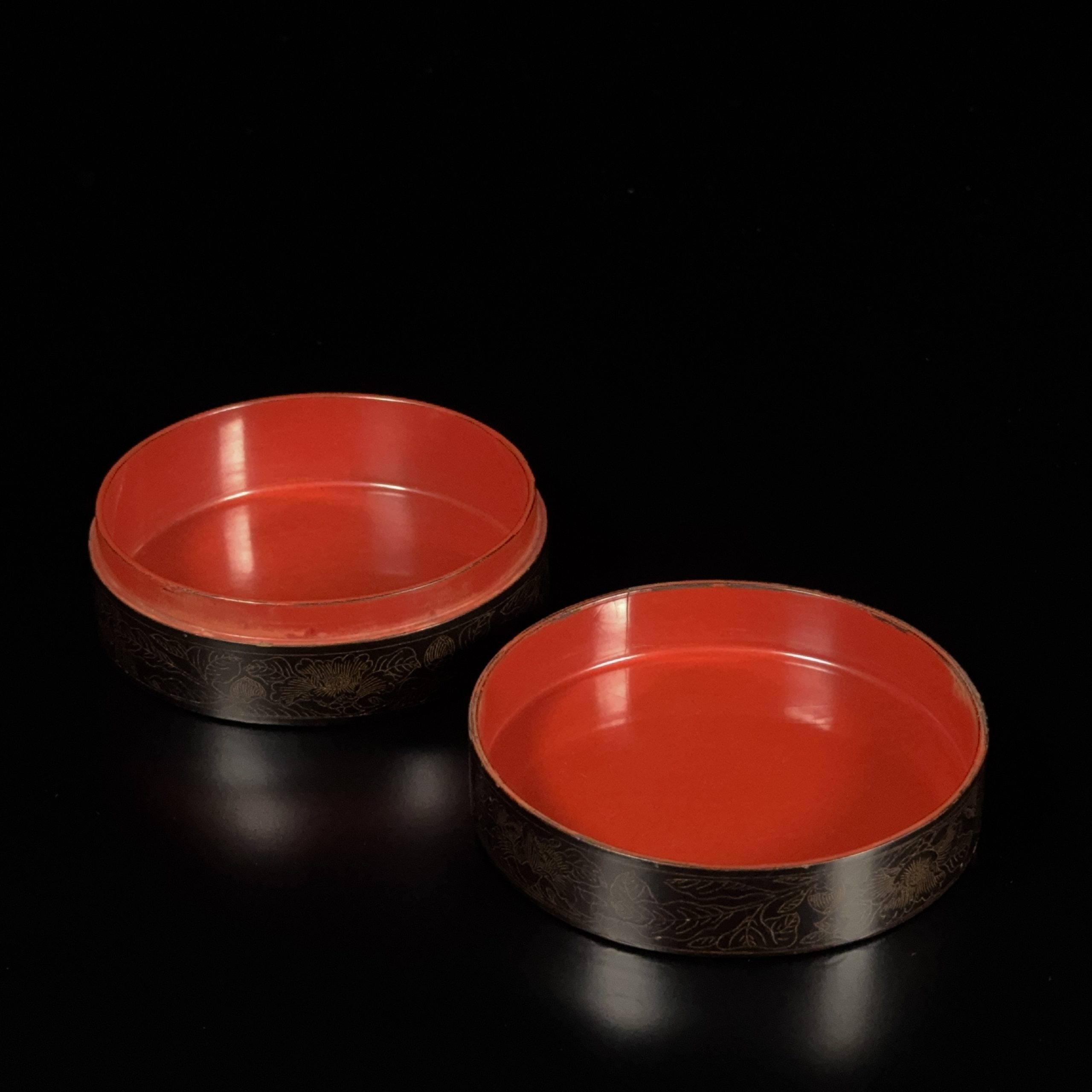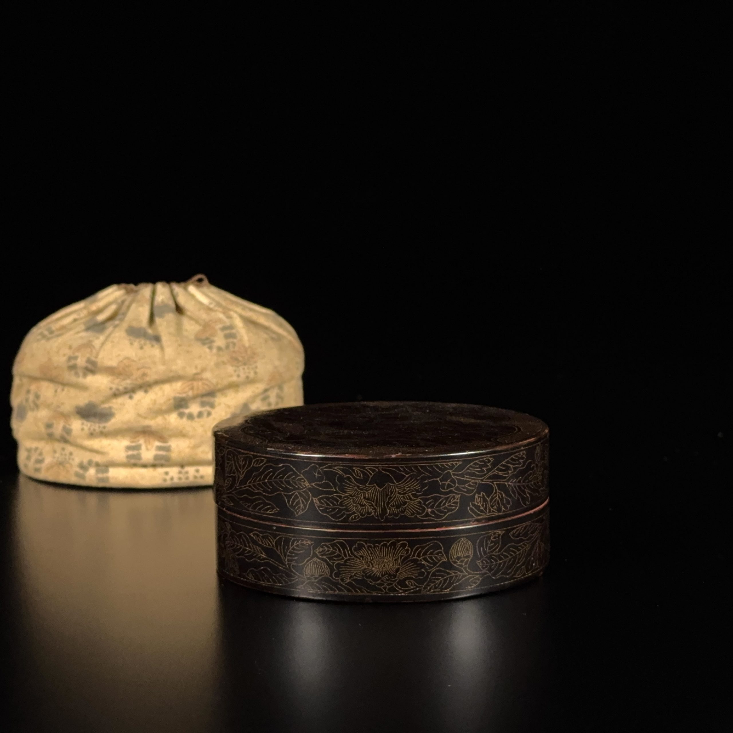 明末 黒漆描金 鳳凰紋 圓盒
