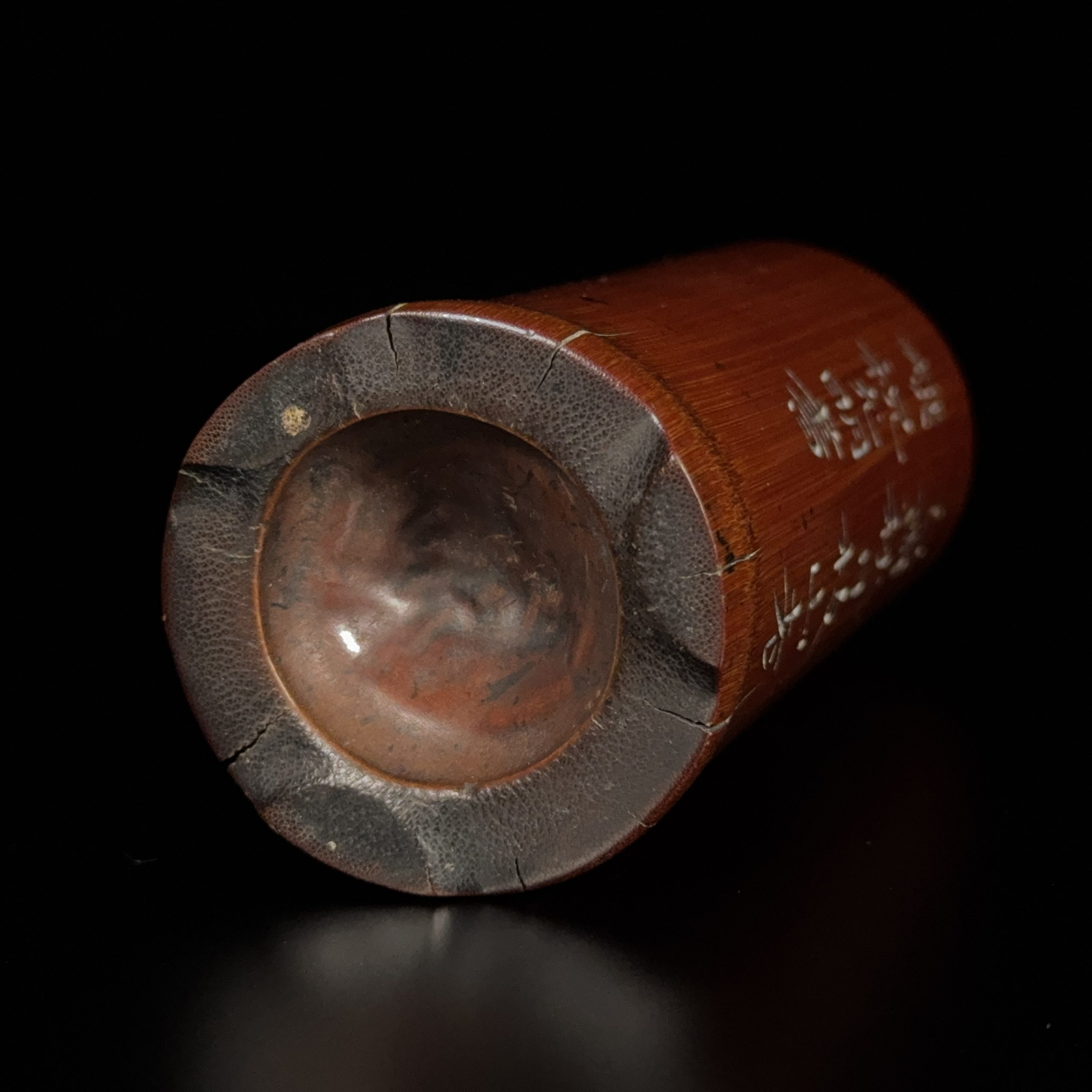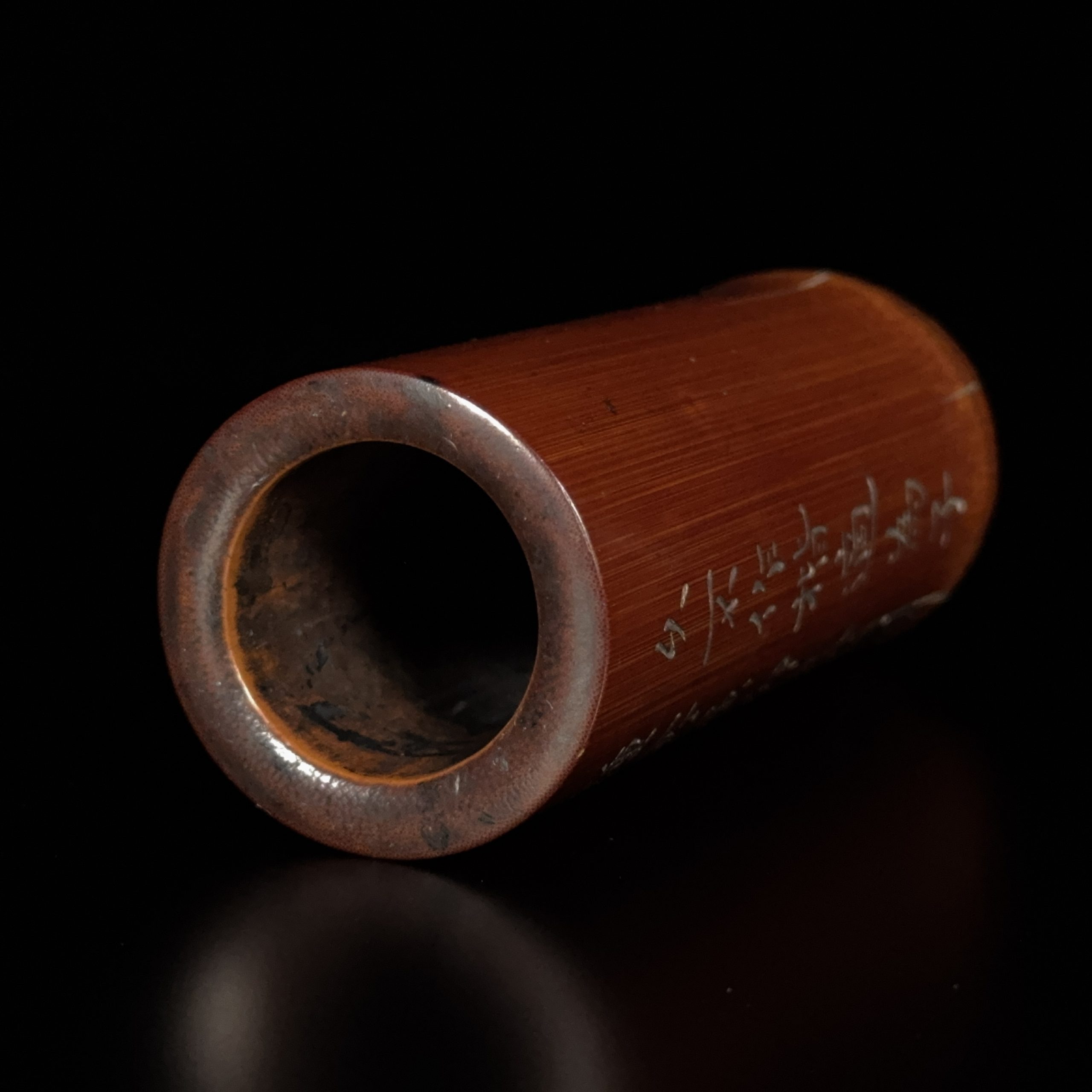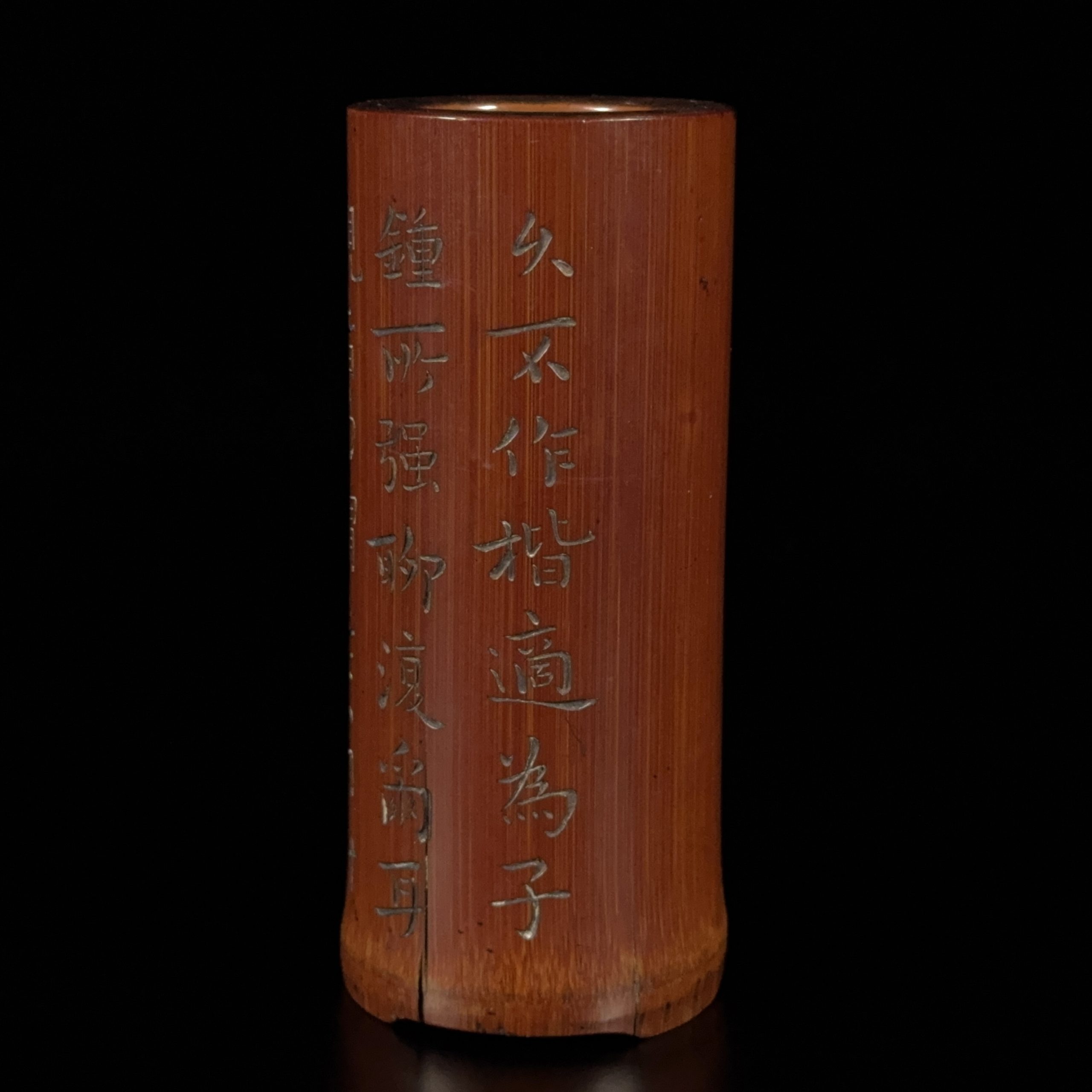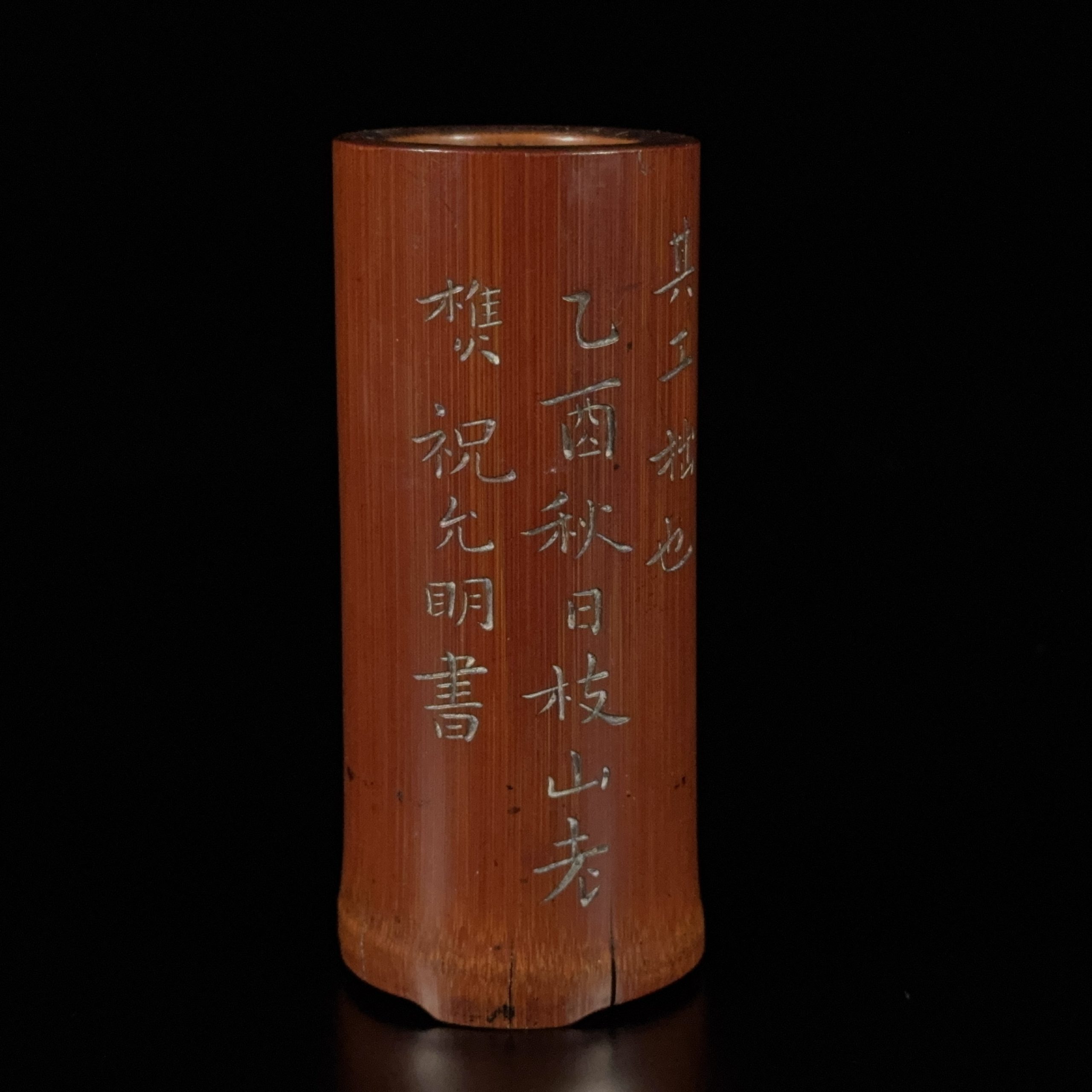 明「祝允明」款 竹雕 詩文紋 筆筒