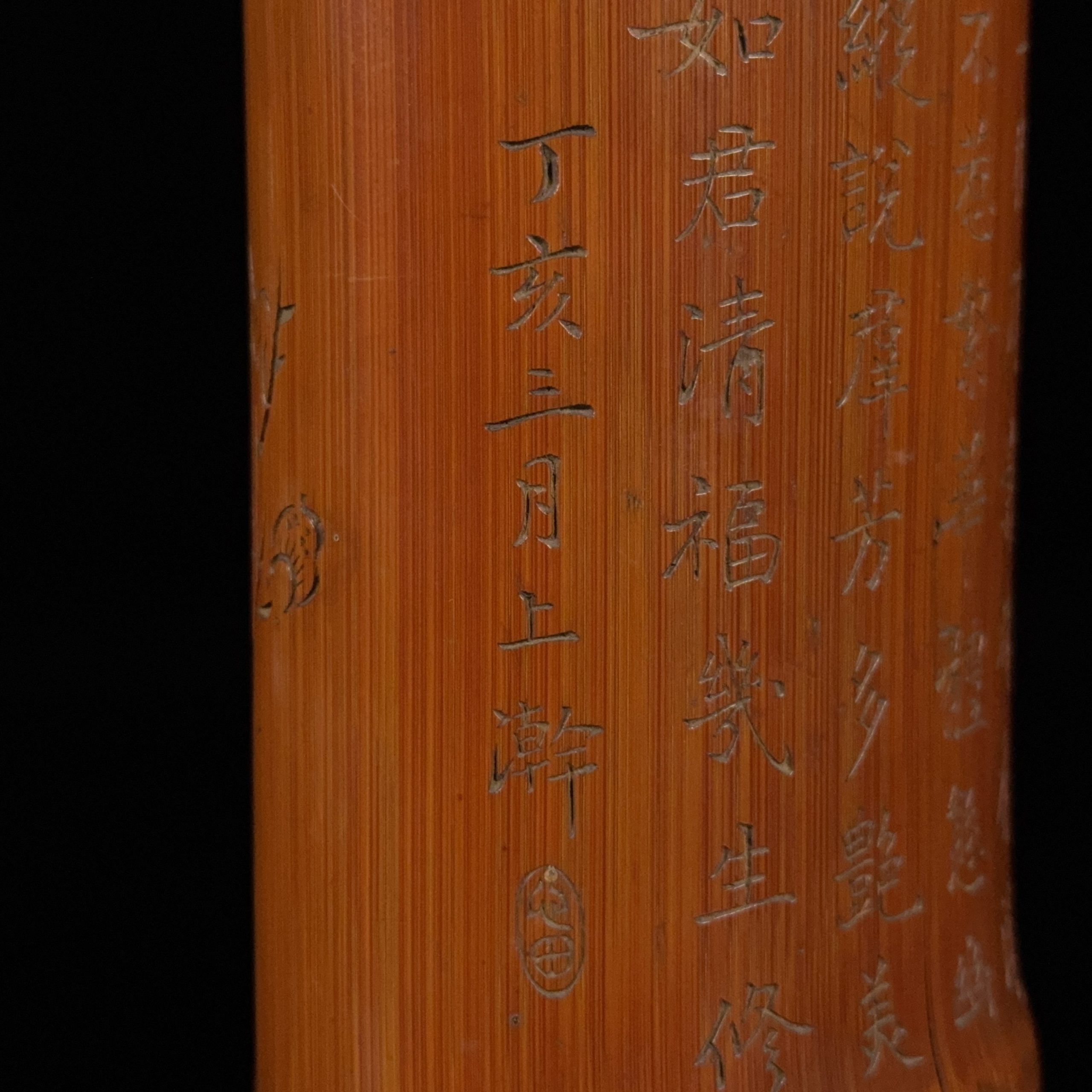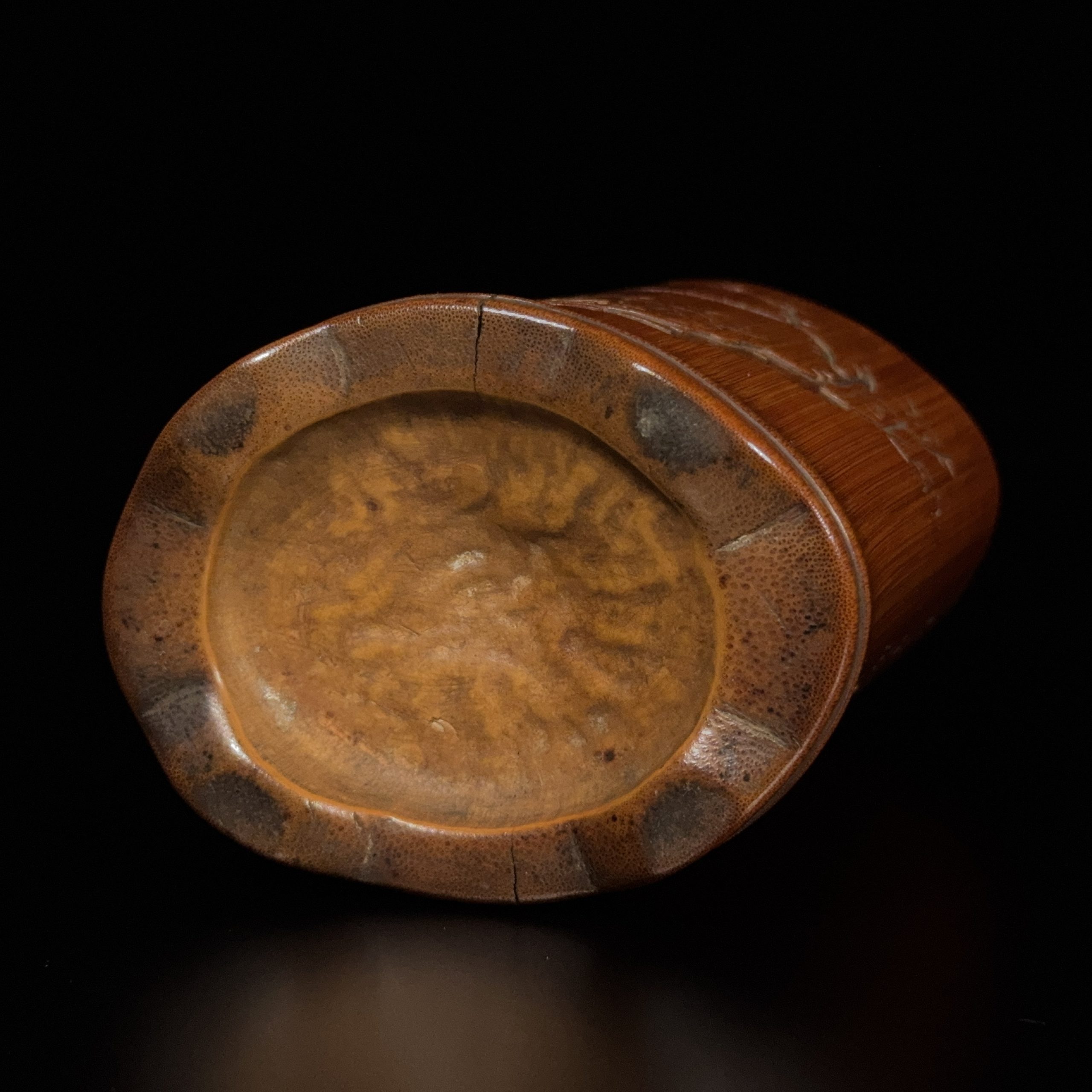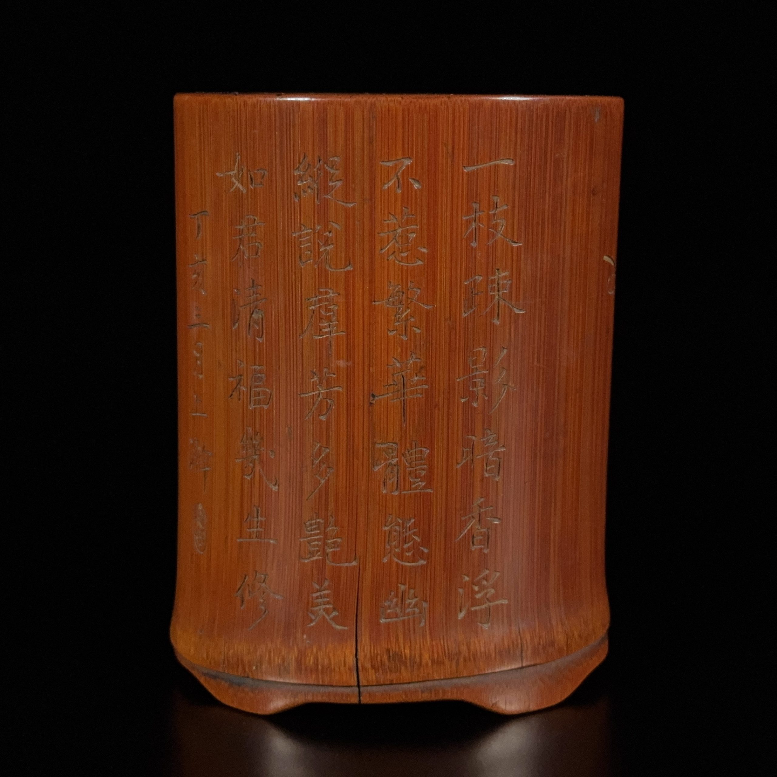 清 在銘 竹雕 梅花詩文紋 筆筒