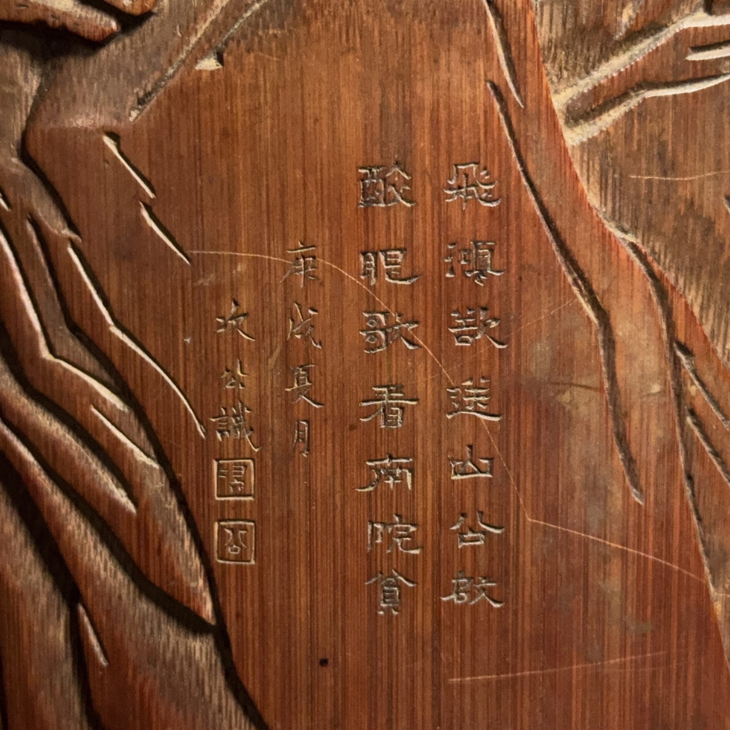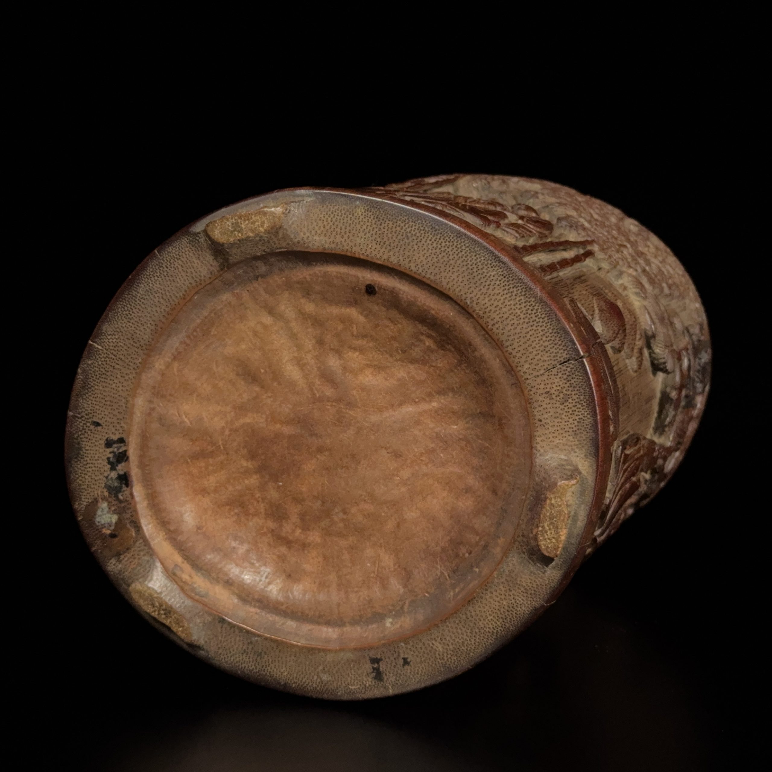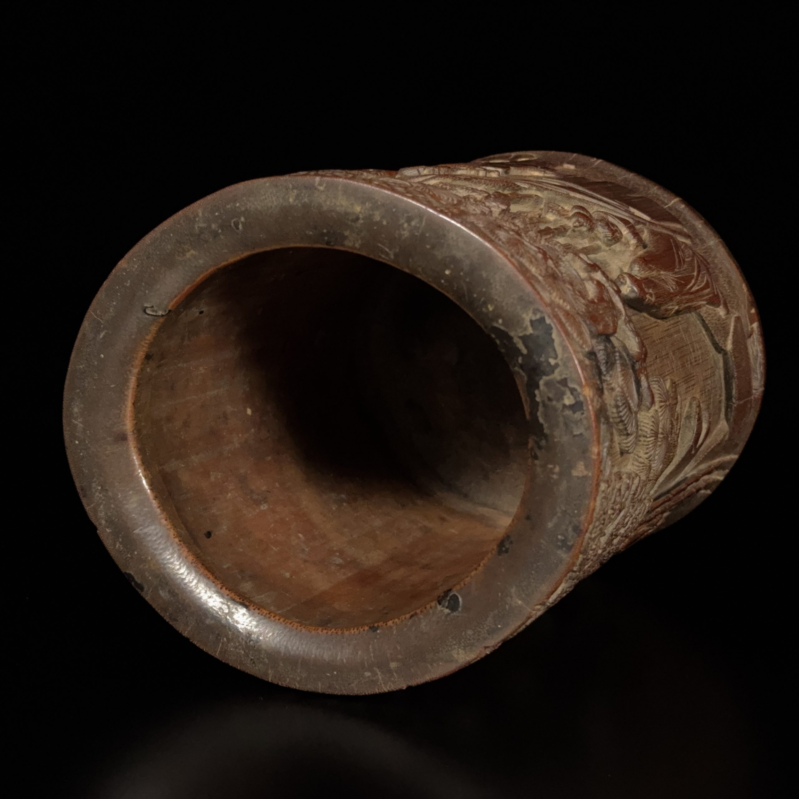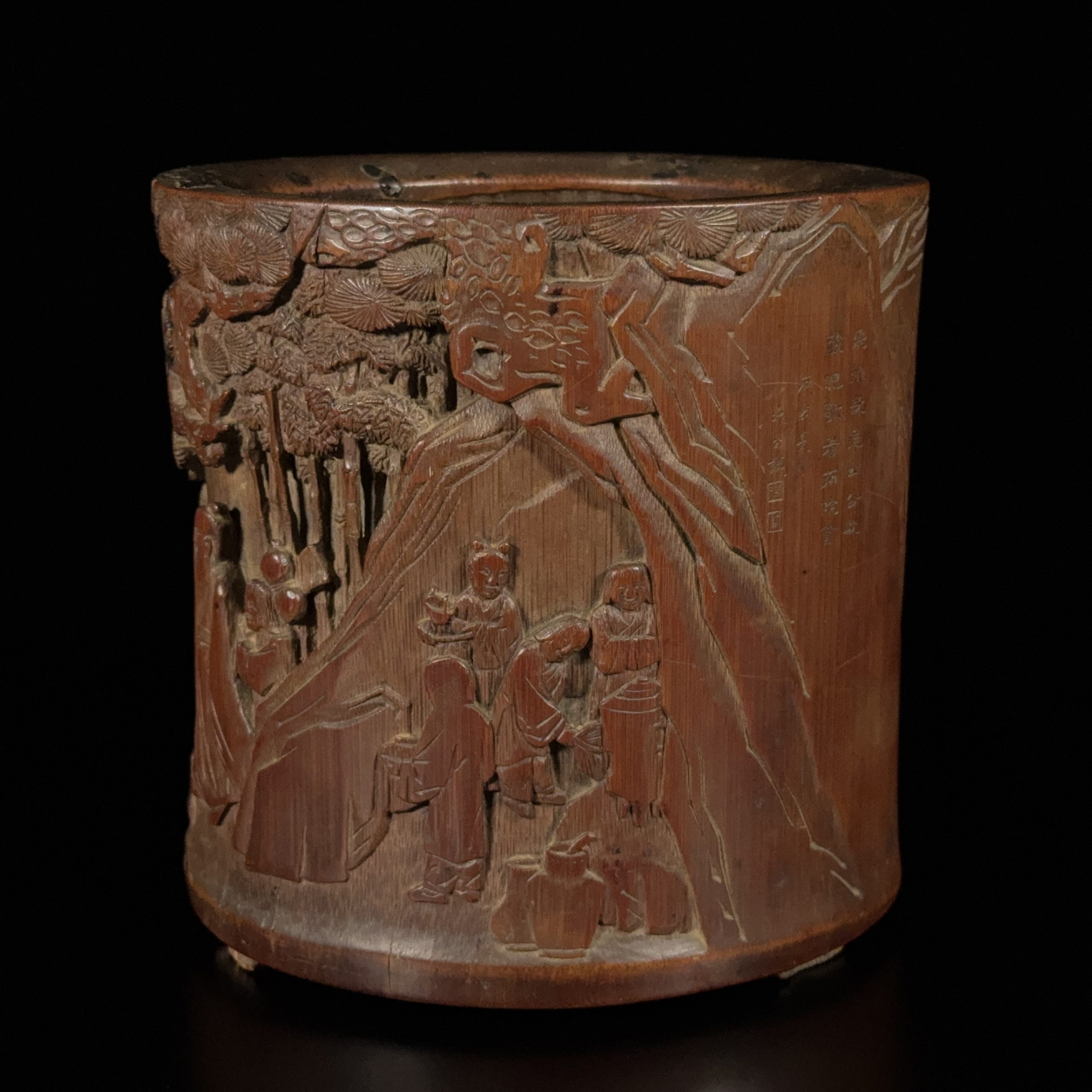 在銘 竹雕 竹林人物紋 筆筒
