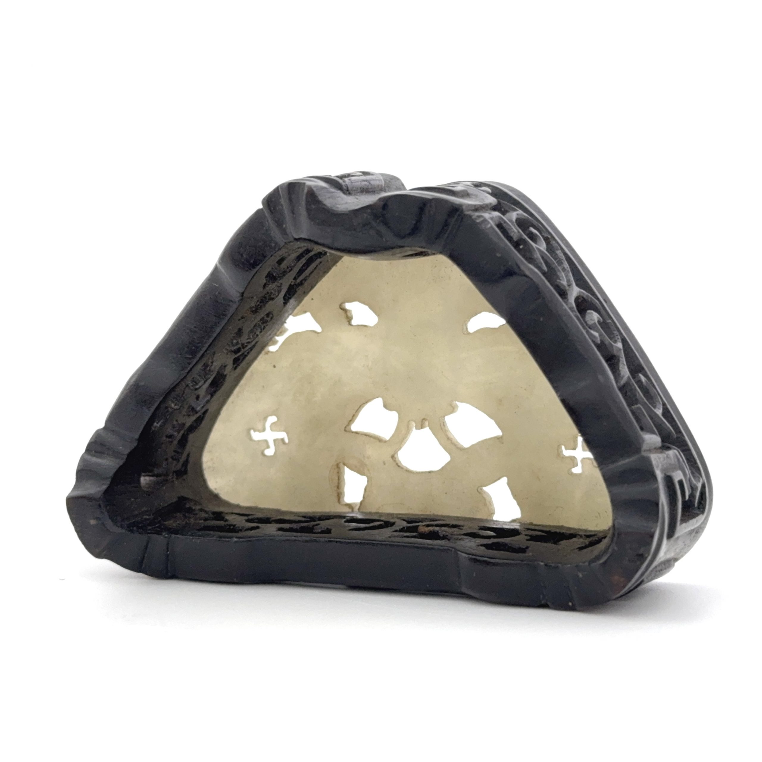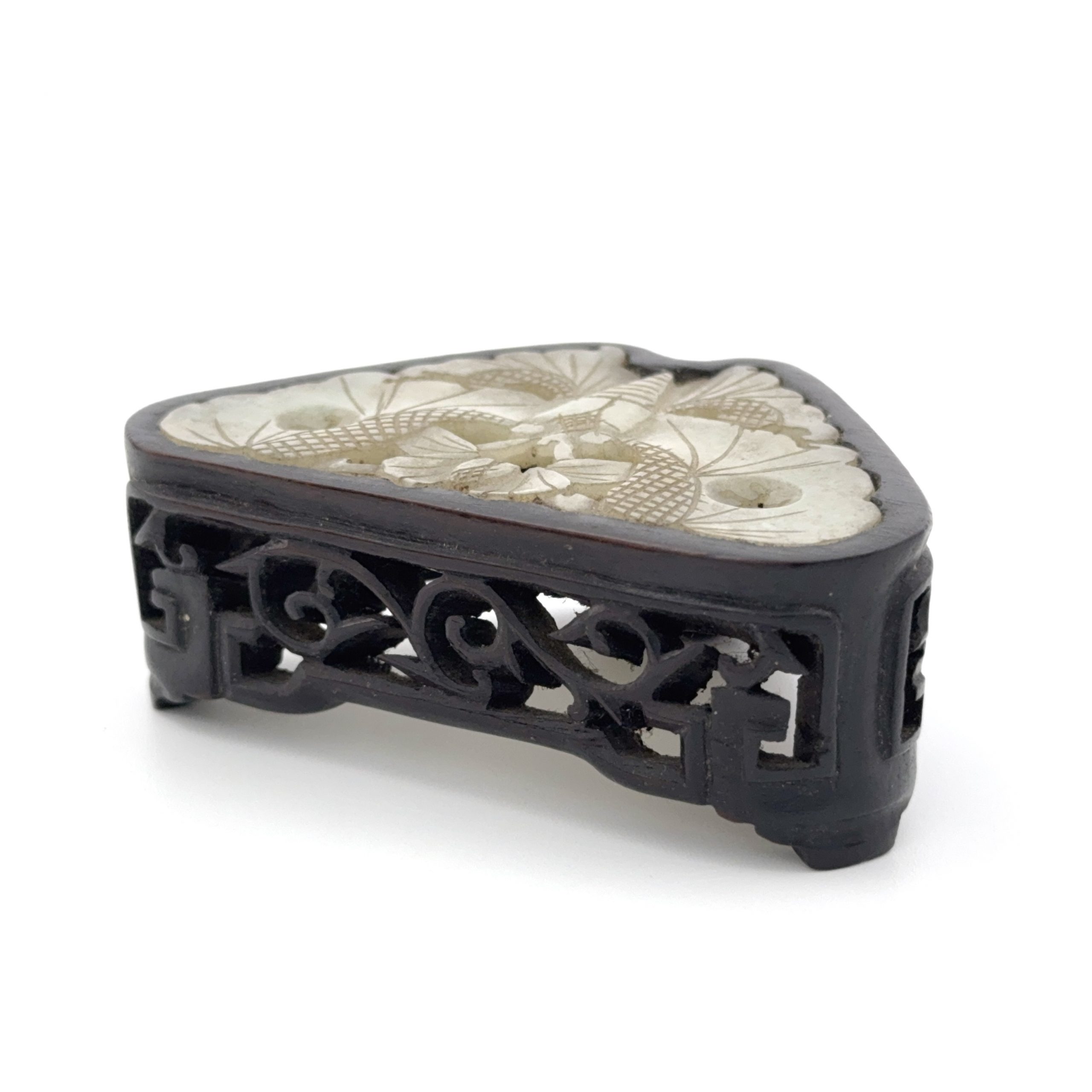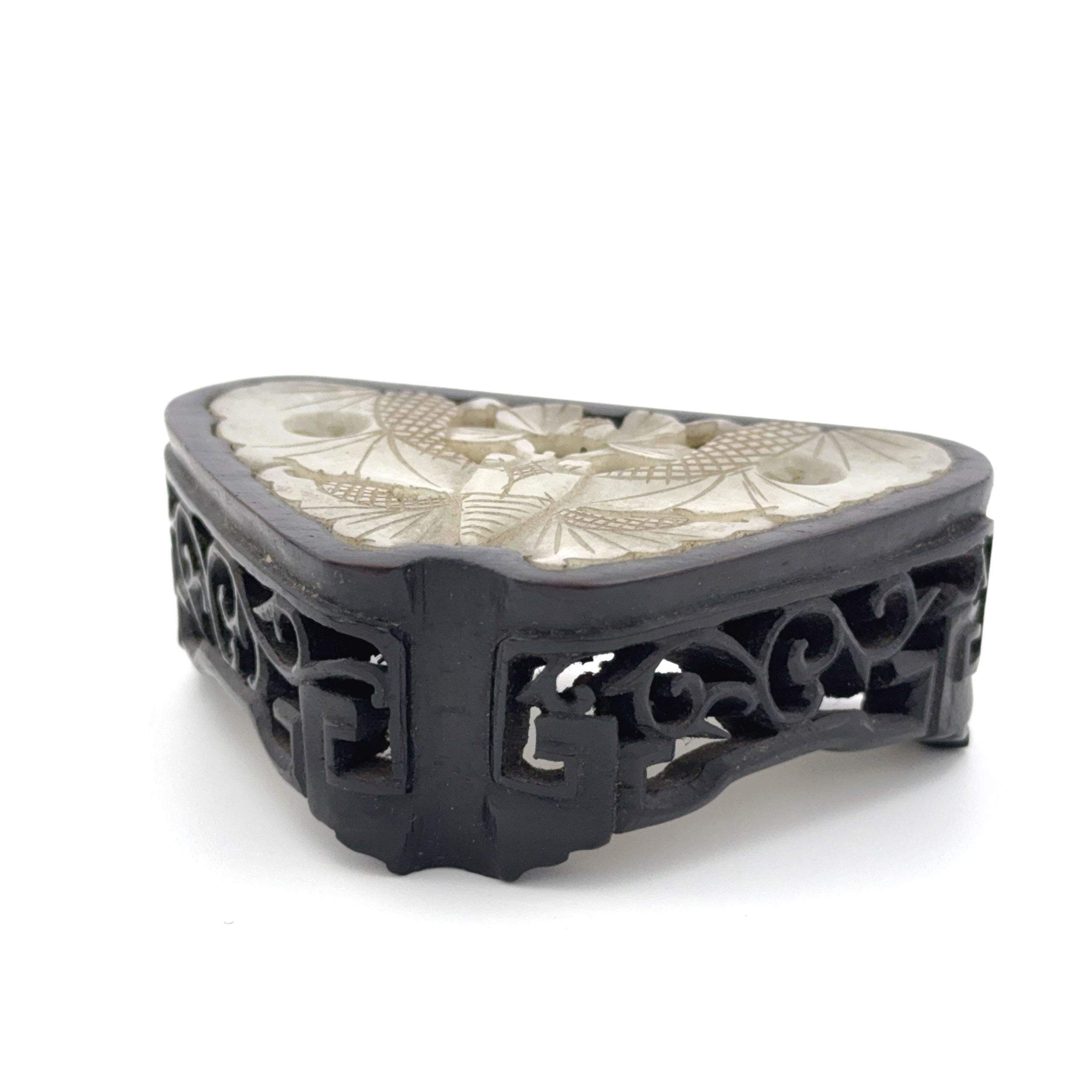 木雕嵌白玉 蝶紋 台