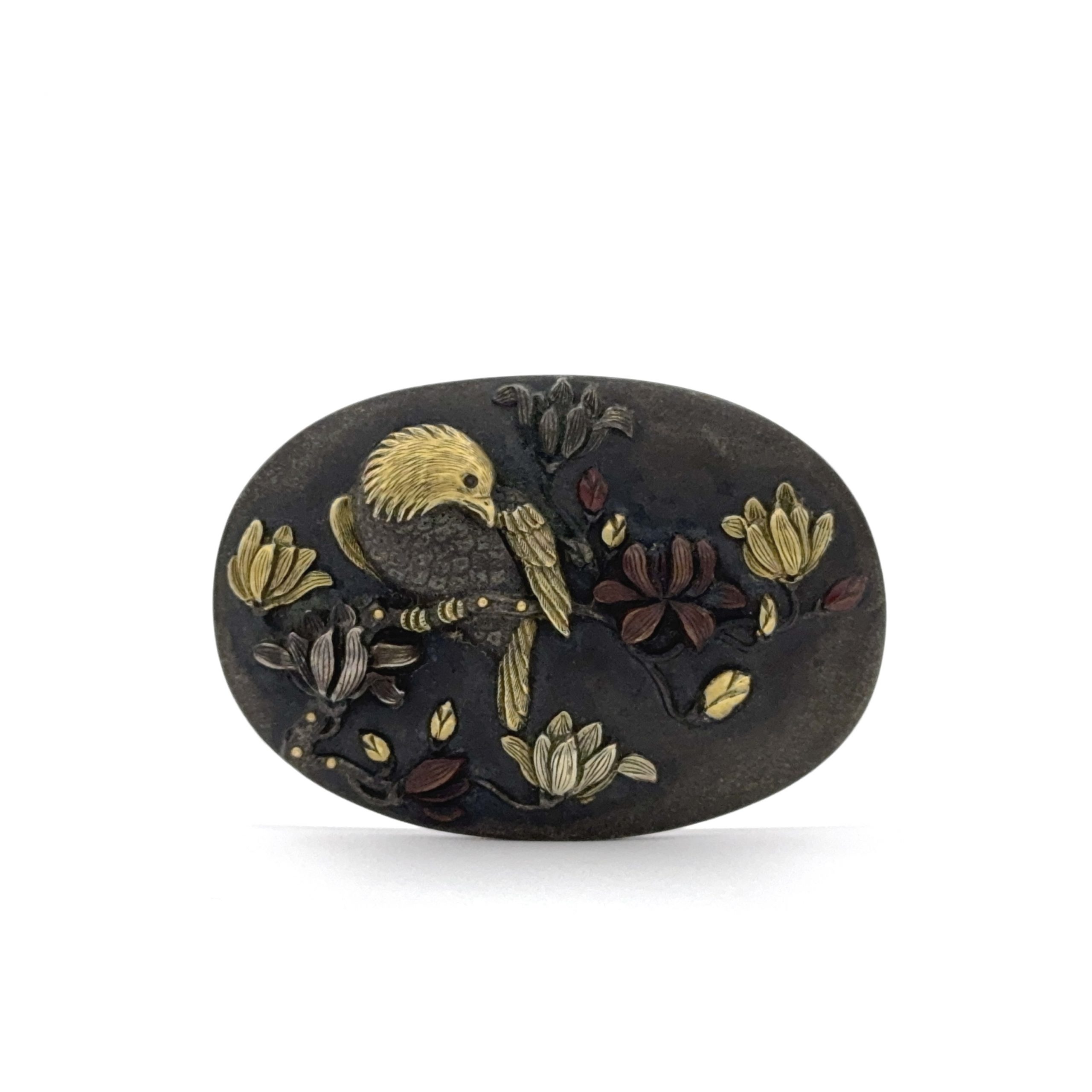銅錯銀紅銅 花鳥紋 金具 計4件
