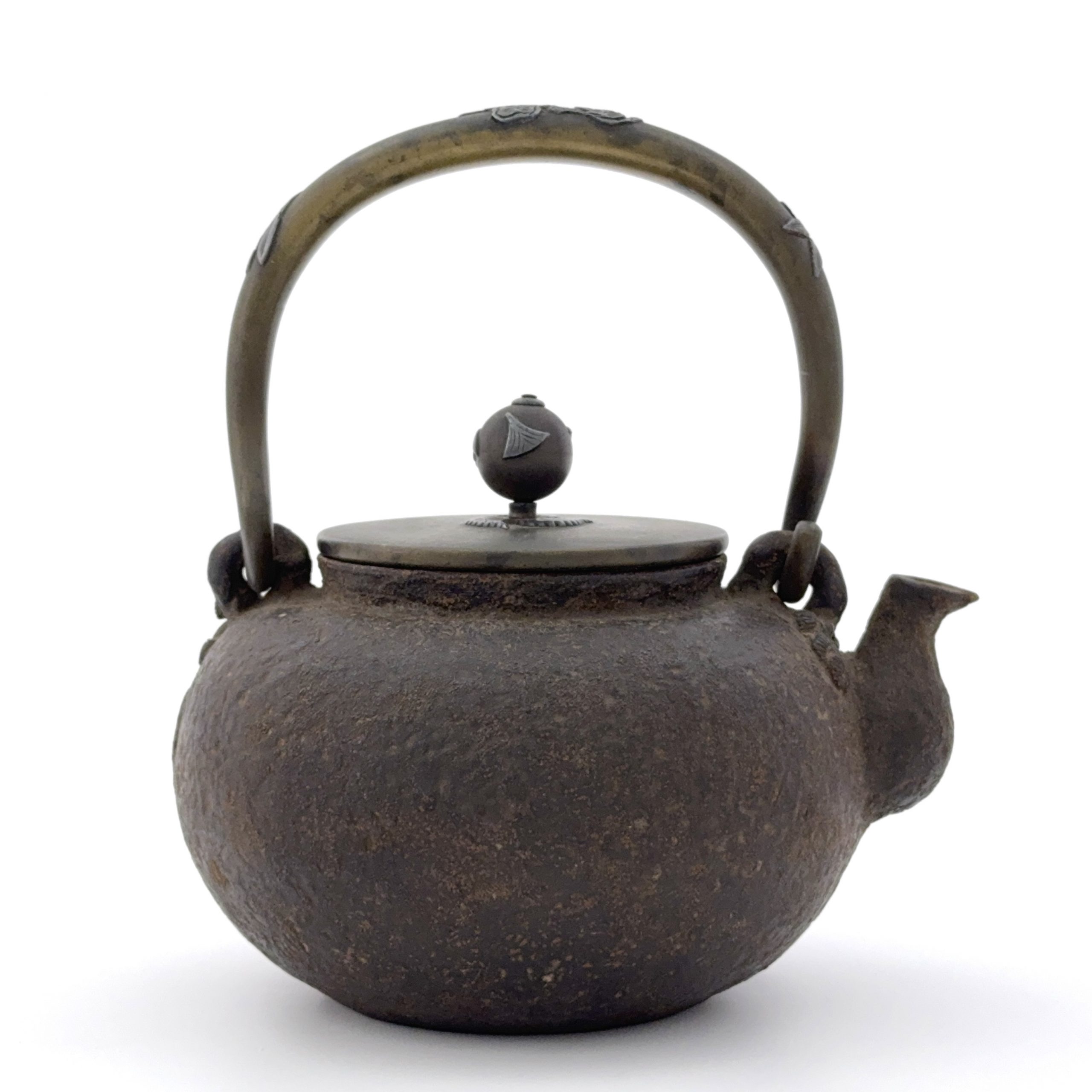 「日本亀文」造 鉄錯銀 山水紋 湯沸