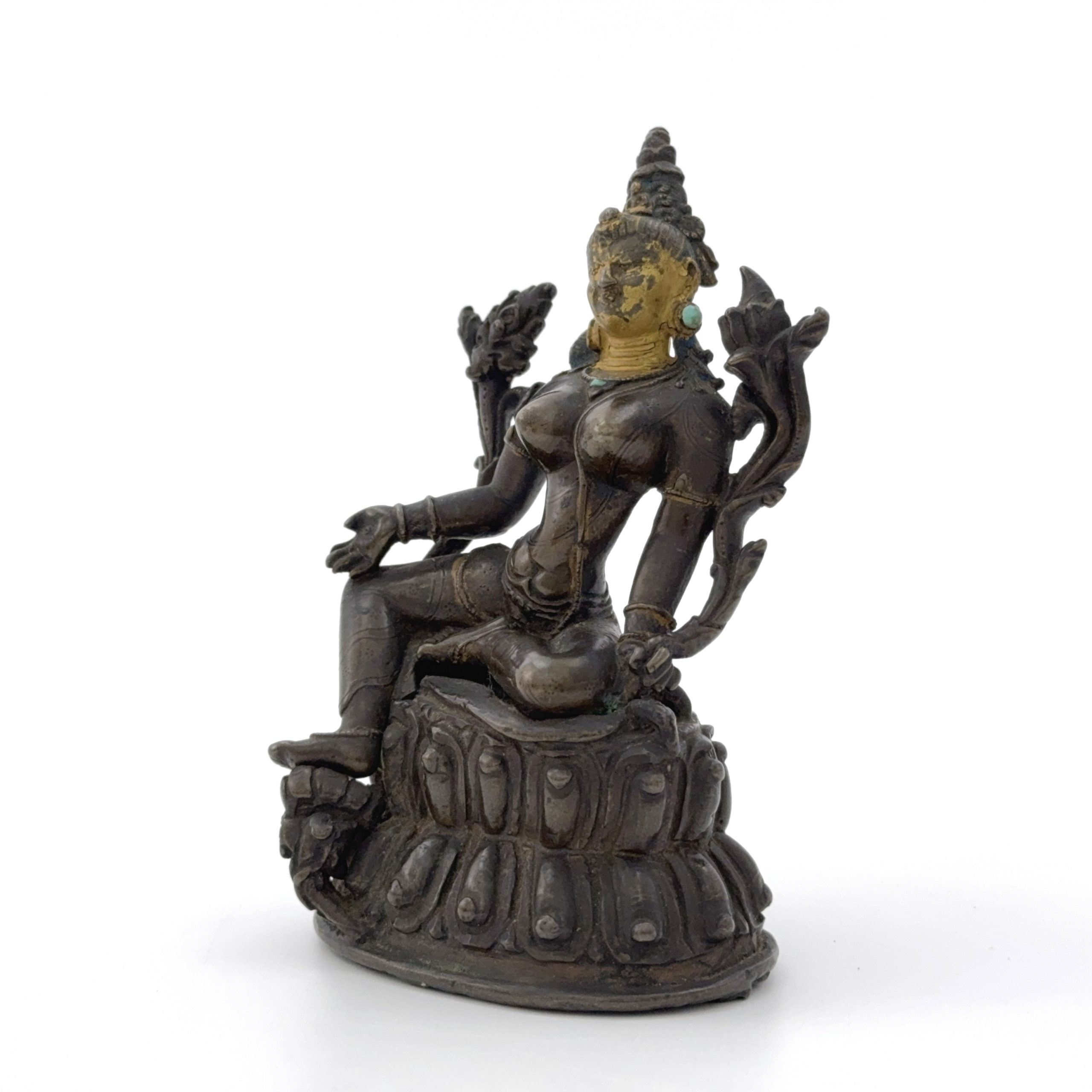十五/十六世紀 銅 局部鎏金嵌百寶 度母坐像