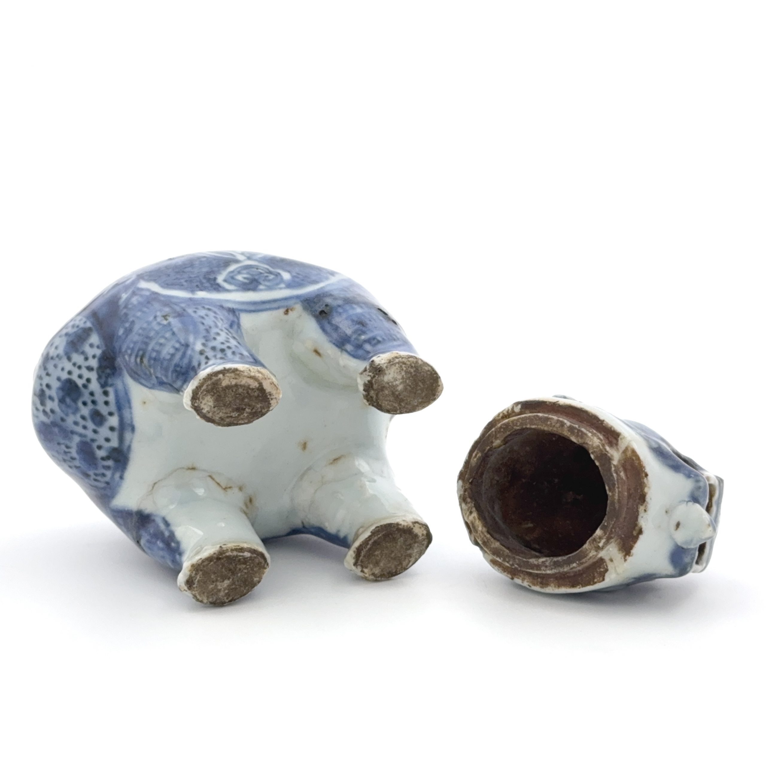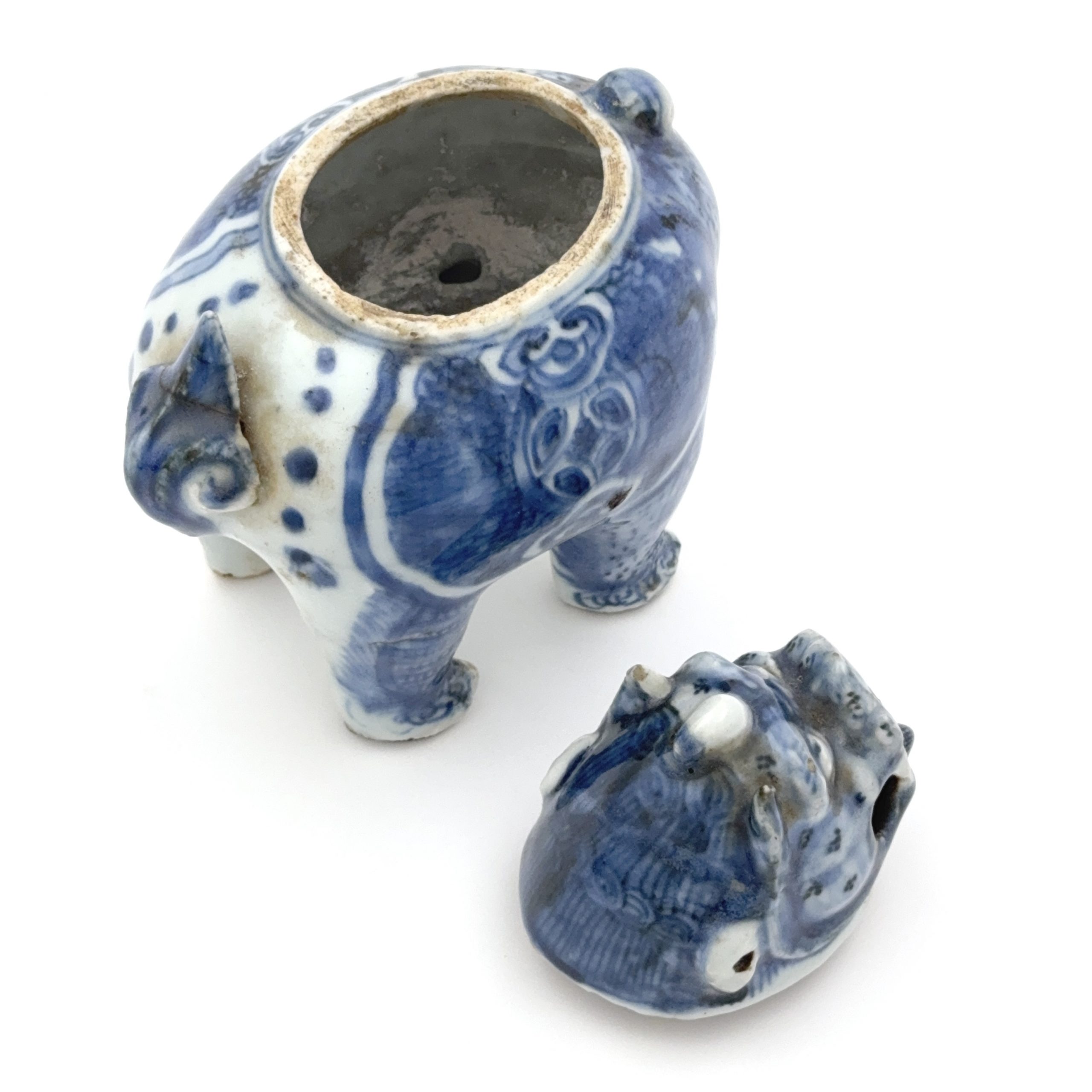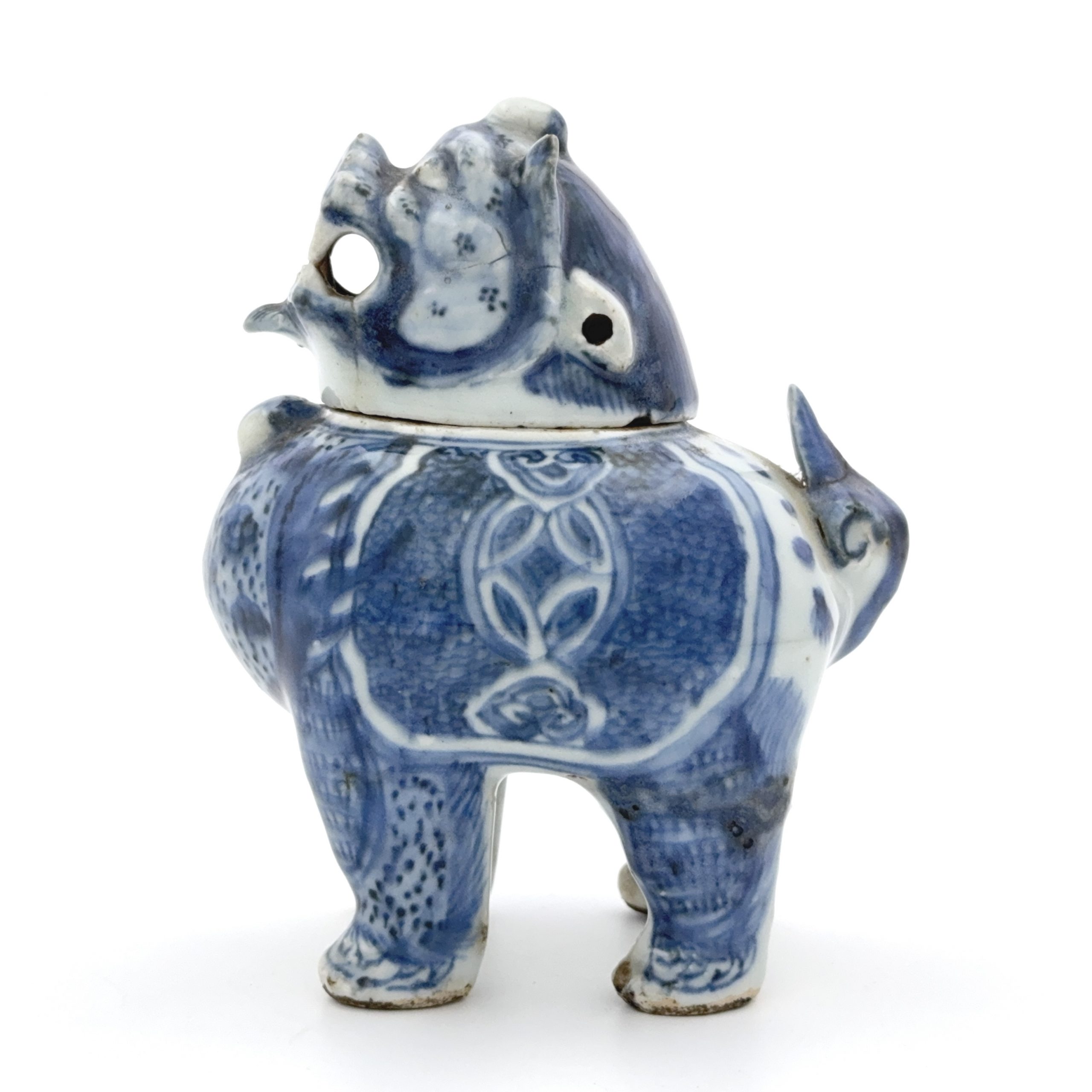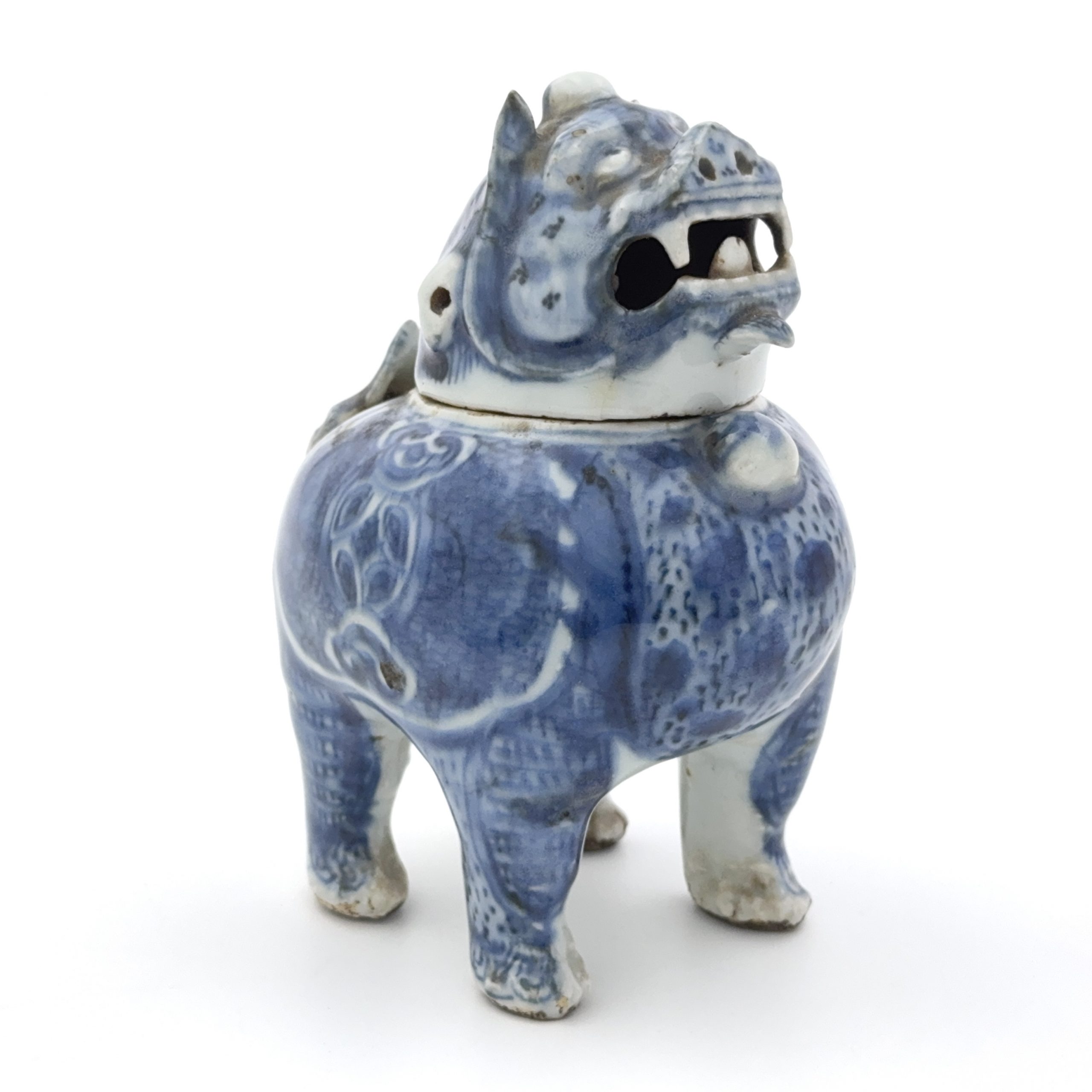 明末 青花 獅子形爐
