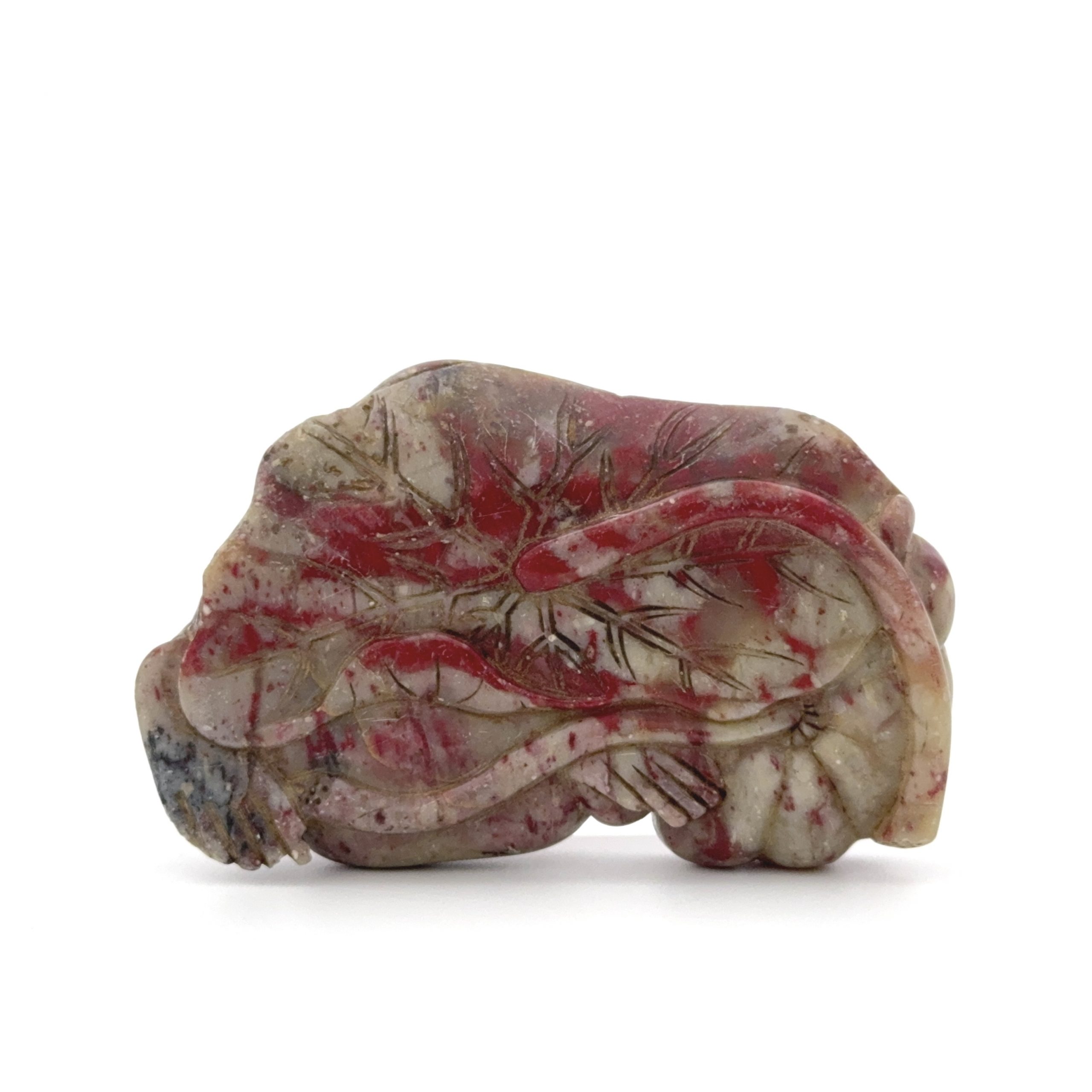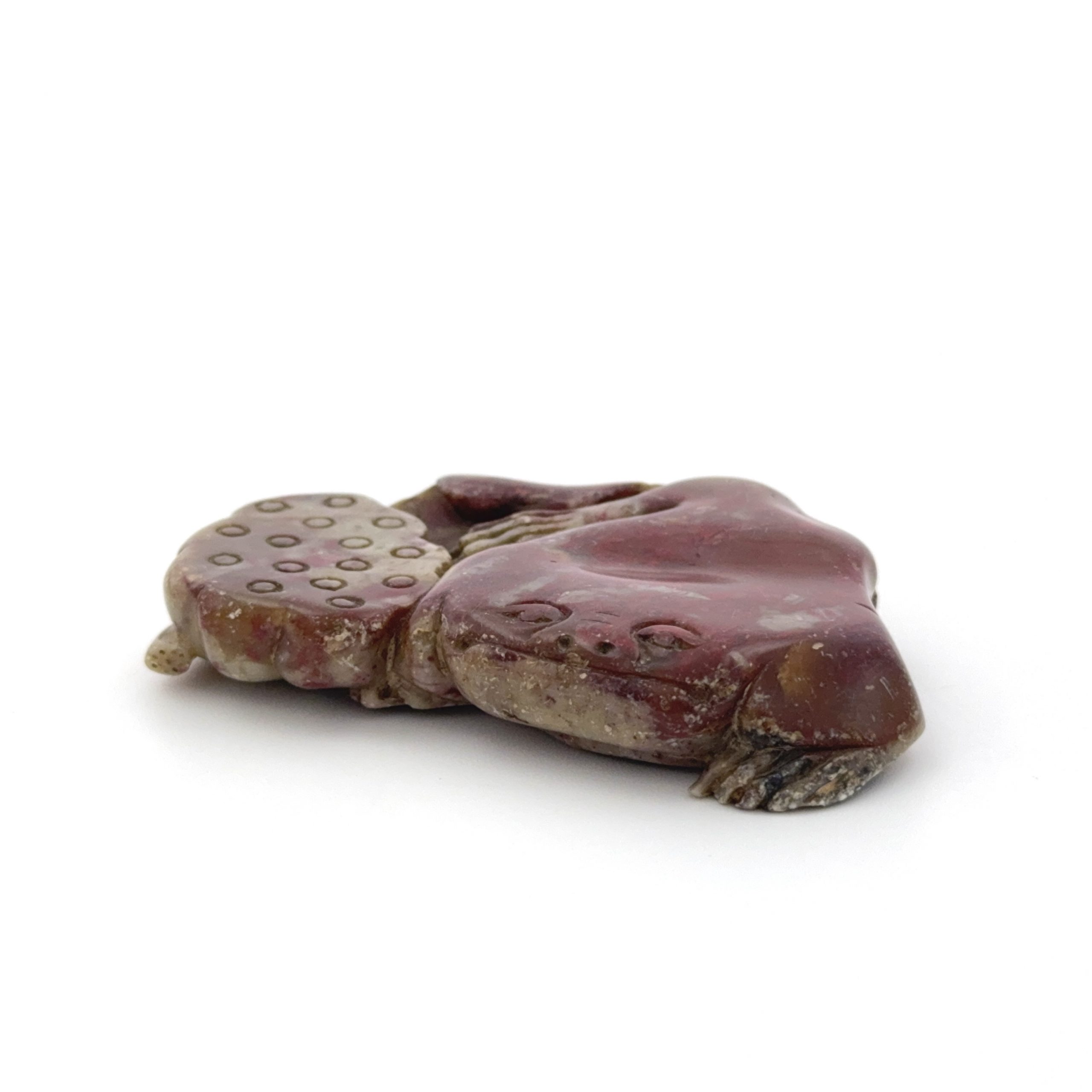 清 寿山鶏血石雕 荷葉蛙形 墨床
