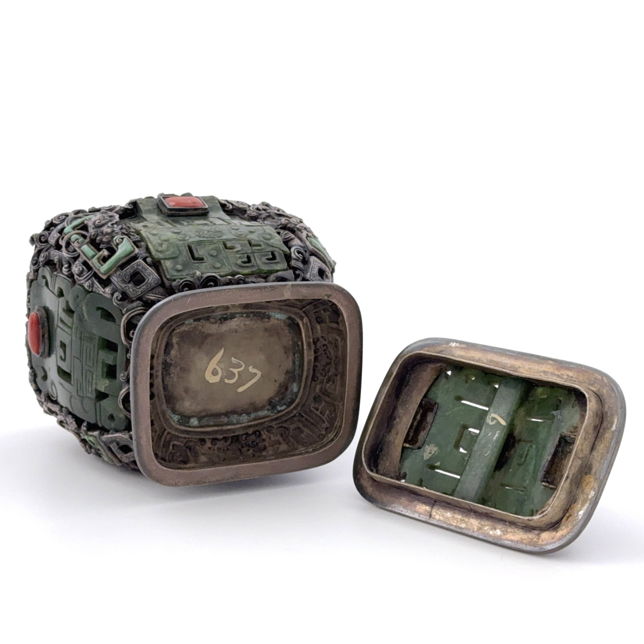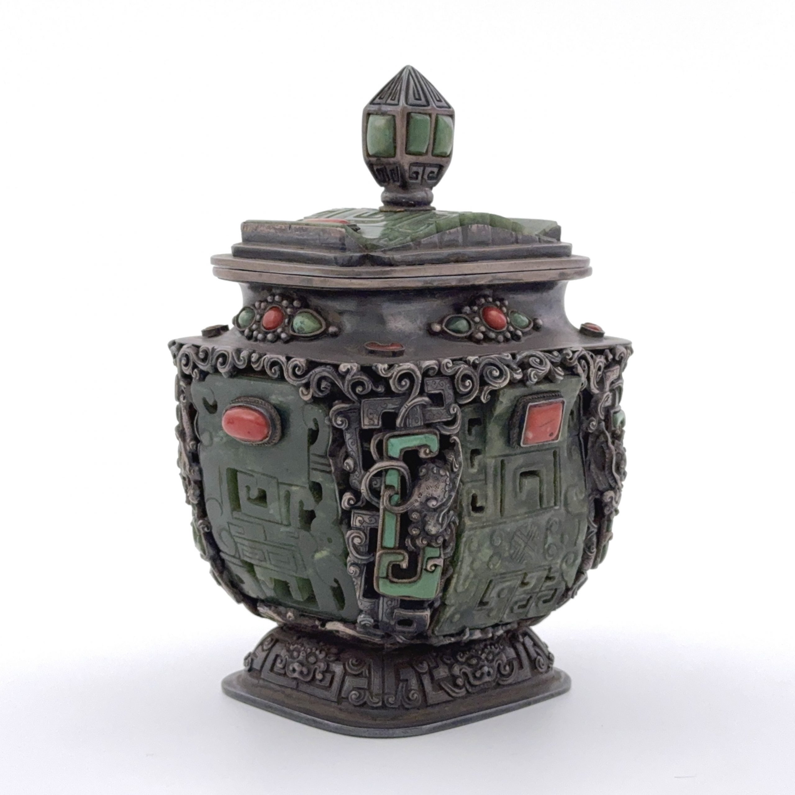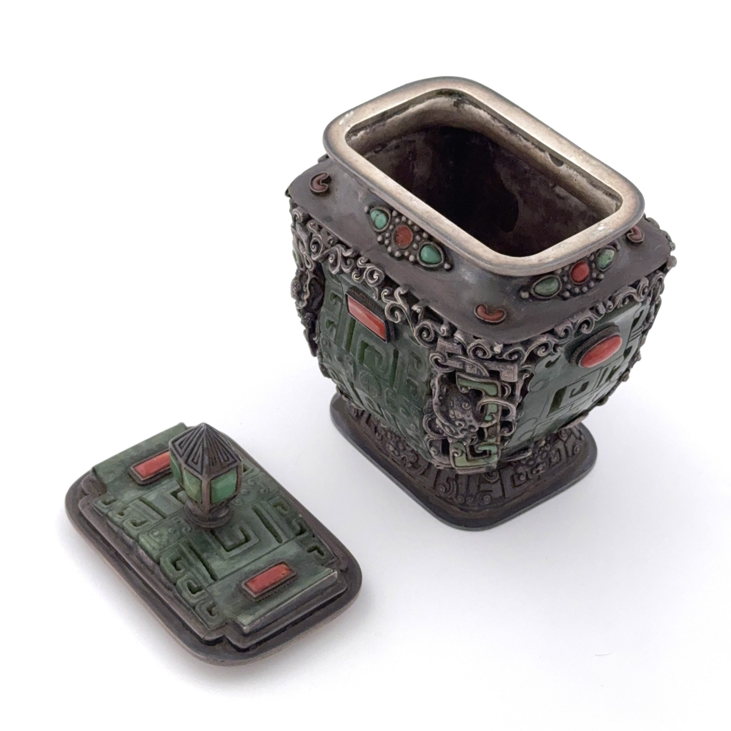 十九世紀 銀嵌百寶 龍紋 蓋盒
