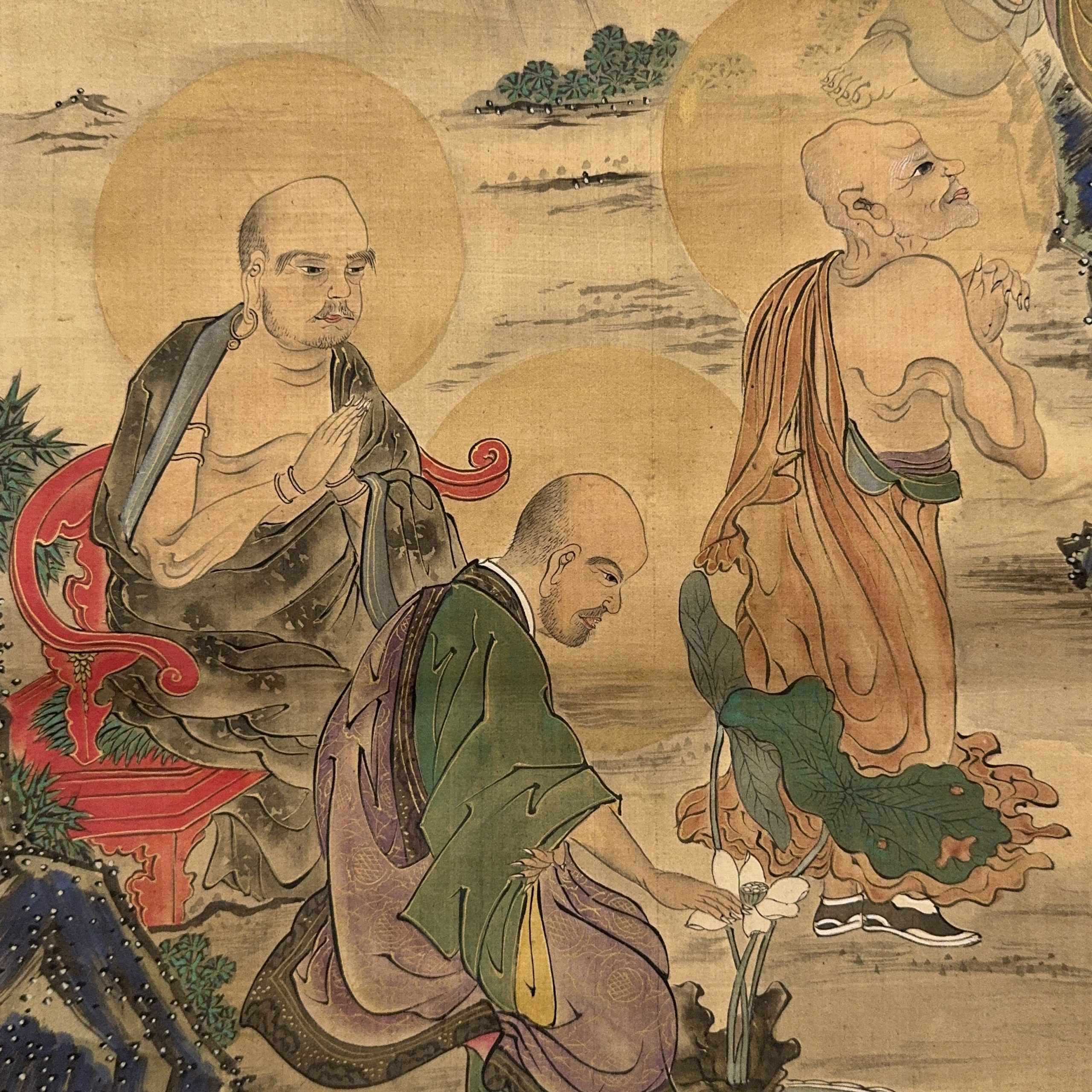 古画 十六羅漢図 軸 一対