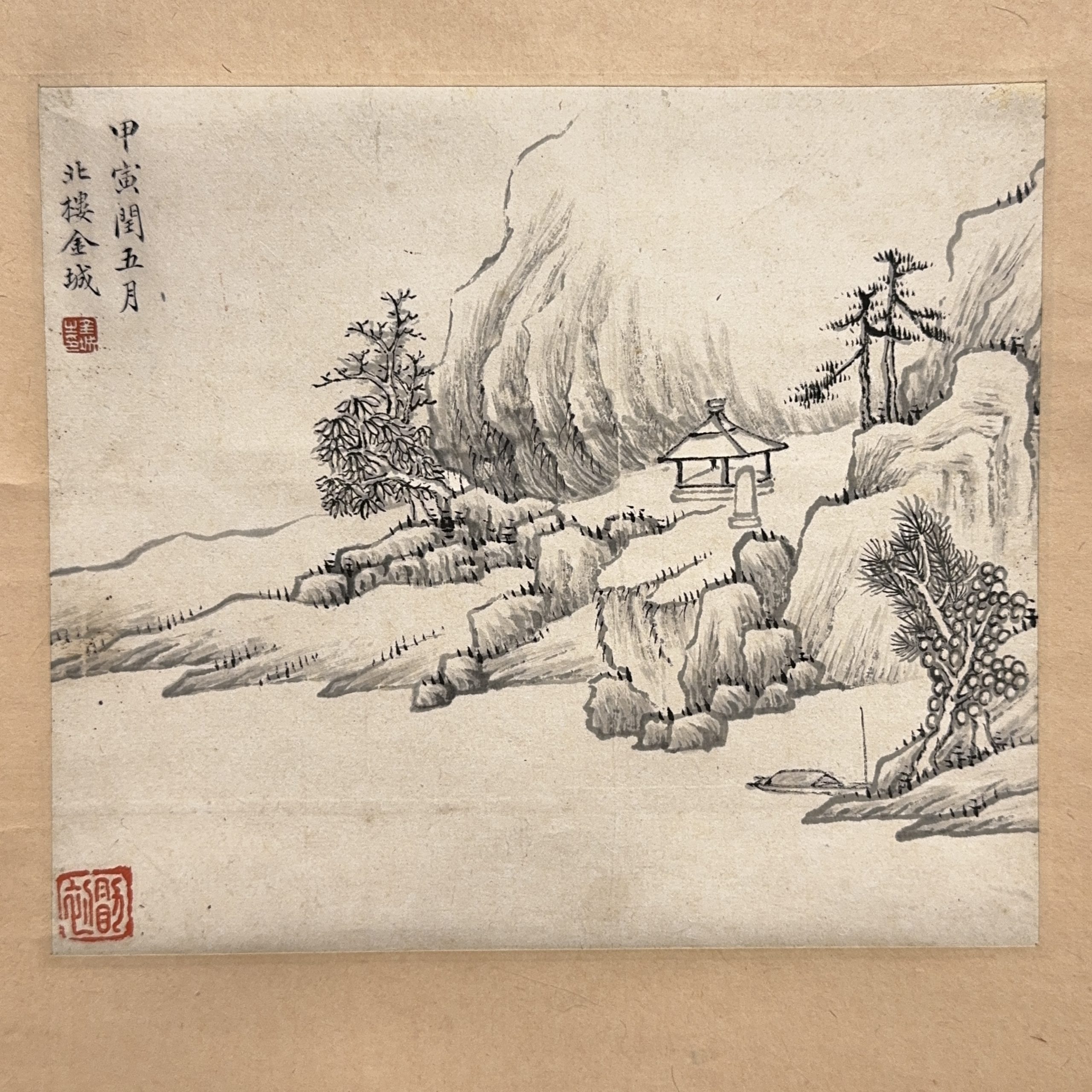 「金城」画 山水図 交貼 軸