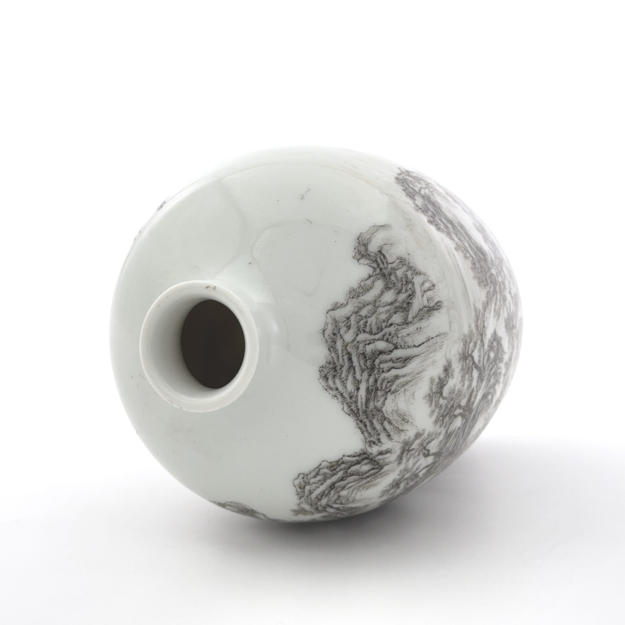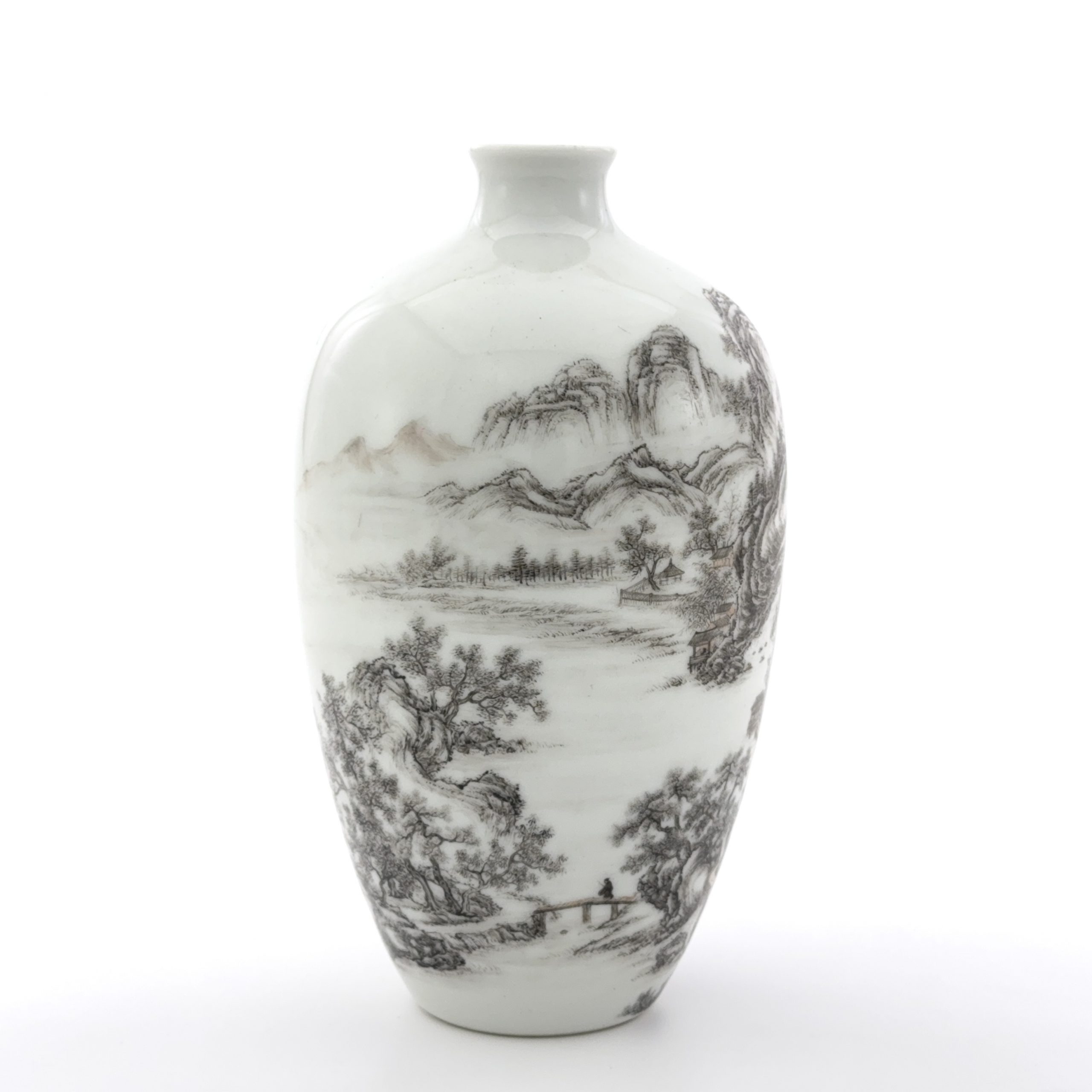 清「乾隆年製」款 白磁墨彩 山水詩文紋 瓶