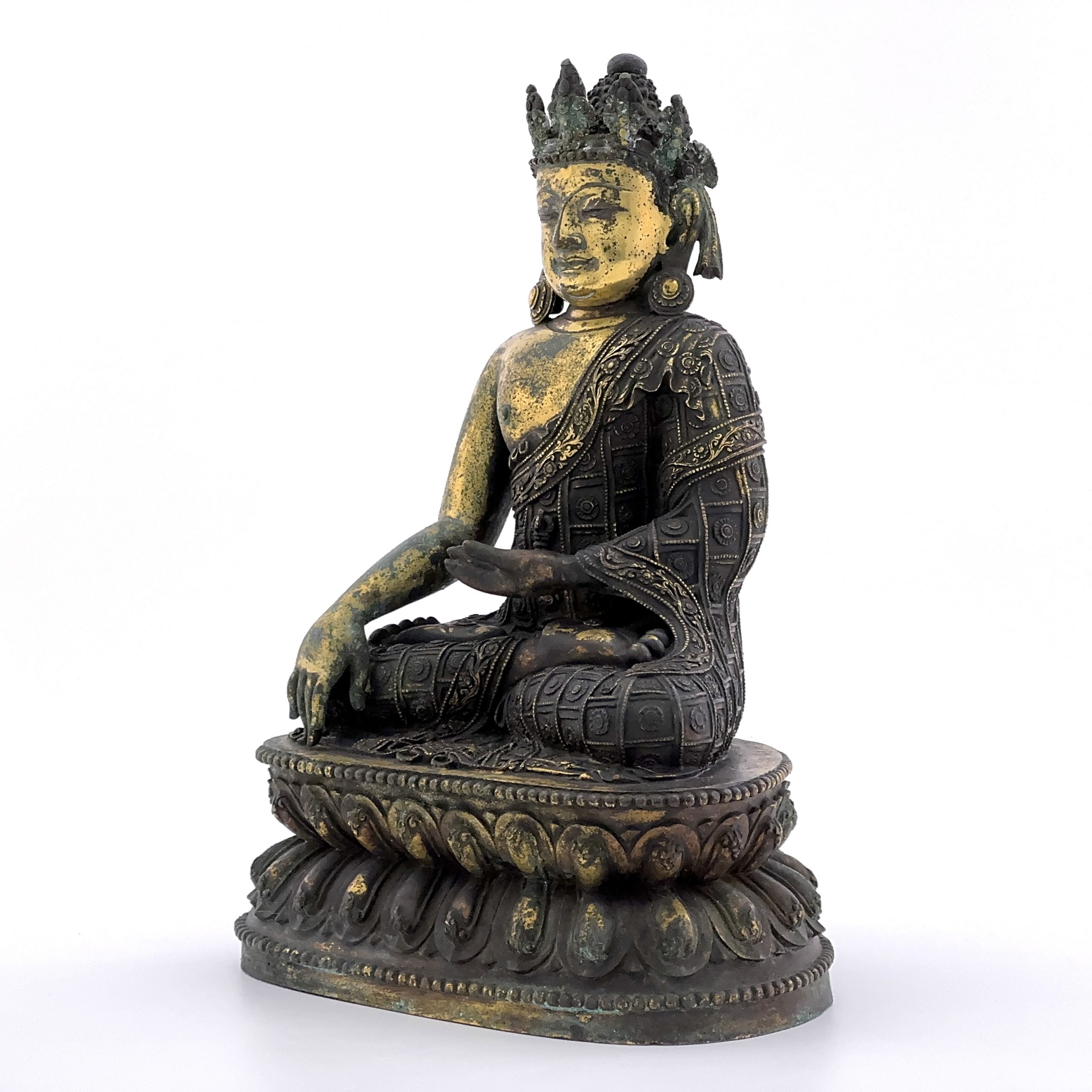 明「大明宣徳年施」款 銅鎏金 寶冠釈迦牟尼坐像 5700g