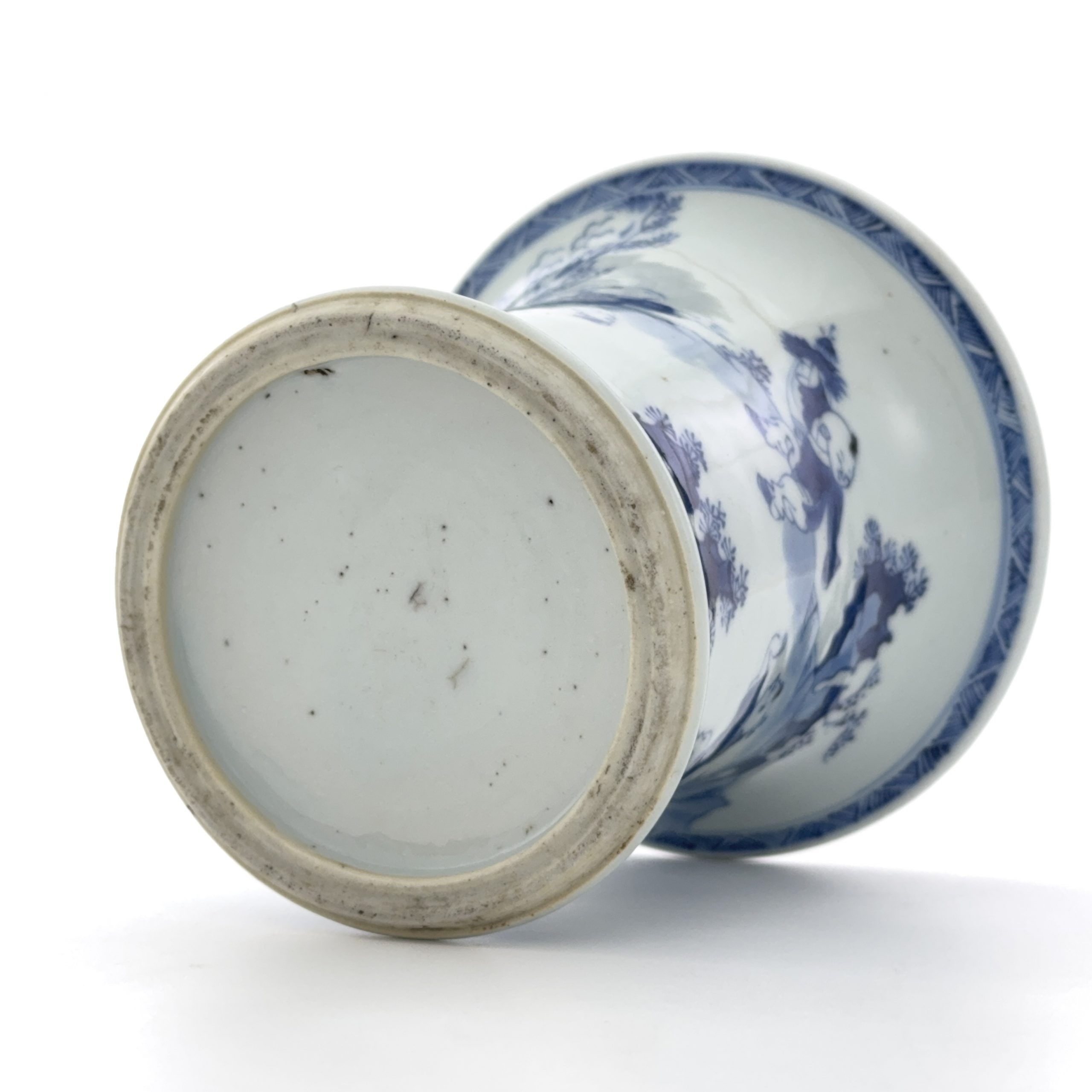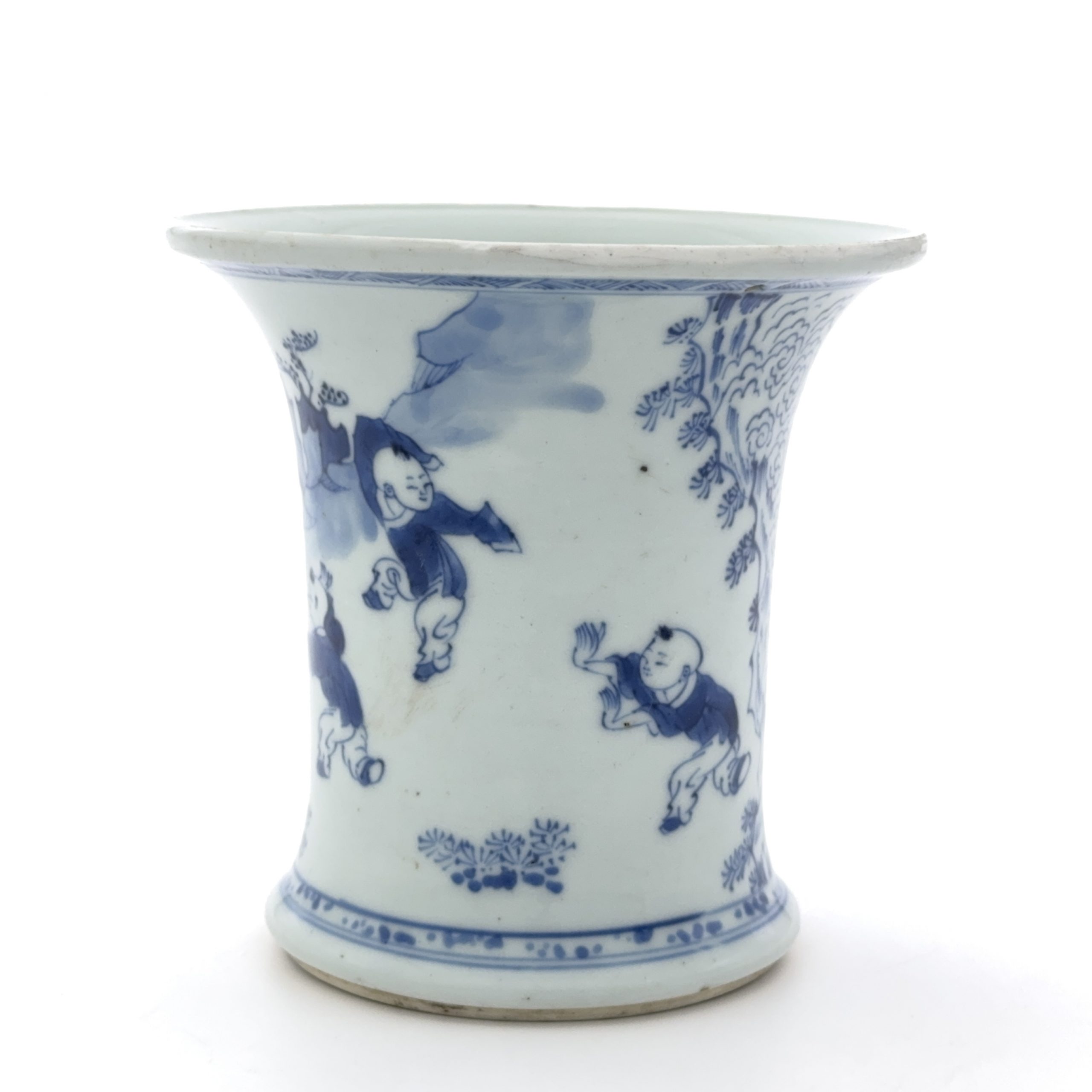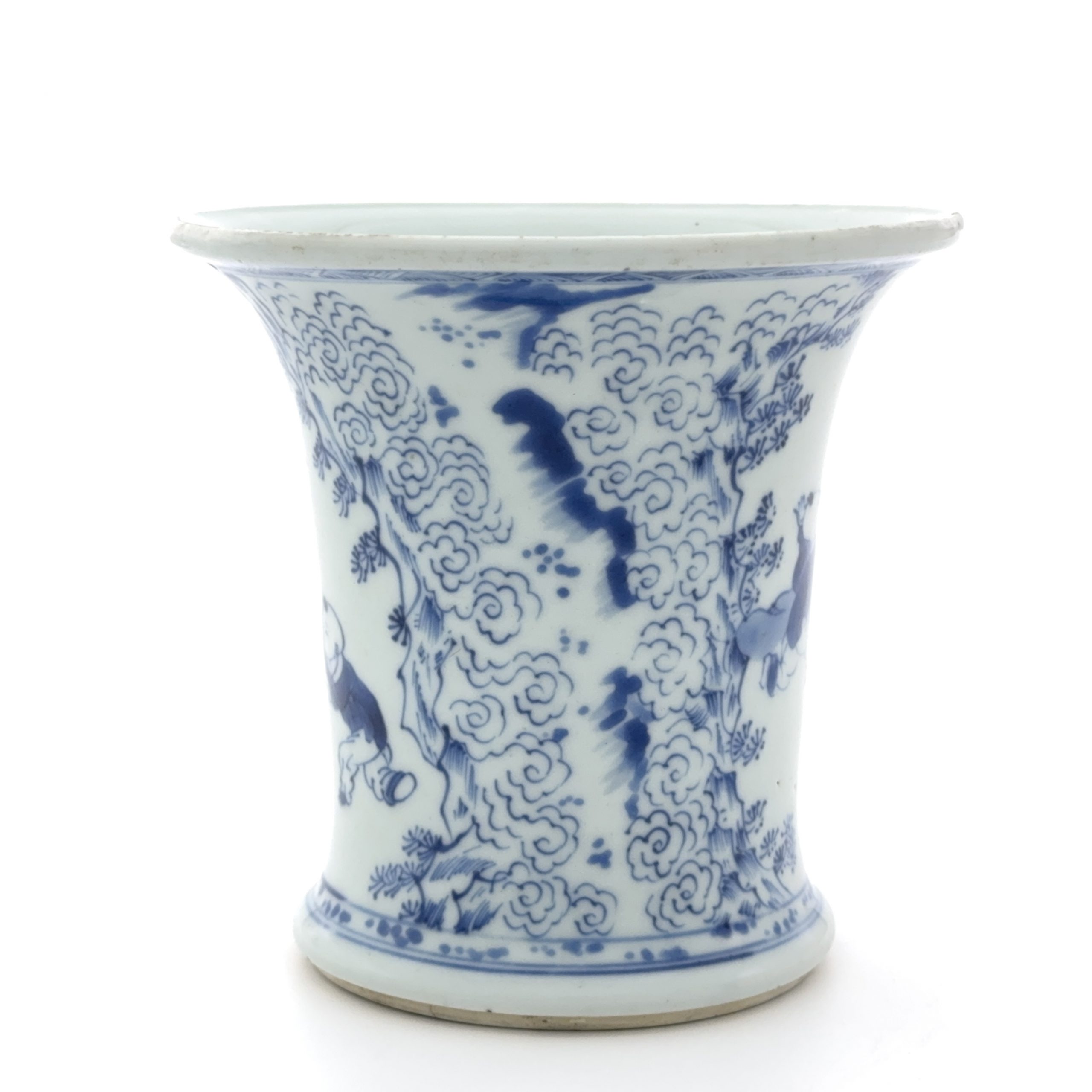 清早期 青花 山水童子図 筆筒