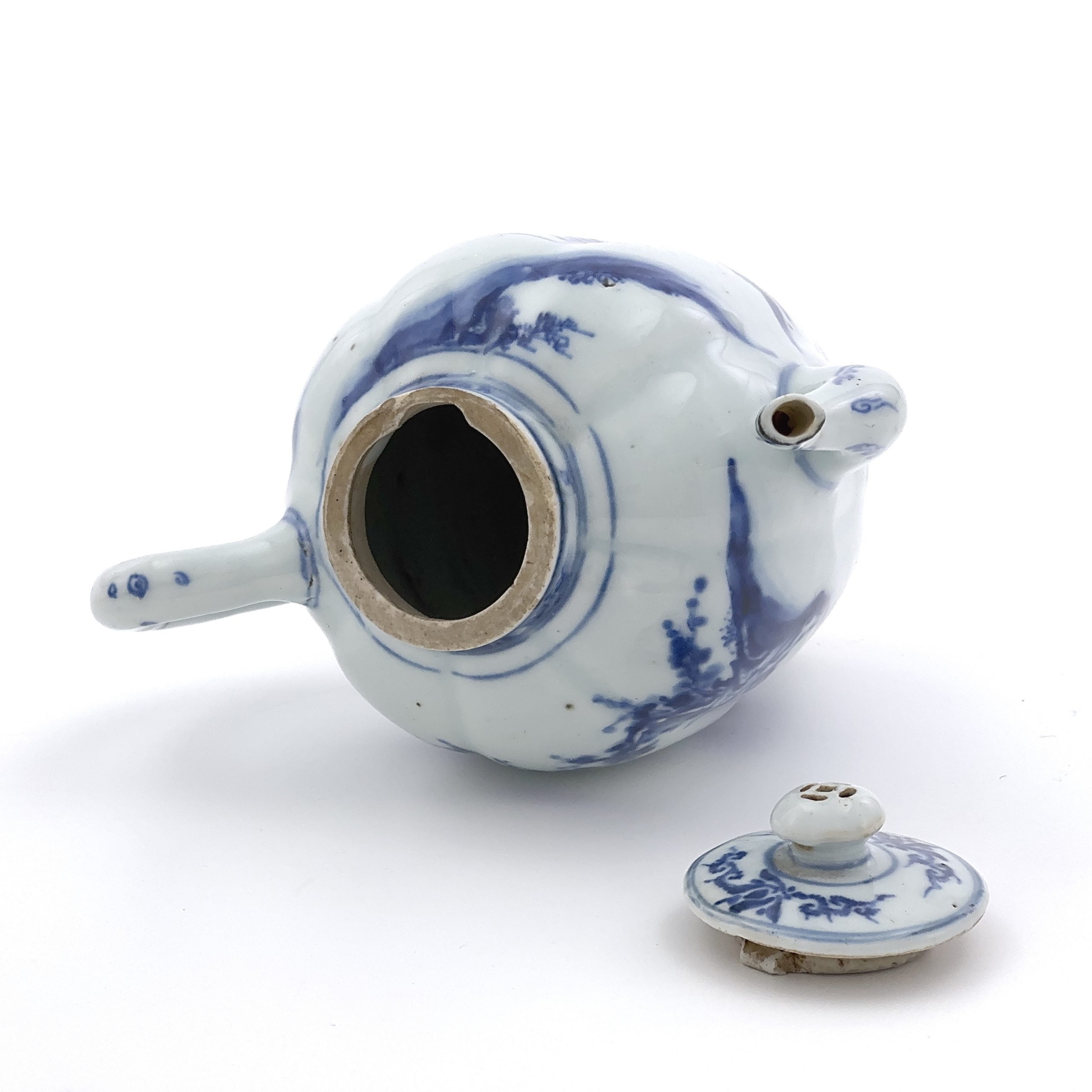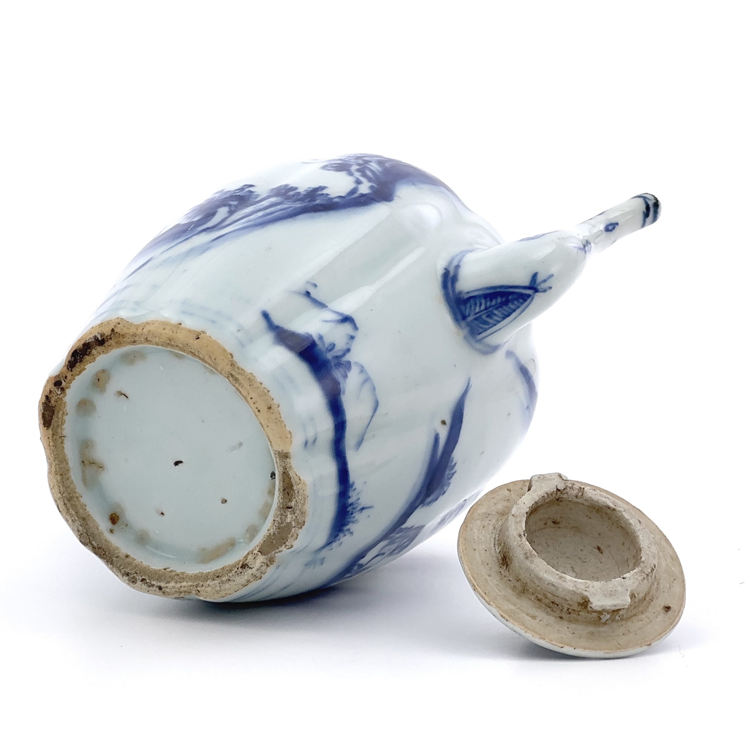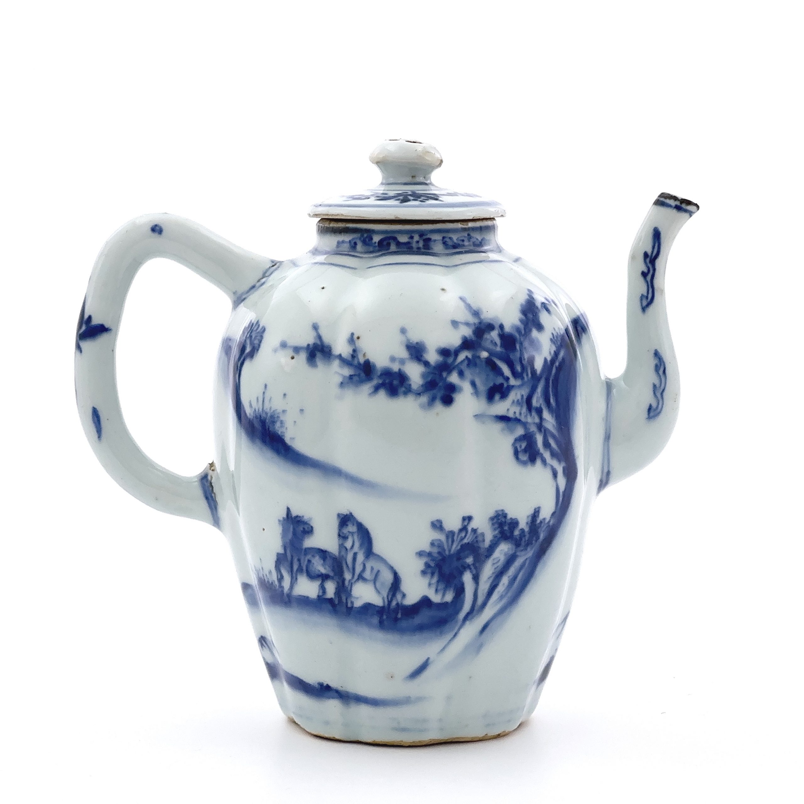 明末清初 青花 山水馬図 執壺