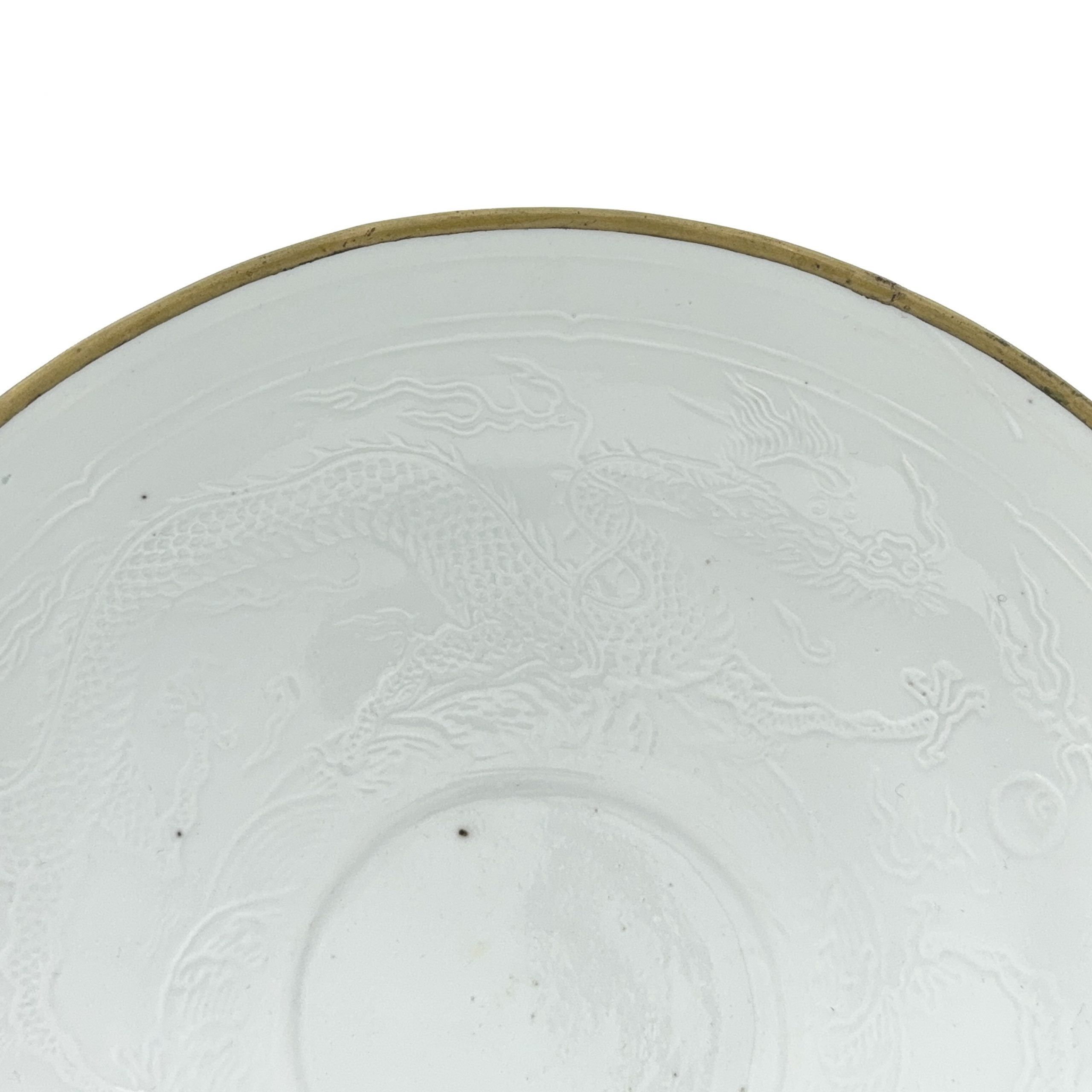 清或早期 白磁浮雕 雙龍紋 碗