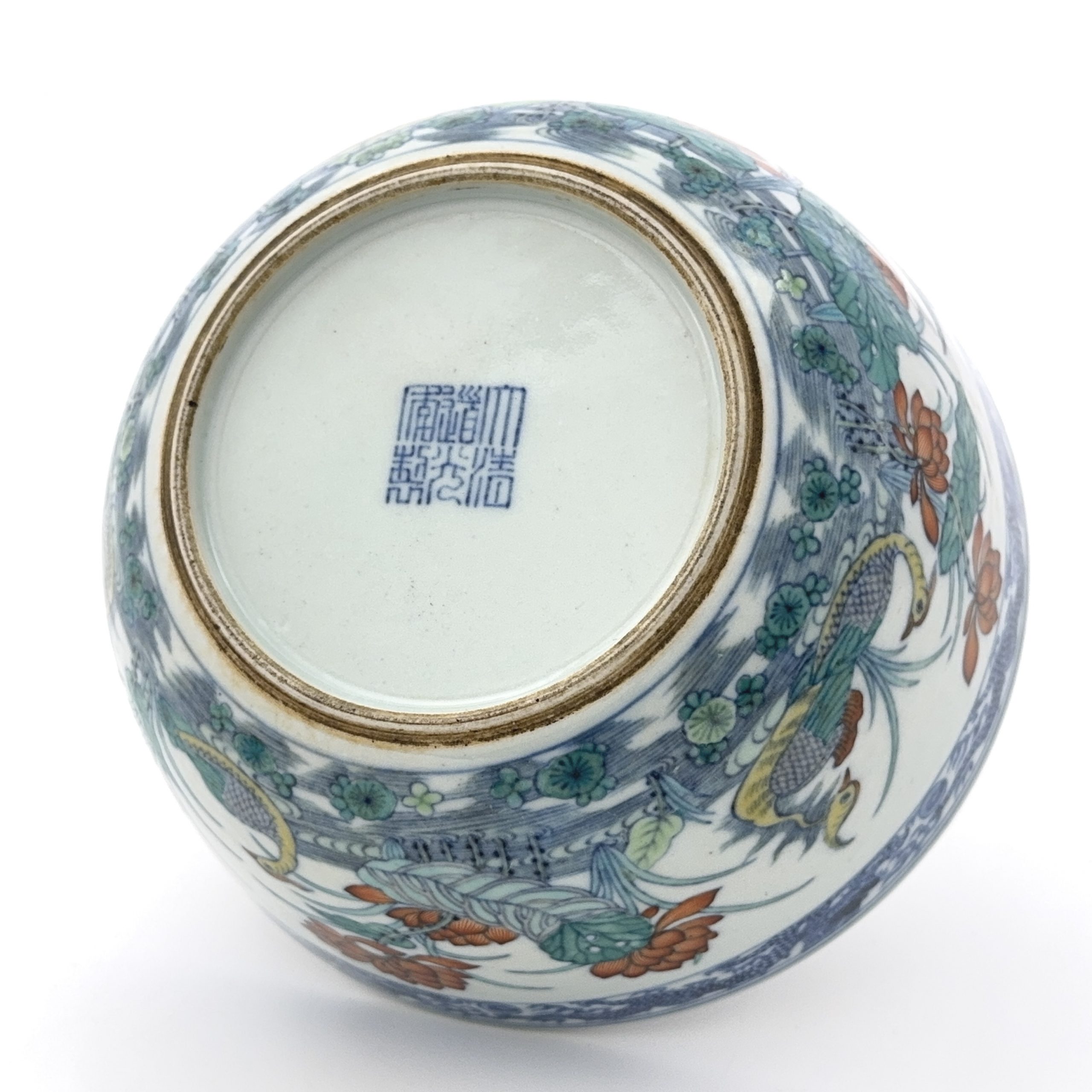 「大清道光年製」款 粉彩 蓮池生物紋 碗