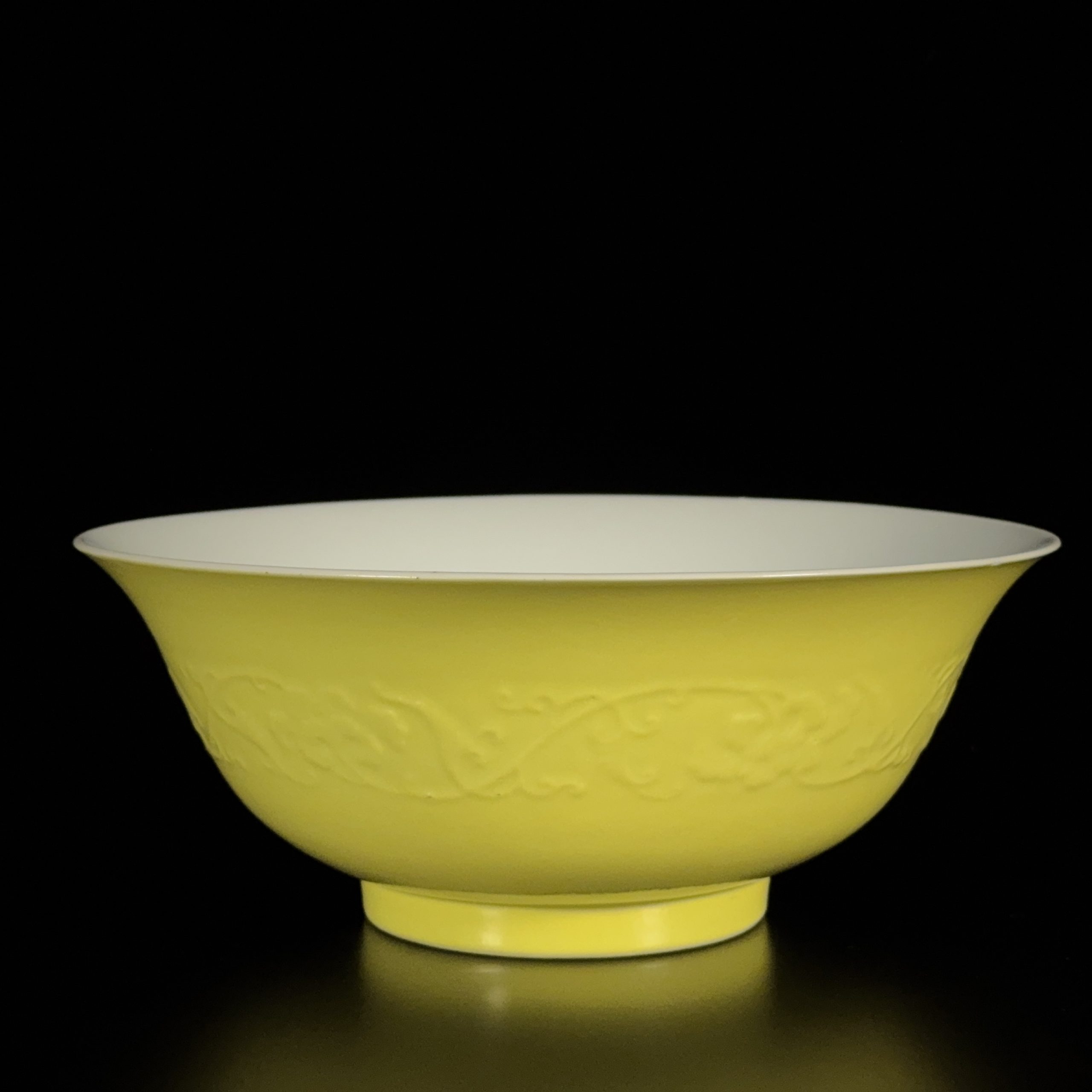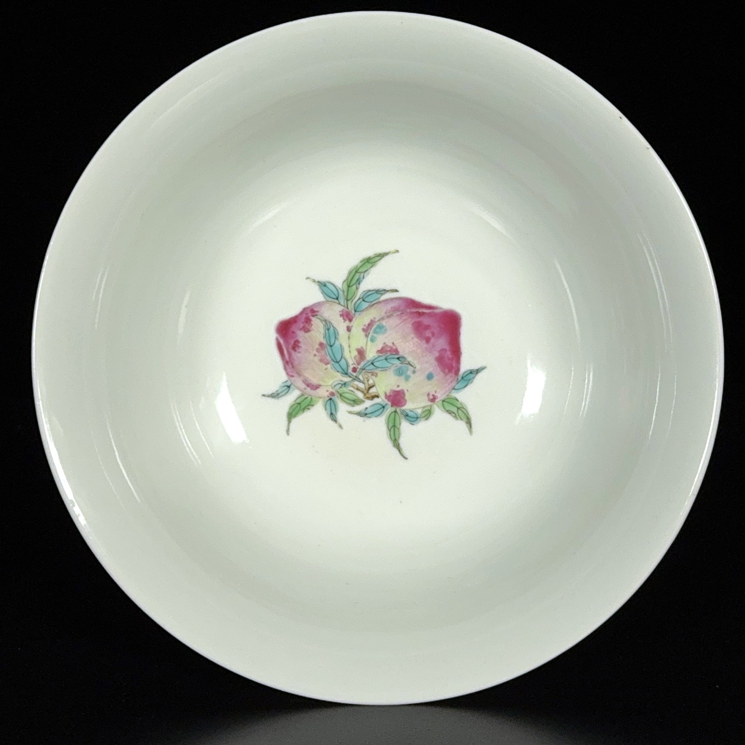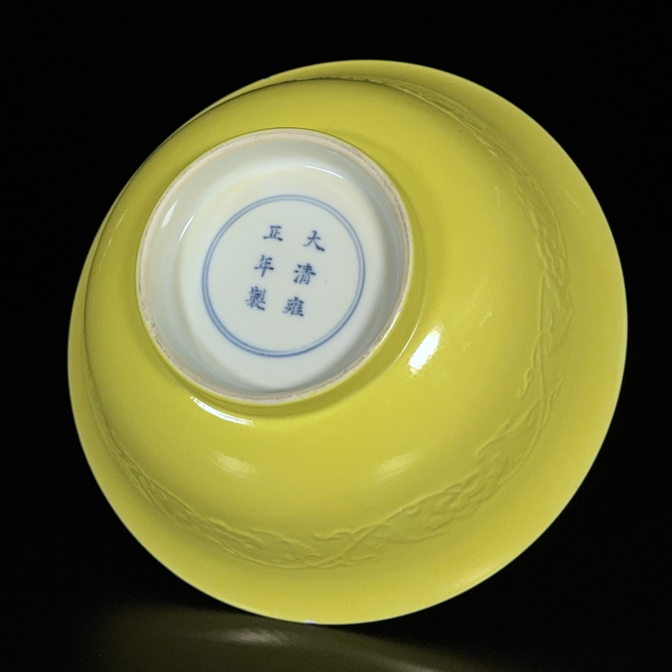 「大清雍正年製」款 黄地粉彩 桃紋 碗