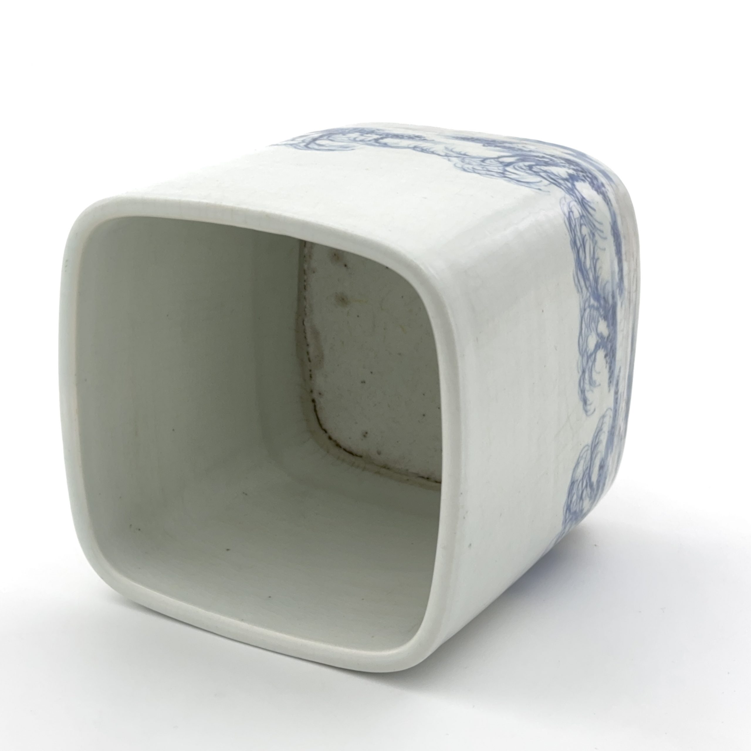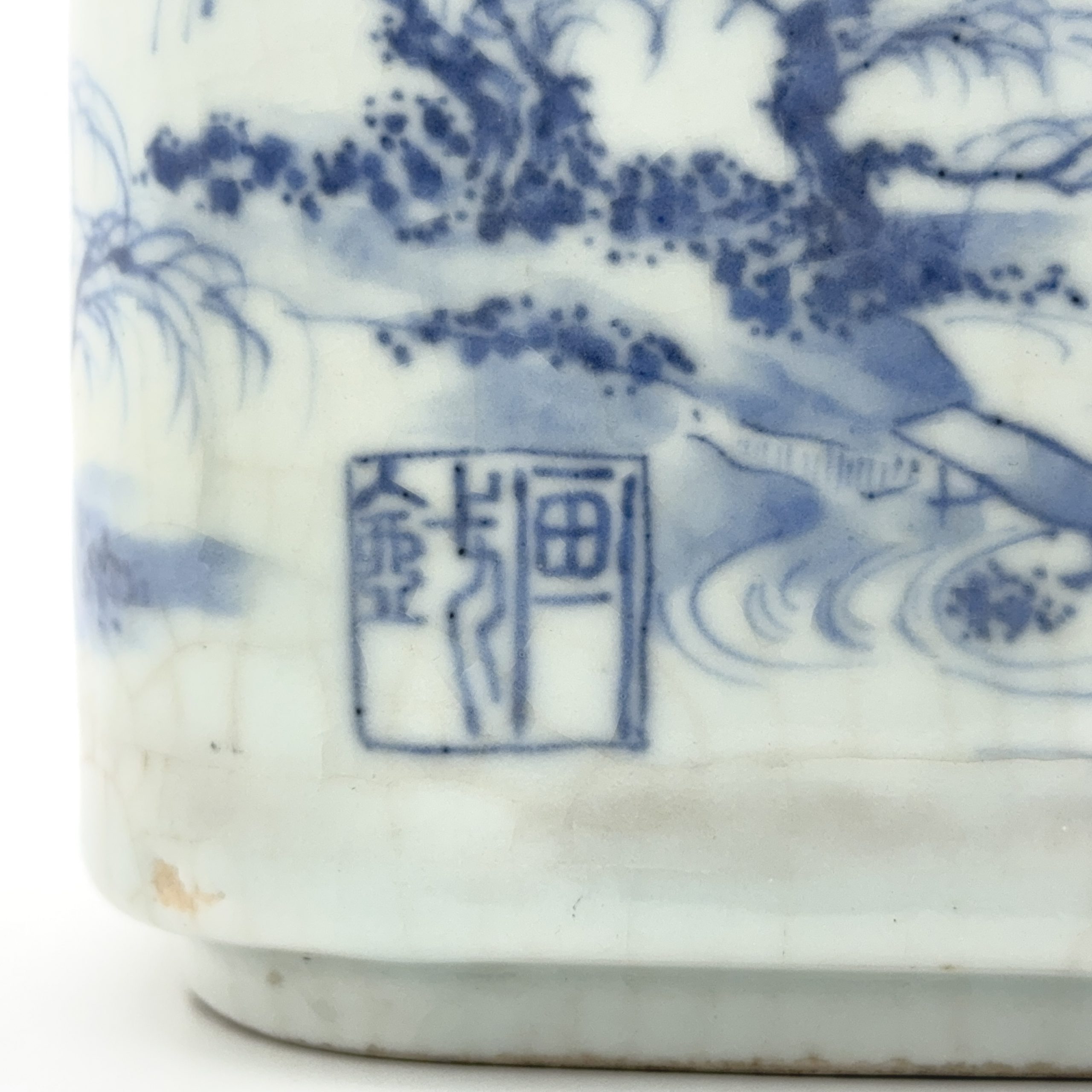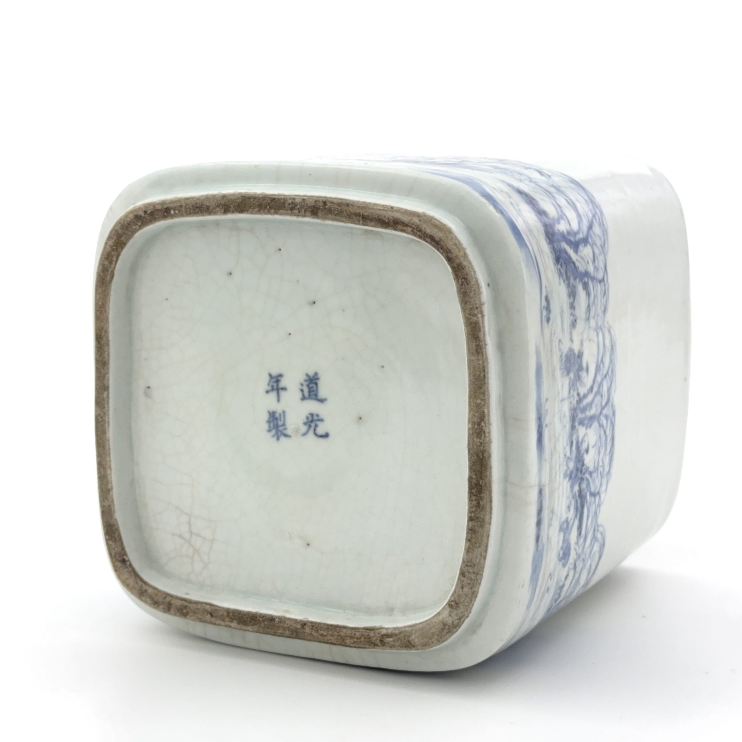 清道光 在銘 青花 山水図 方缸