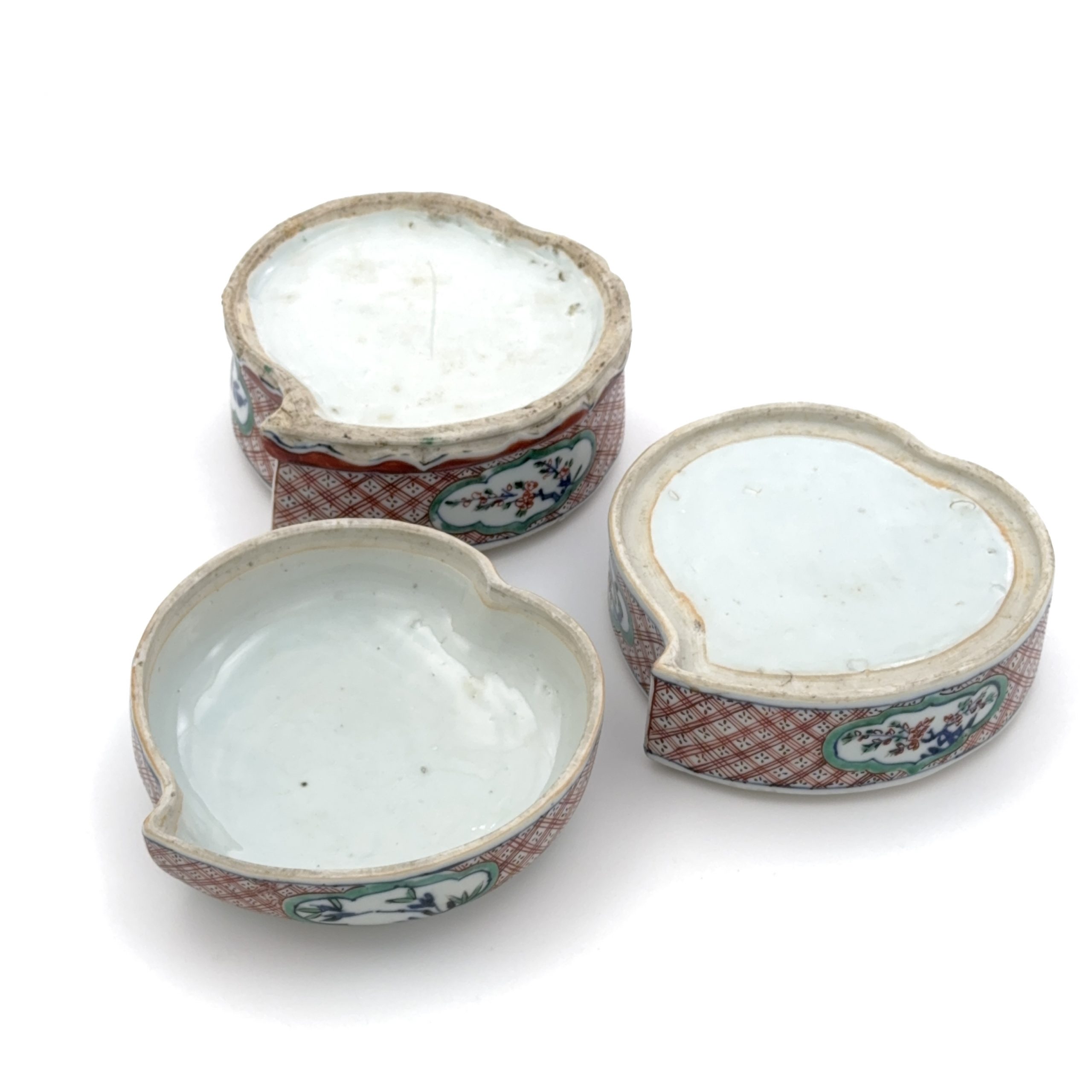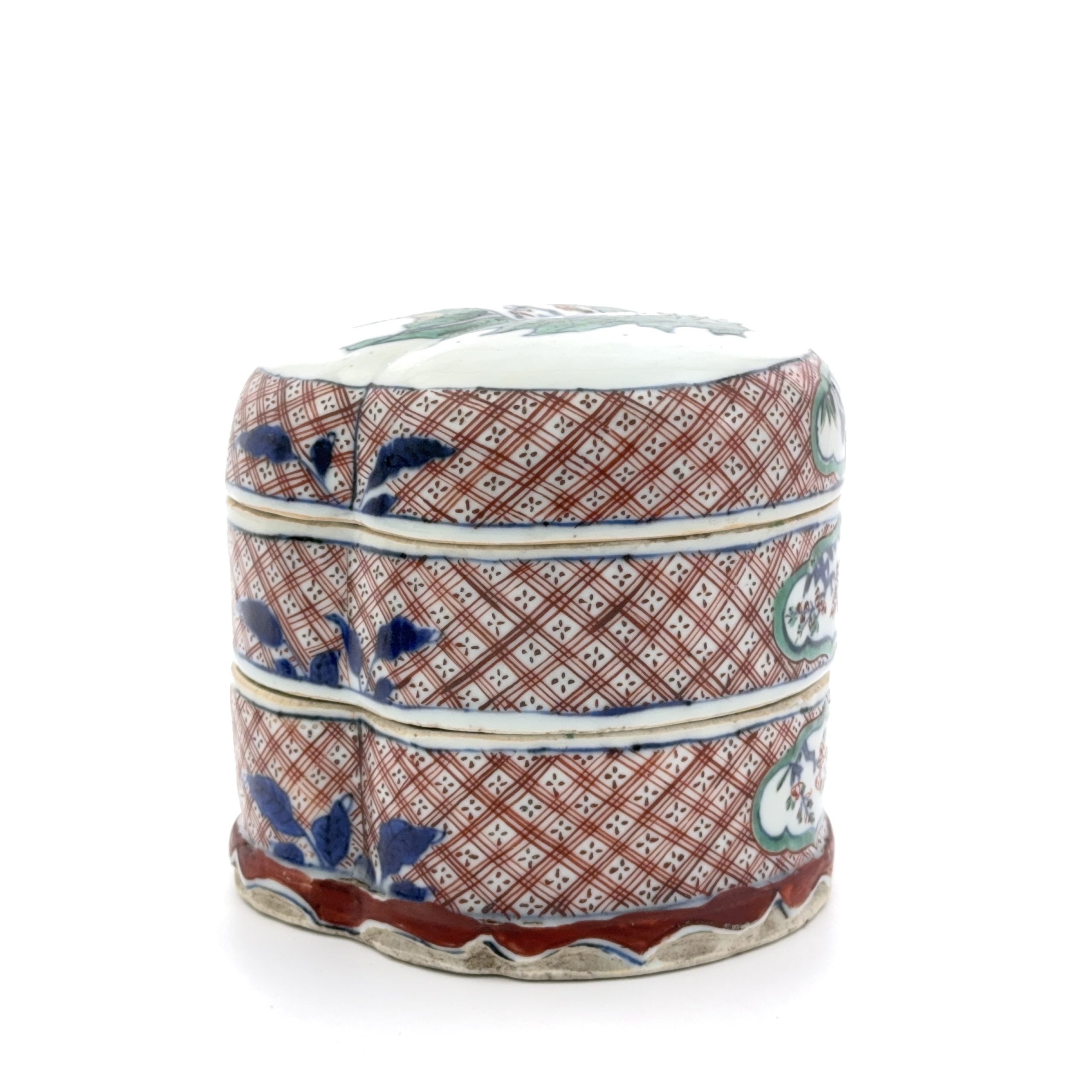明末 五彩 花紋 桃形 二截盒