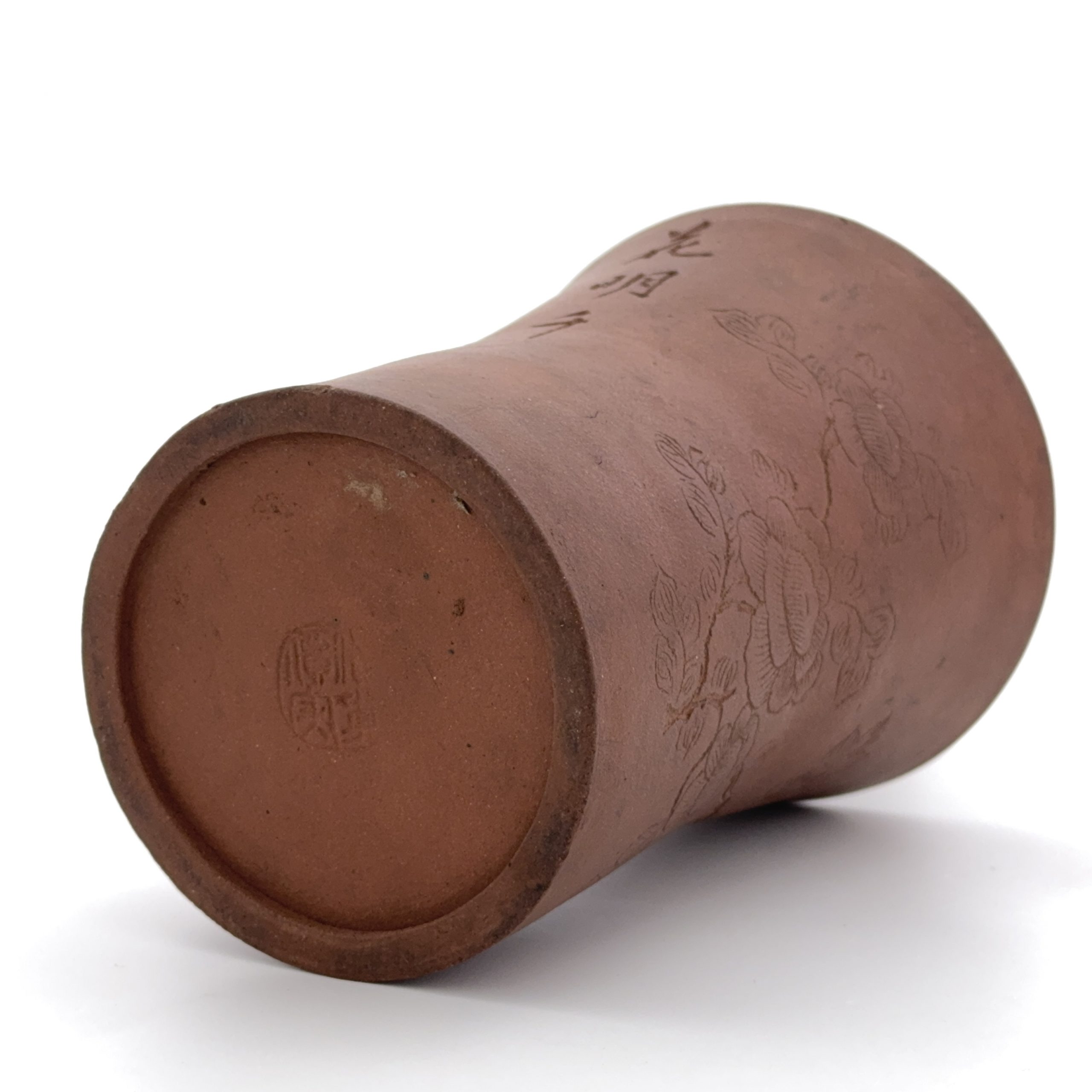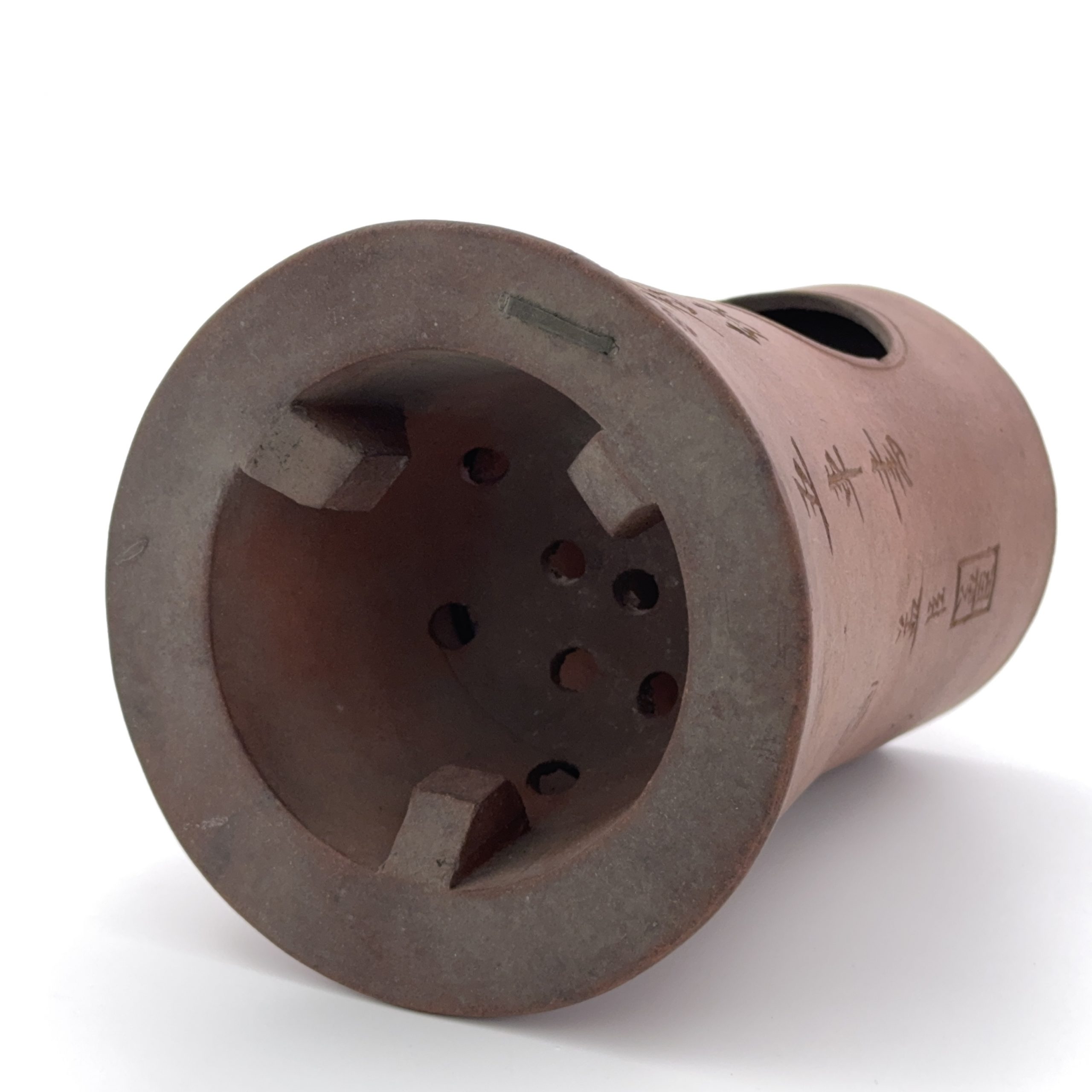 清「孟臣」款 朱泥 刻花詩文紋 涼爐