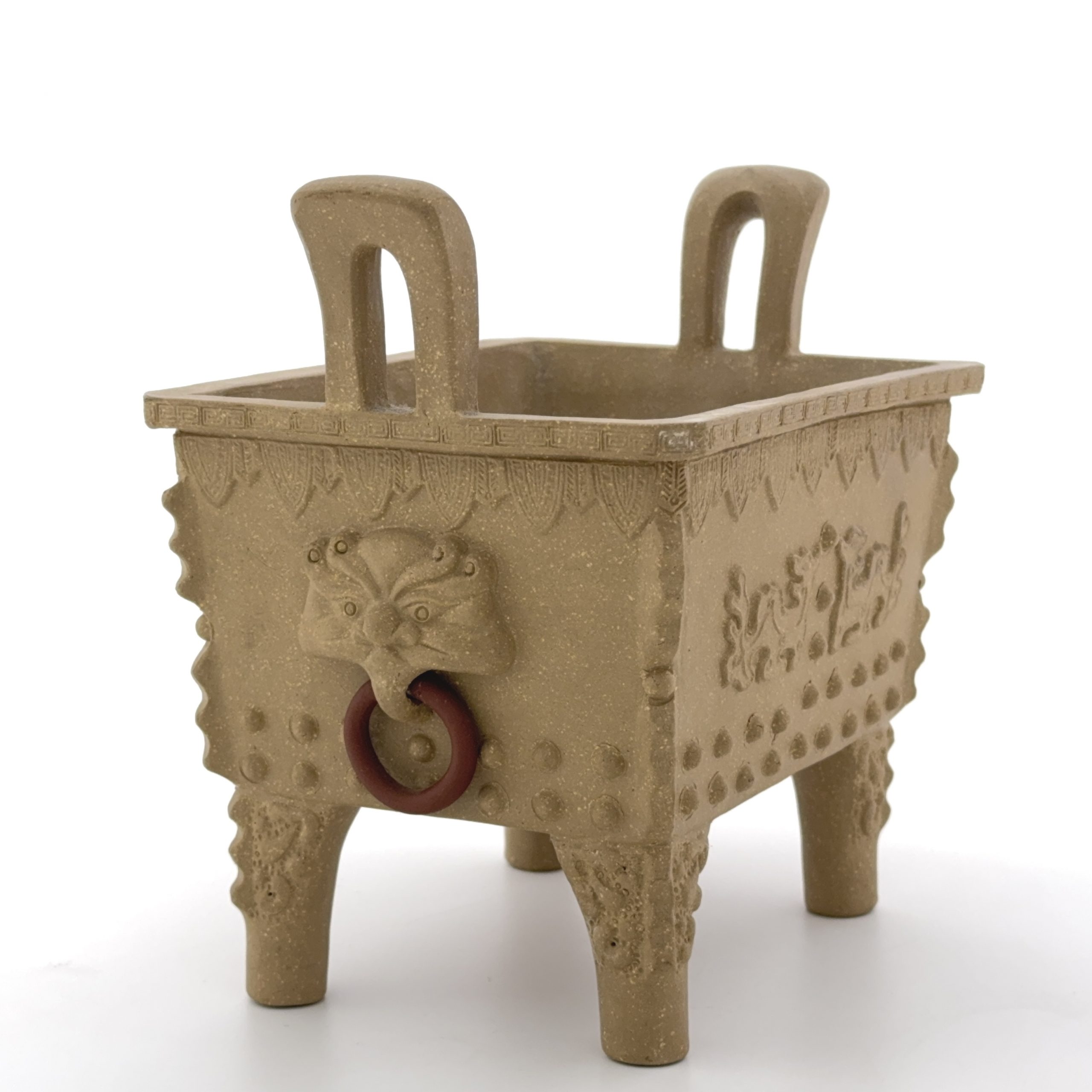 「大清乾隆年製」款 白泥 獣耳長方爐