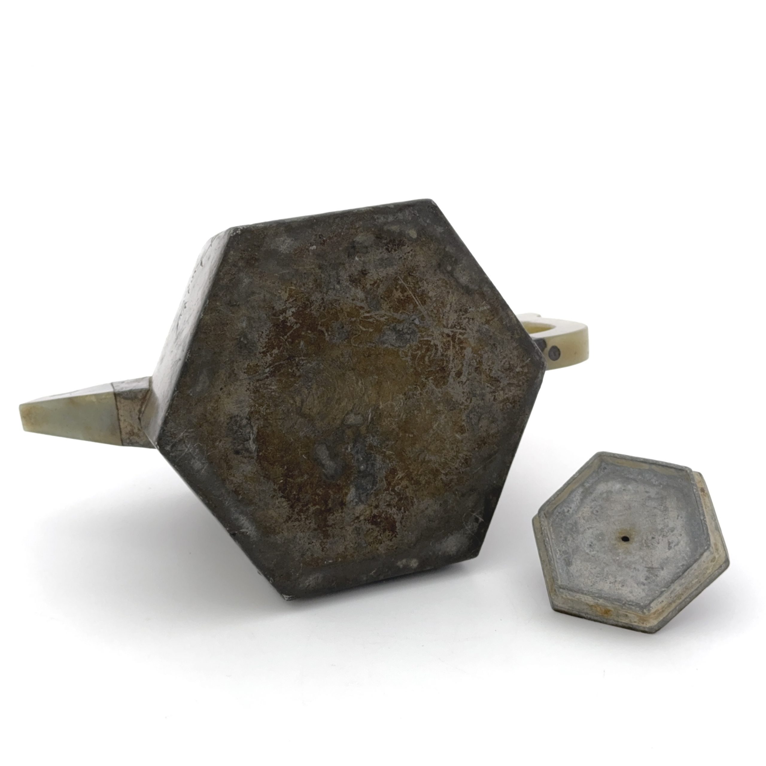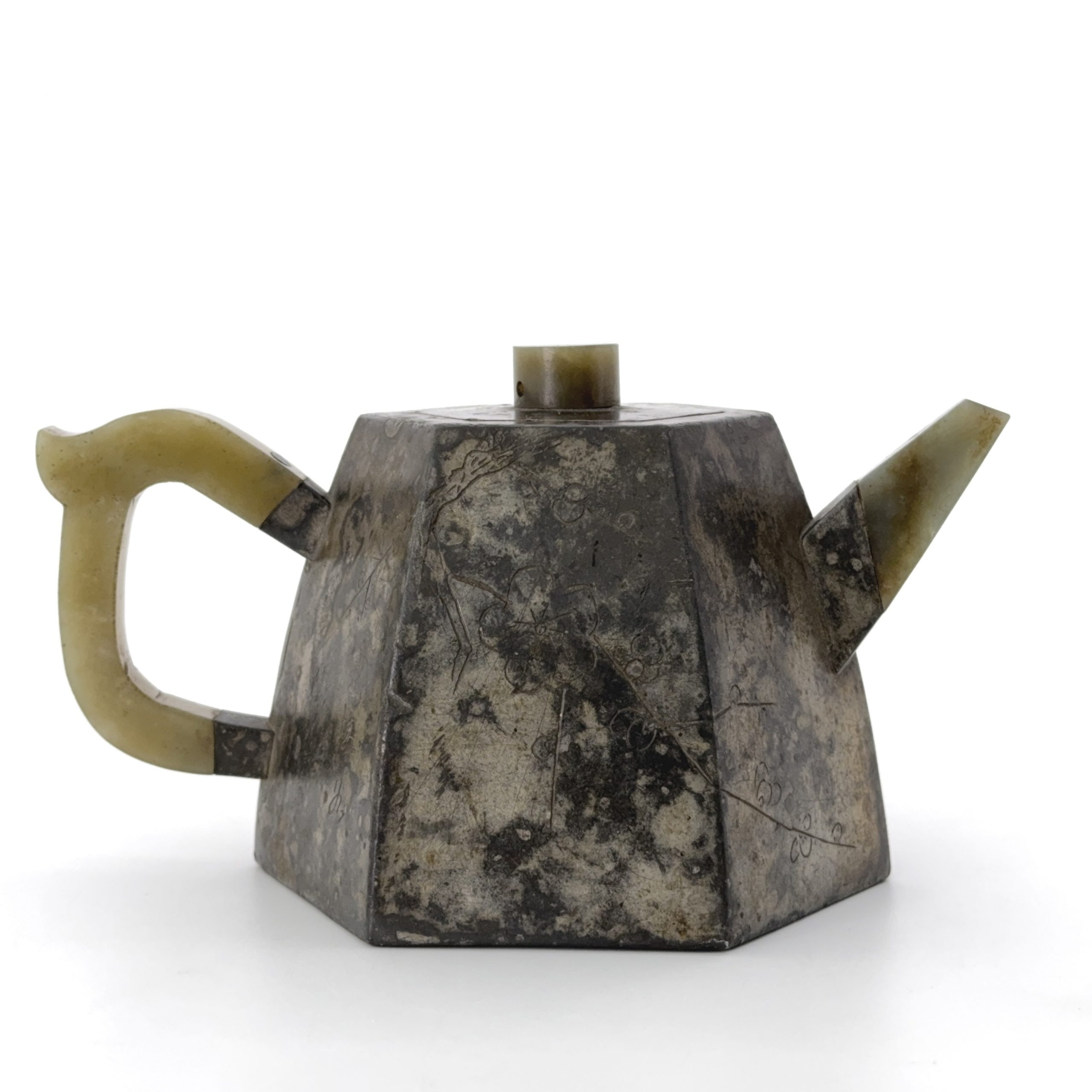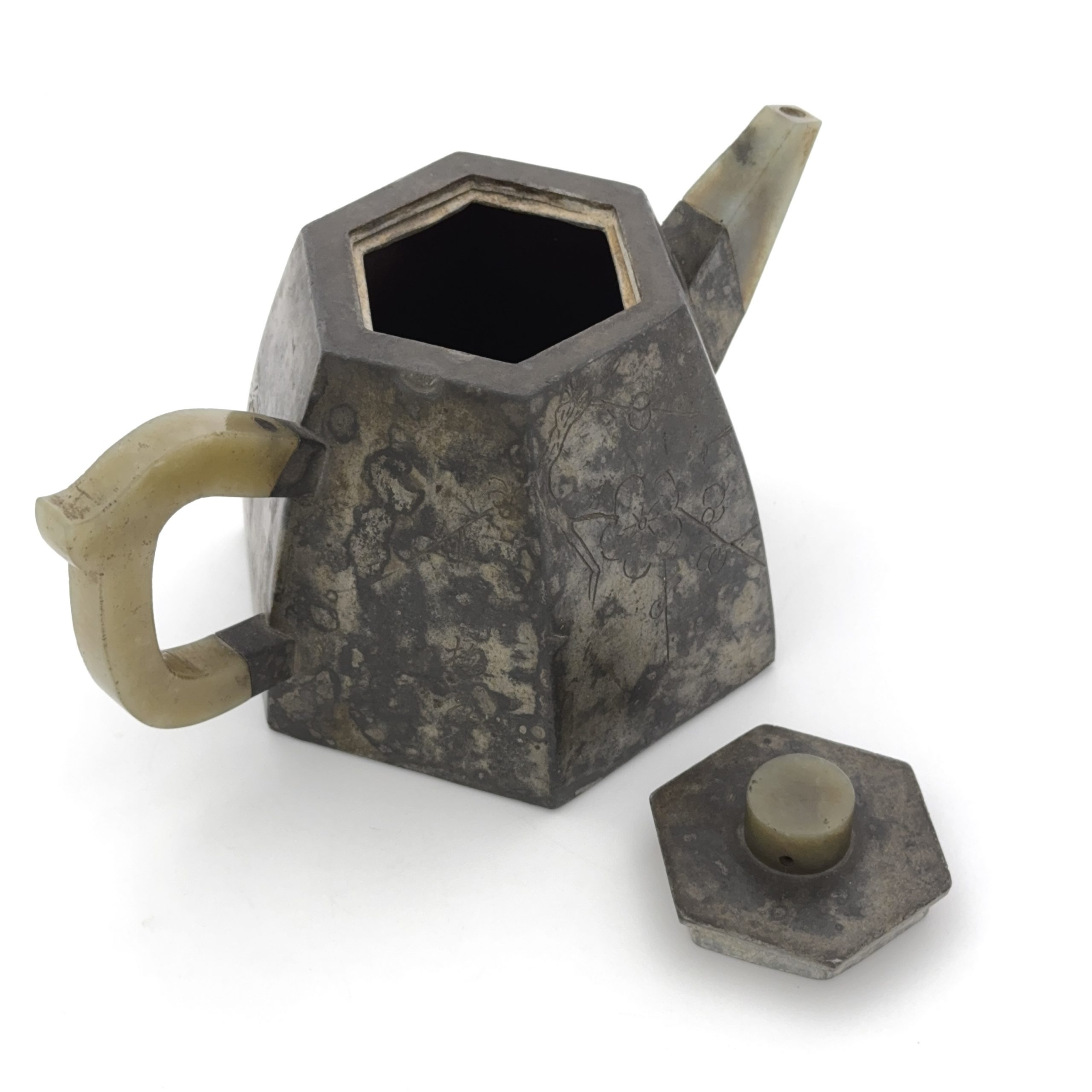 清「梅谷」「楊彭年造」款 錫包紫砂 刻花紋 執壺