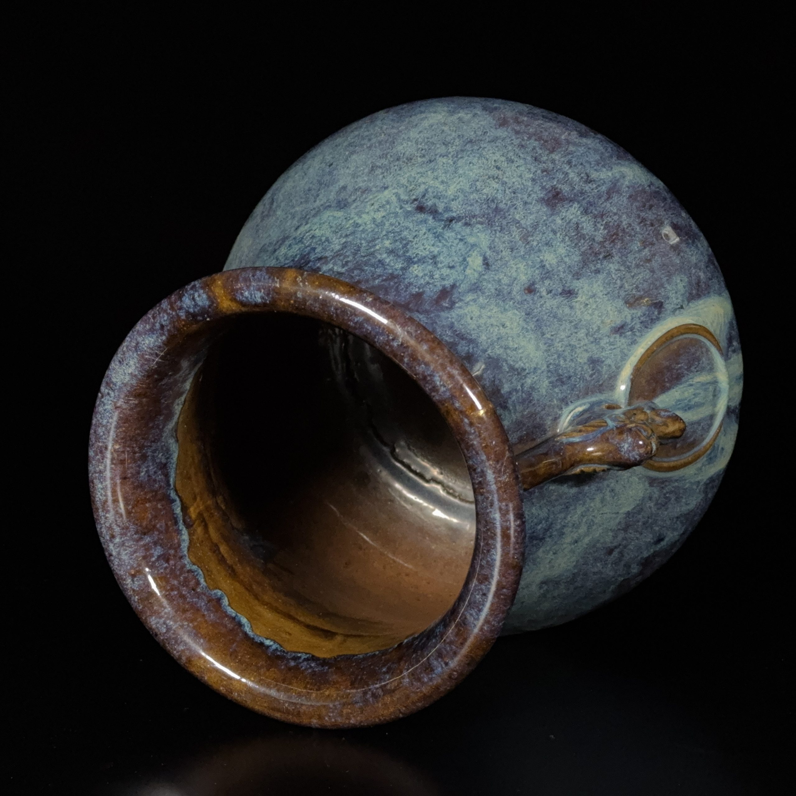 清「高徳監造」款 宜興海鼠釉 龍耳瓶