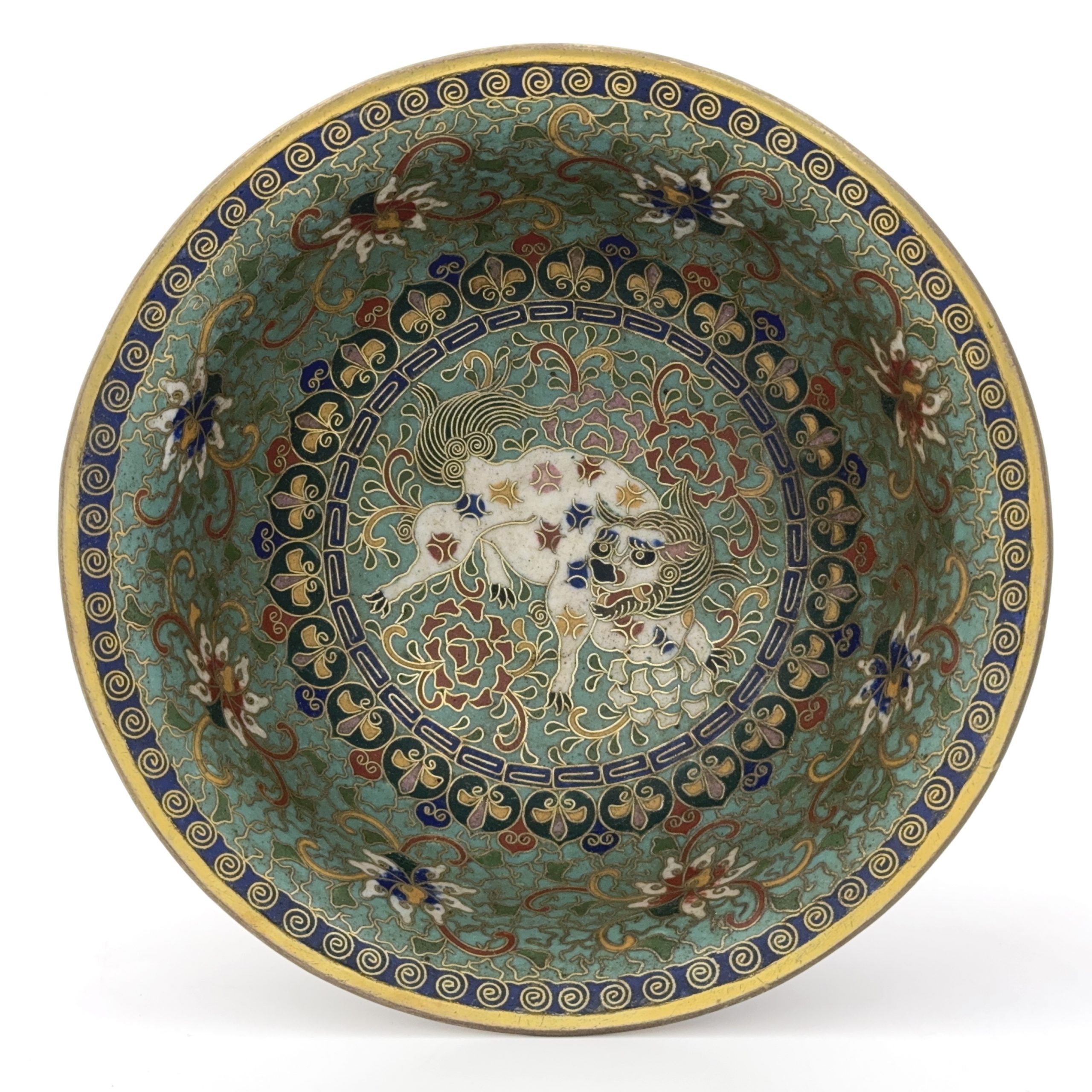 清 銅胎掐絲琺瑯 花獅子紋 碗