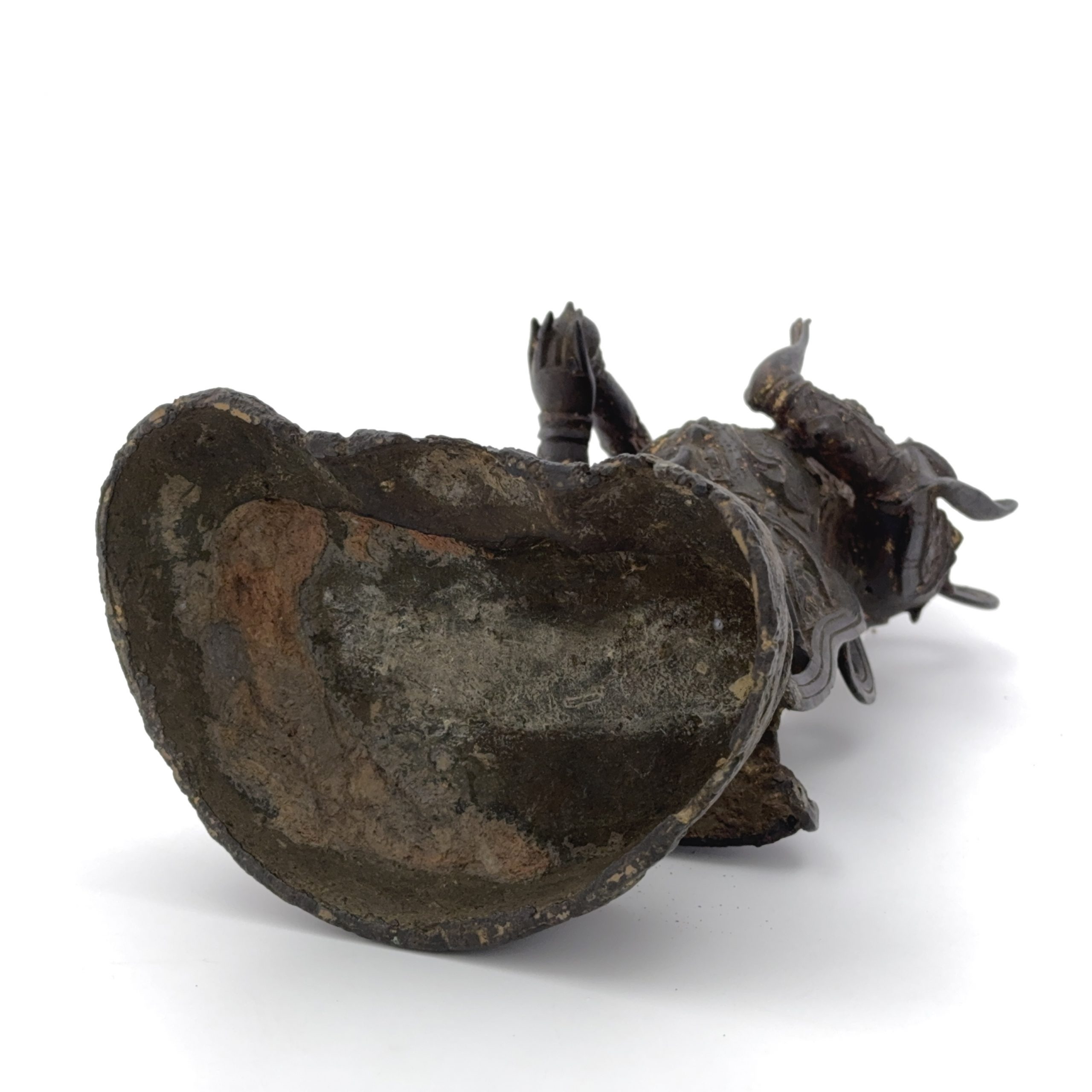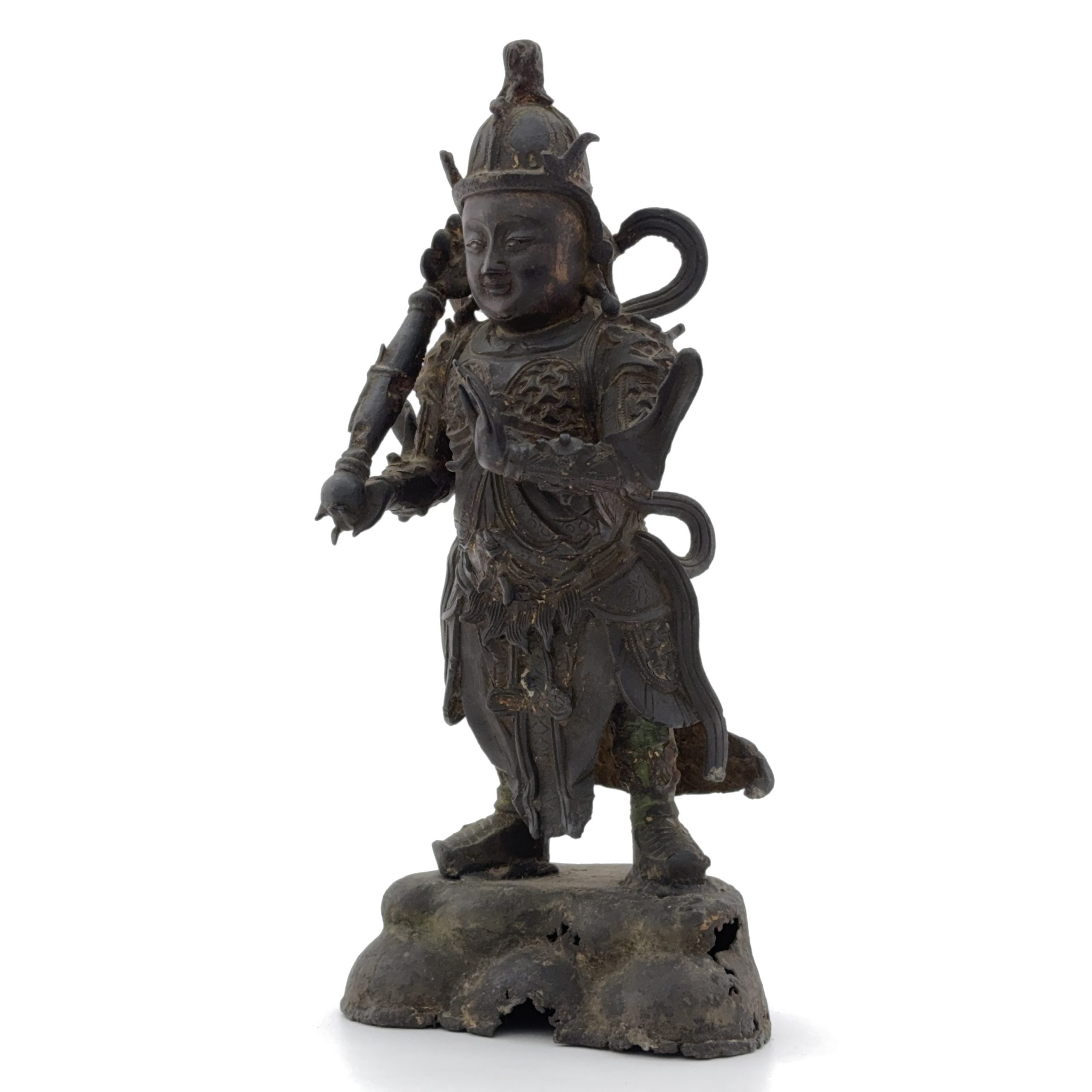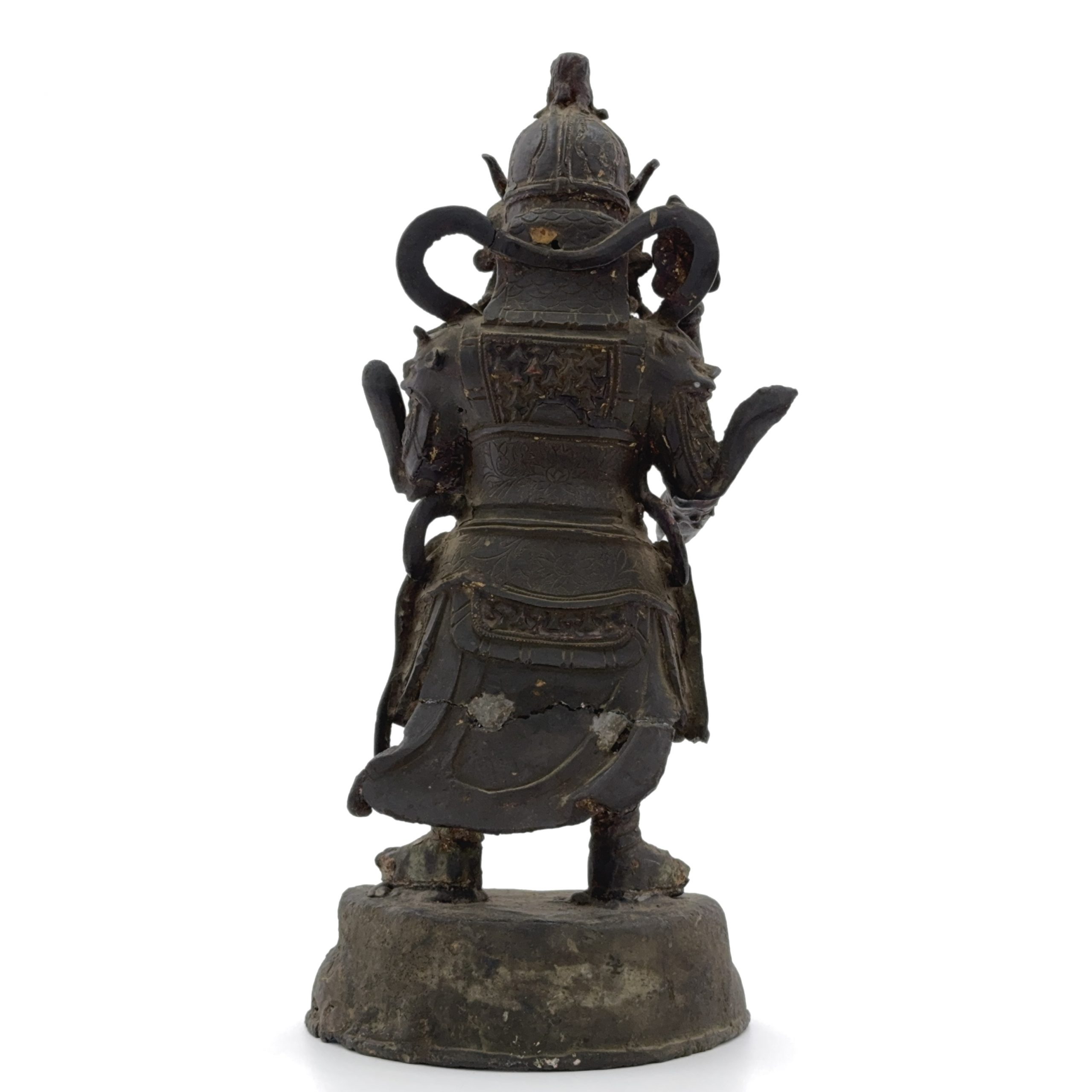 明 銅漆彩 武人像