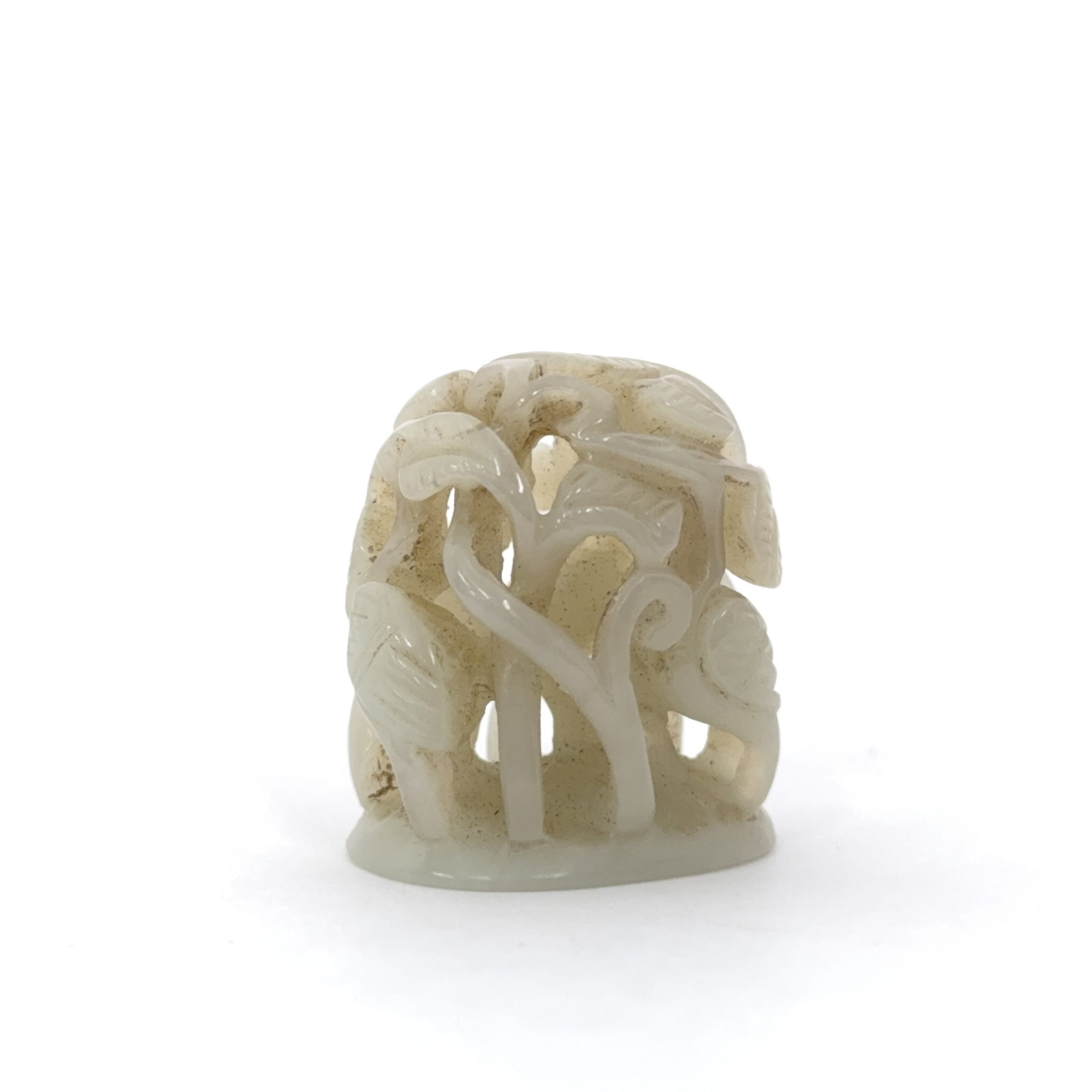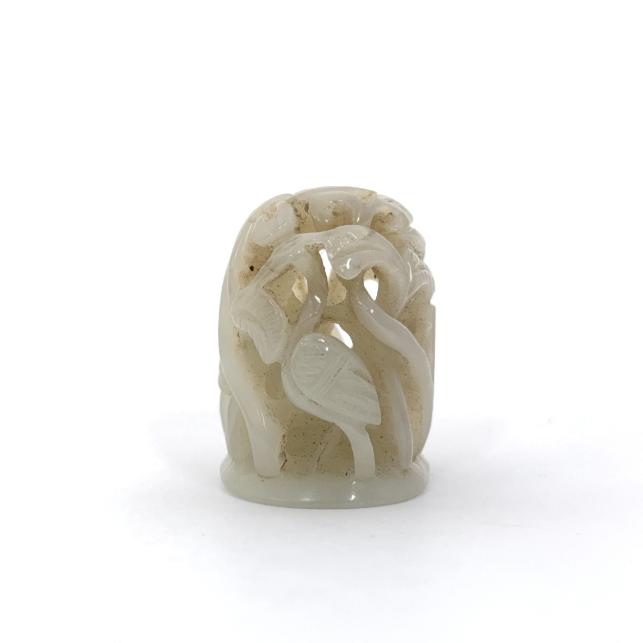 清 白玉透雕 花鳥紋 鈕