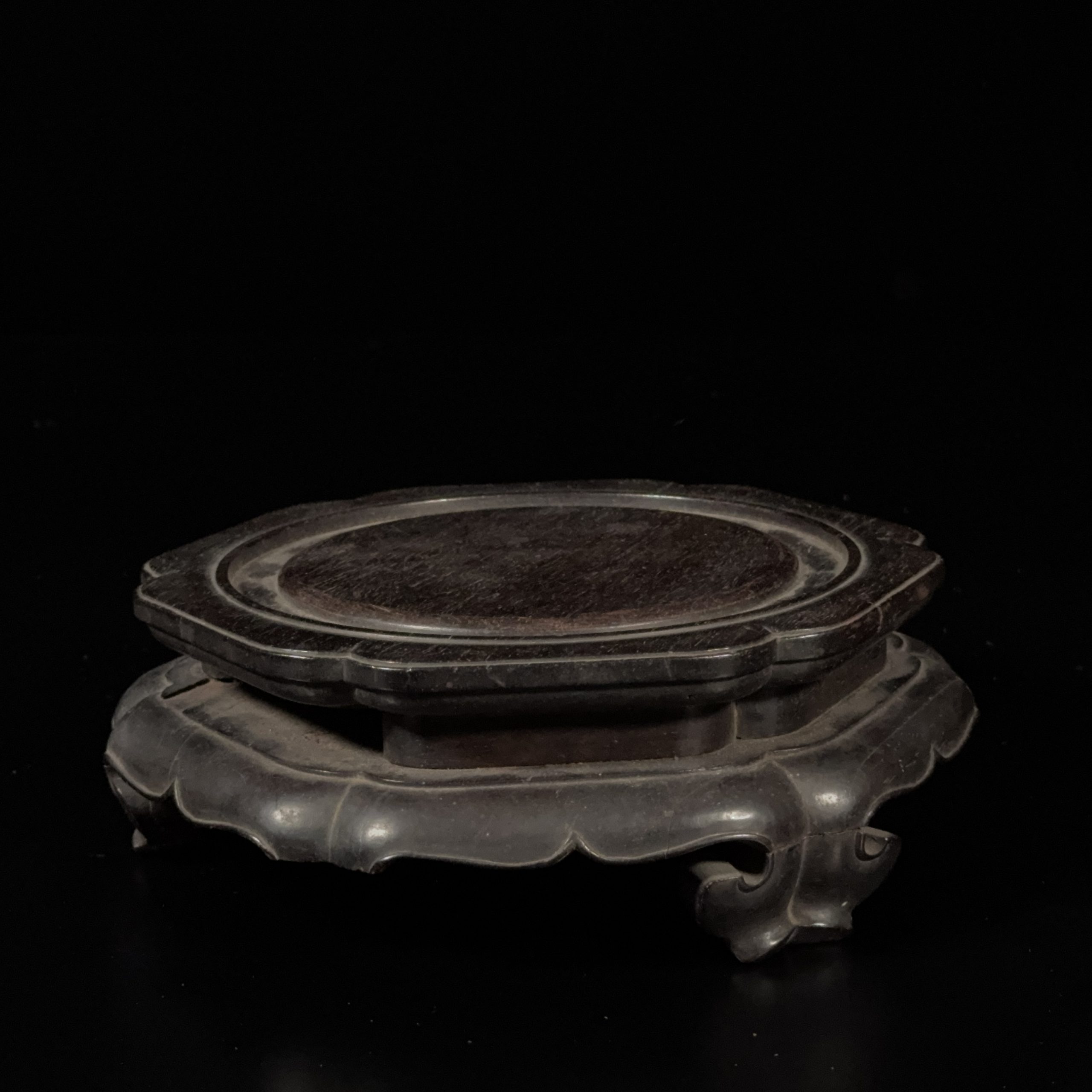 「乾隆御監」「漢獣環壺」紫檀製 台