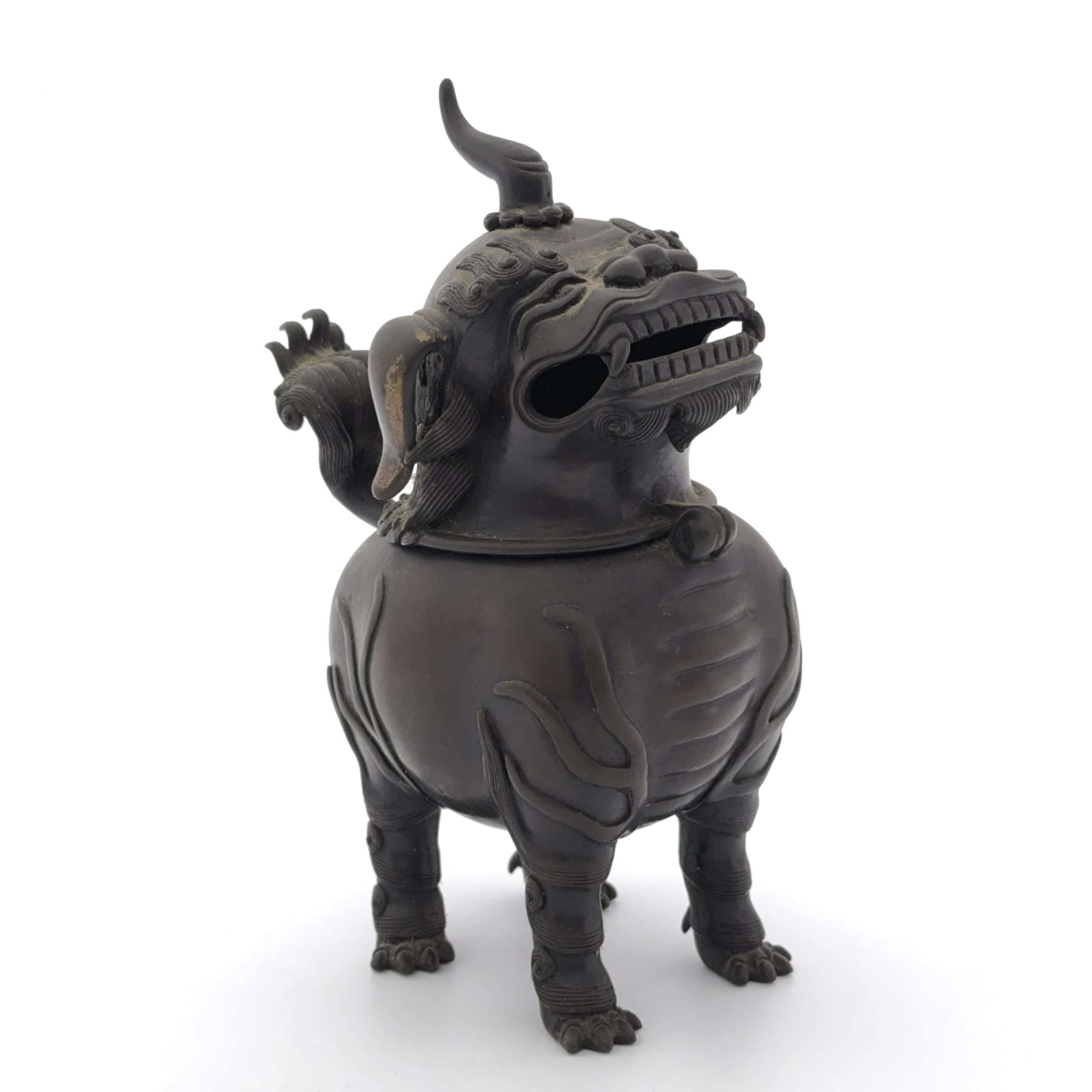 「大明宣徳年製」款 銅局部鎏金 獅子形爐