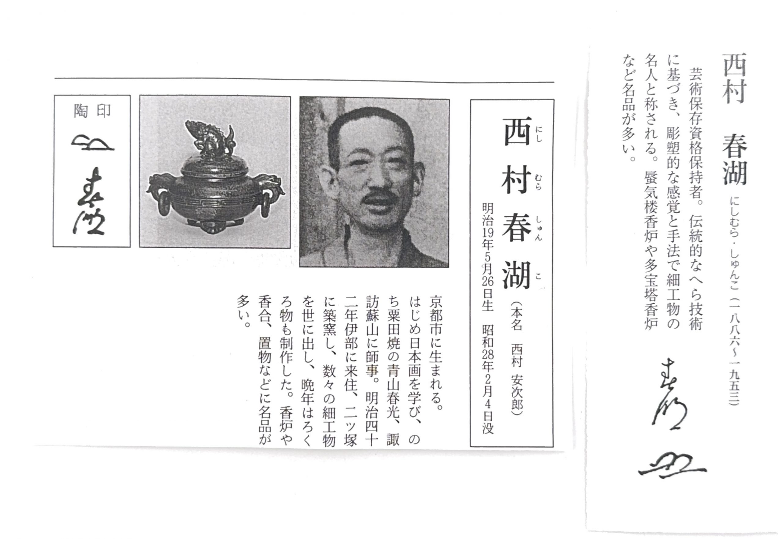 「西村春湖」造 備前四方塔香爐