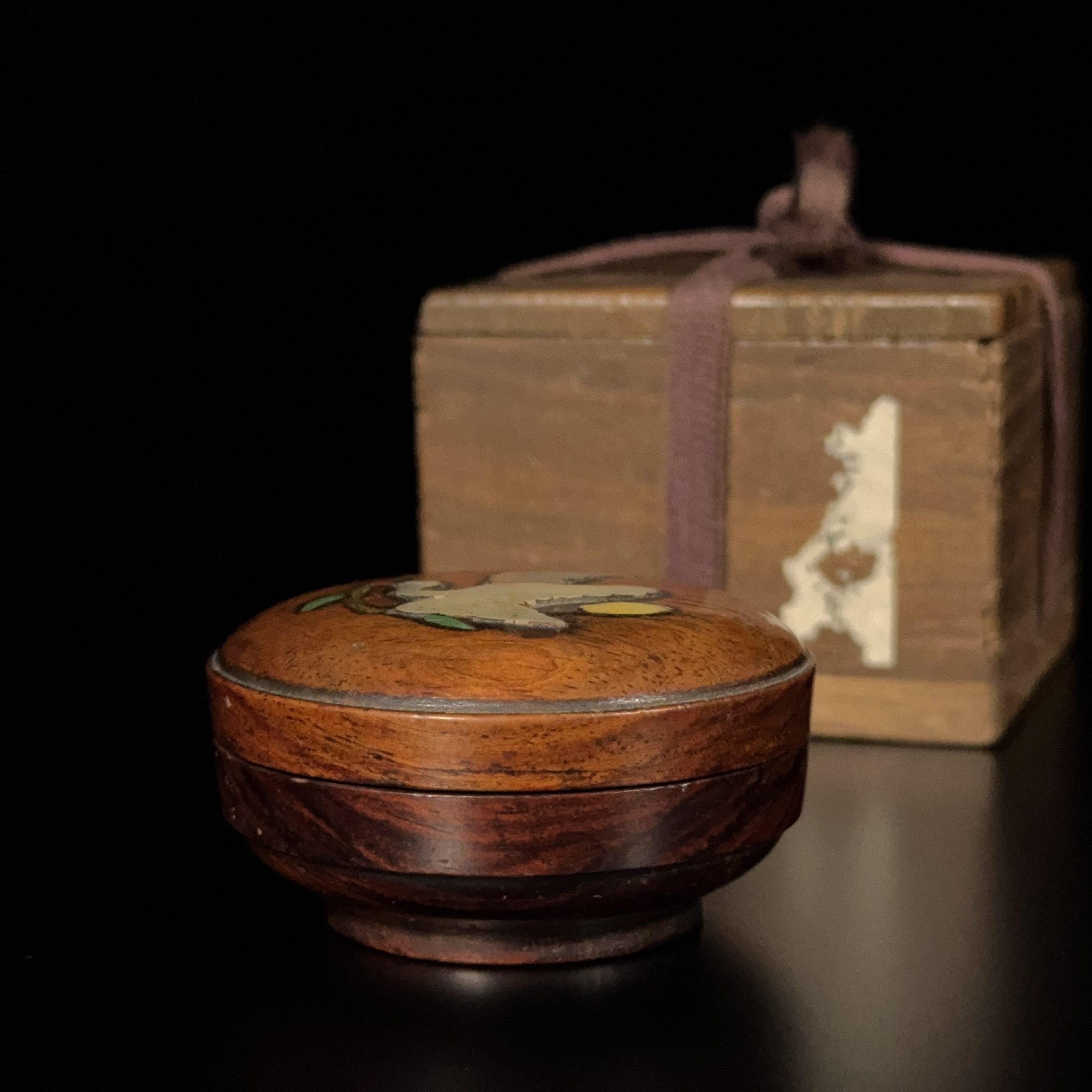 清 黄花梨嵌螺鈿 花鳥紋 圓盒
