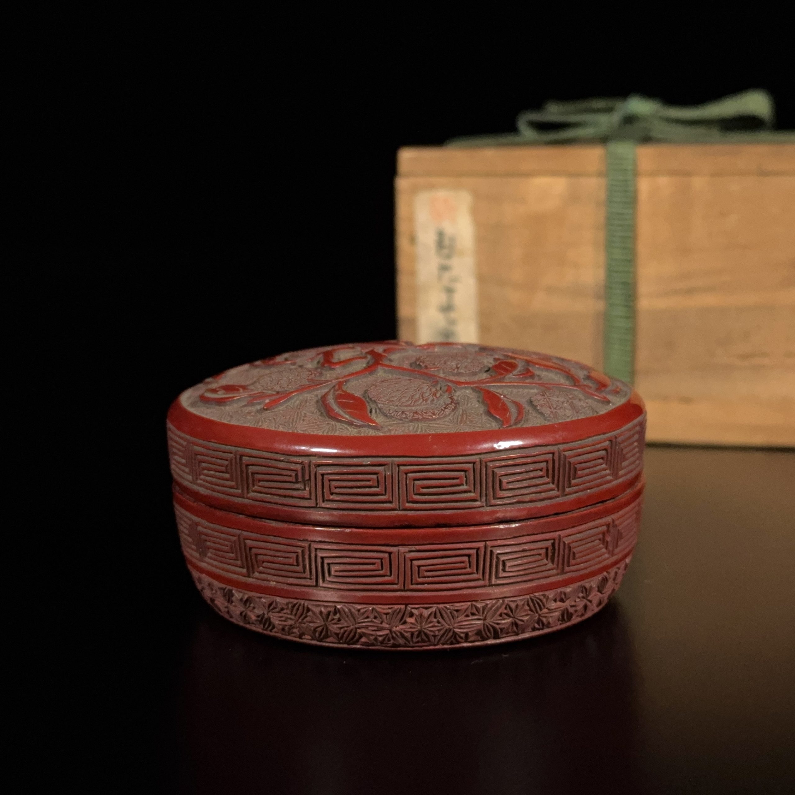 明 剔紅雕 茘枝紋 蓋盒