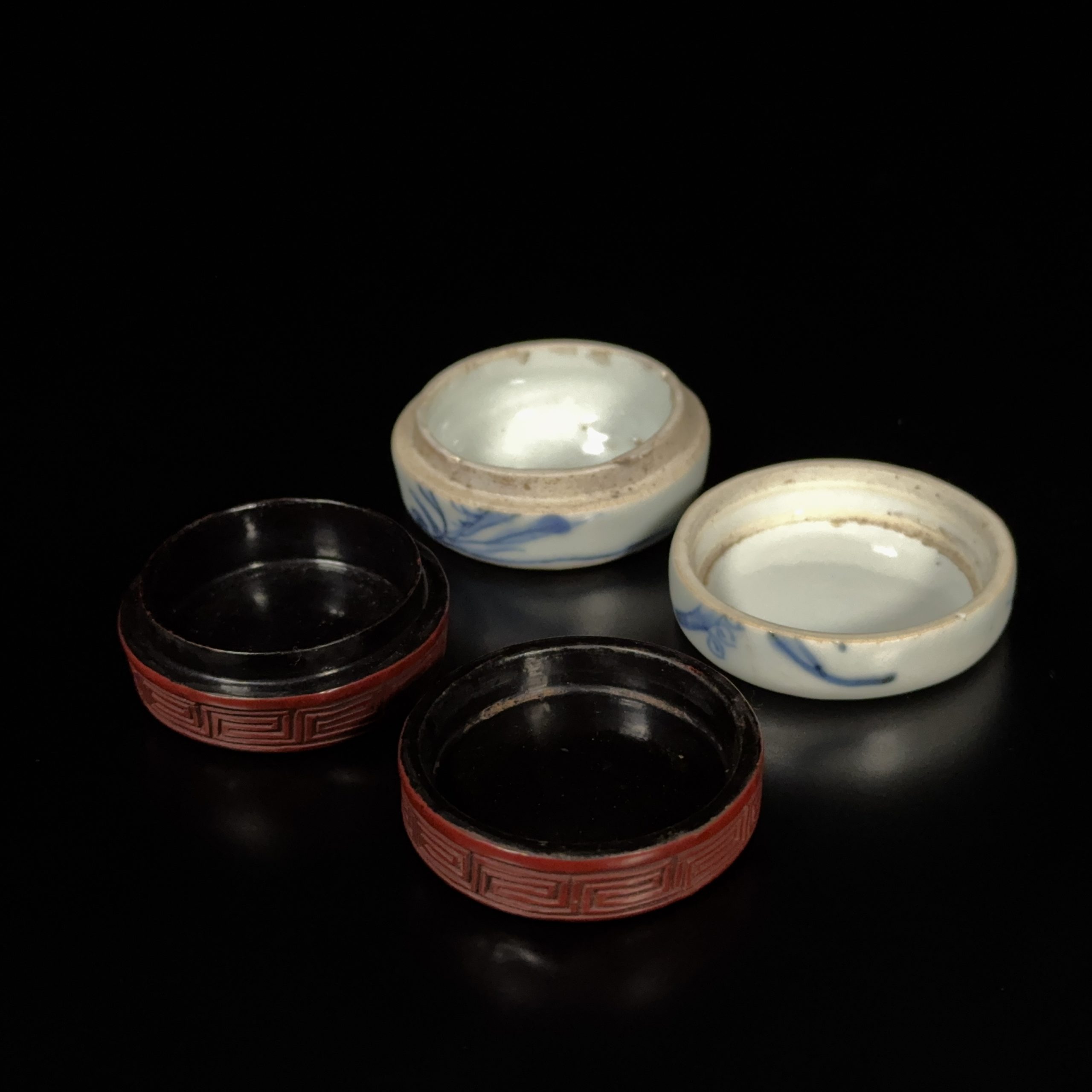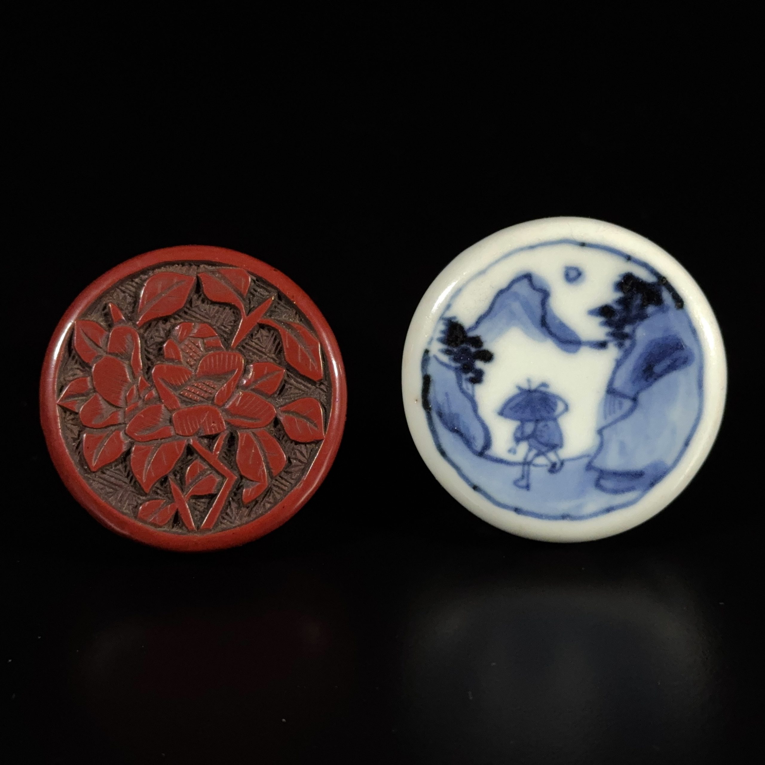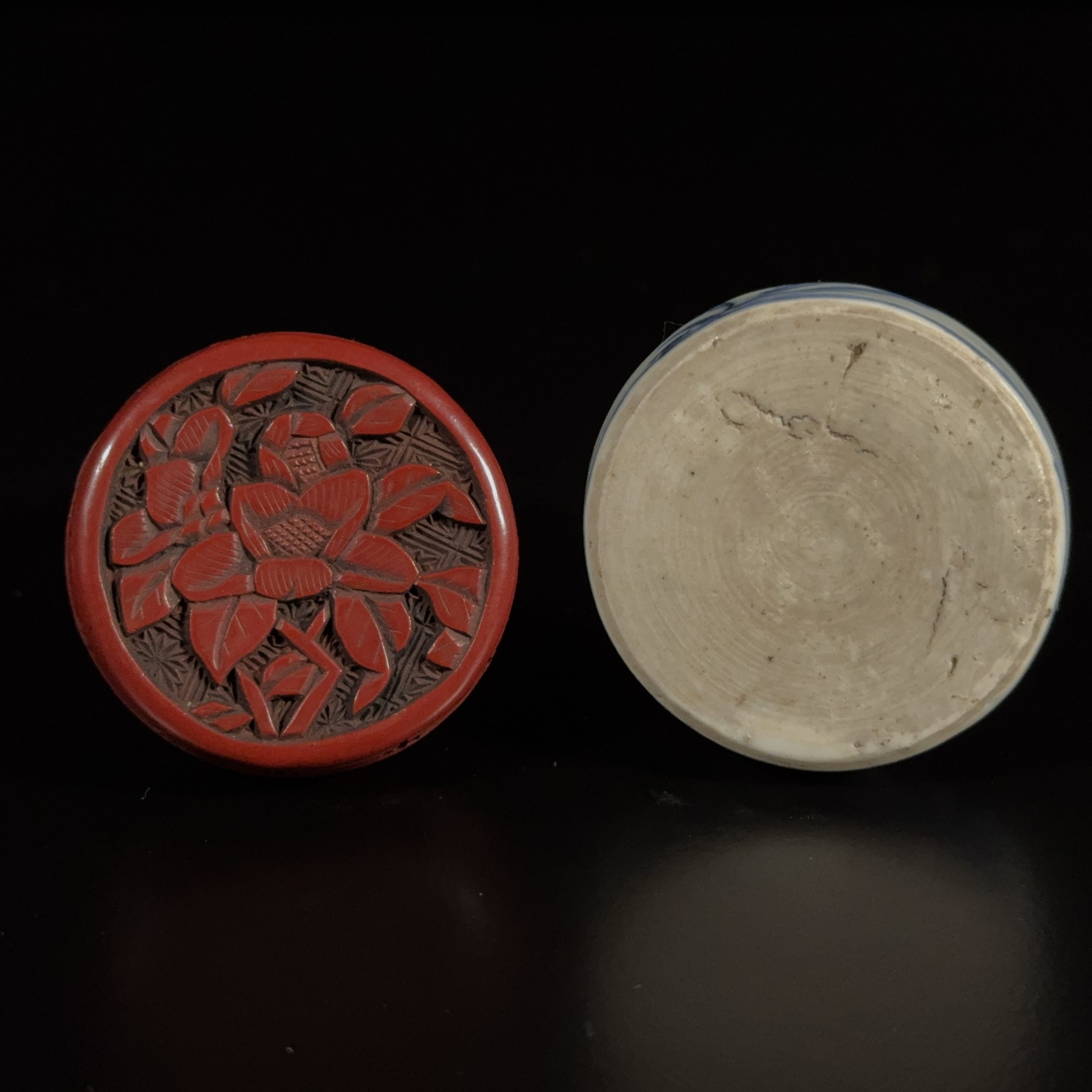 明 剔紅両面雕 花紋 圓盒等 計2件