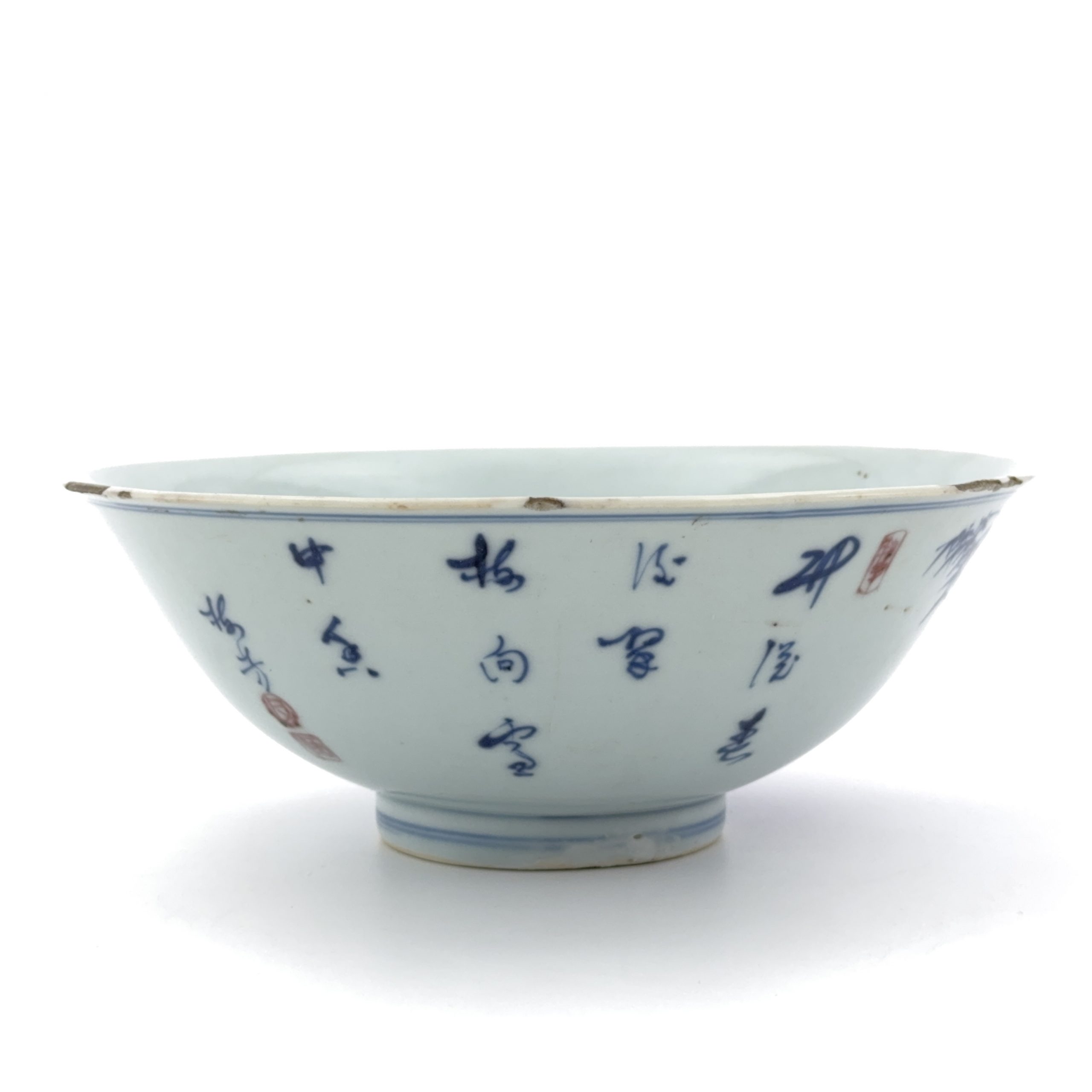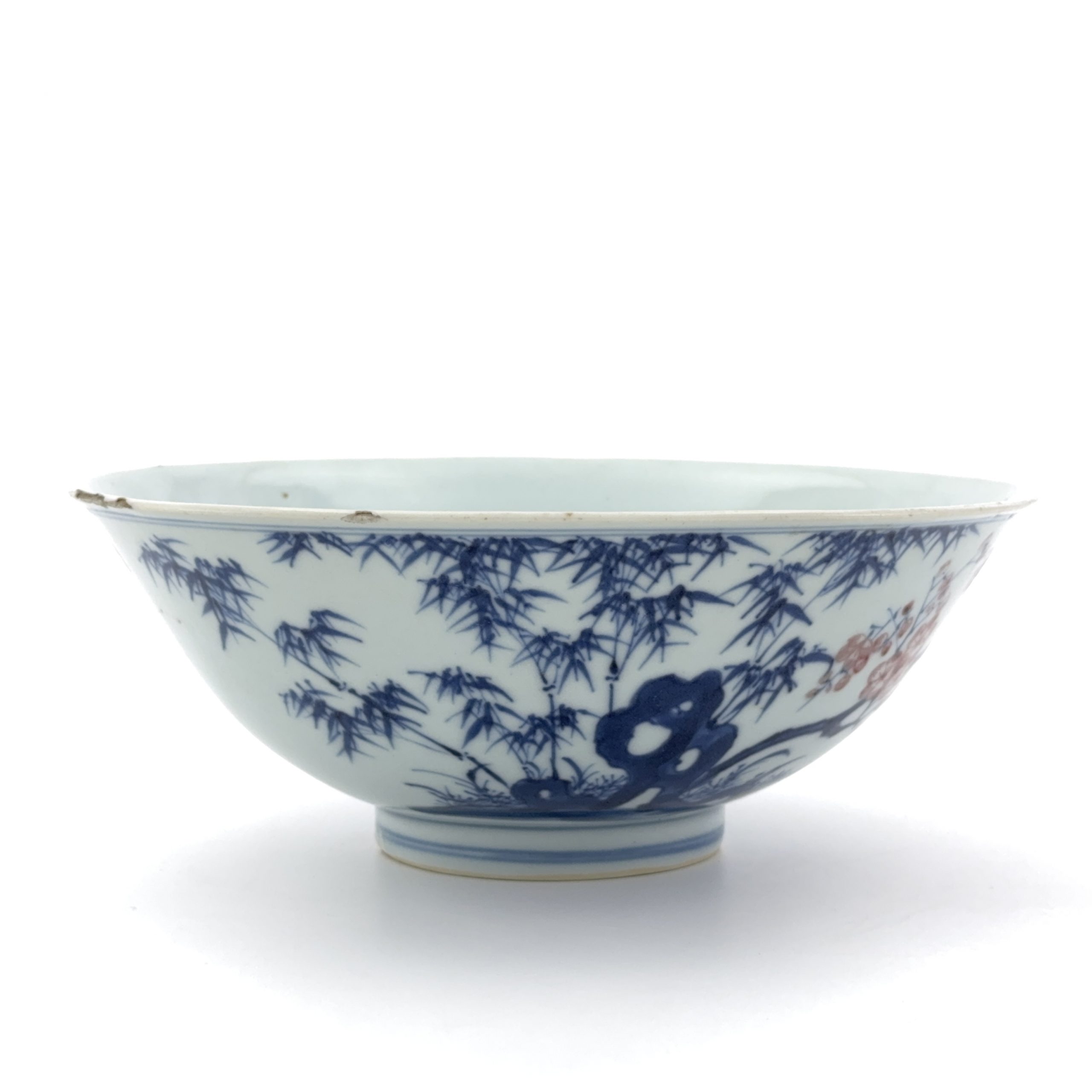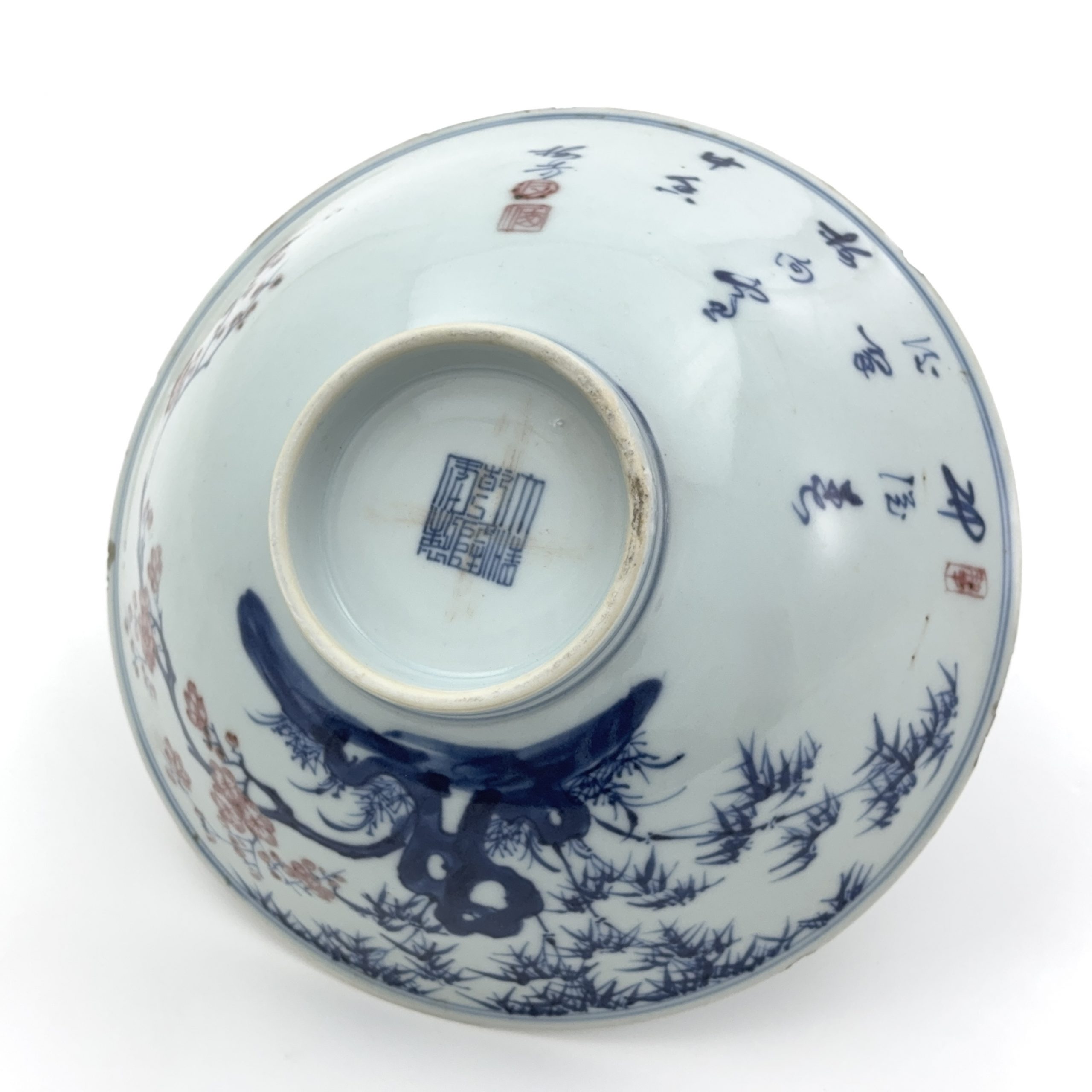 清「大清乾隆年製」款 青花釉裏紅 松竹梅詩文紋 碗