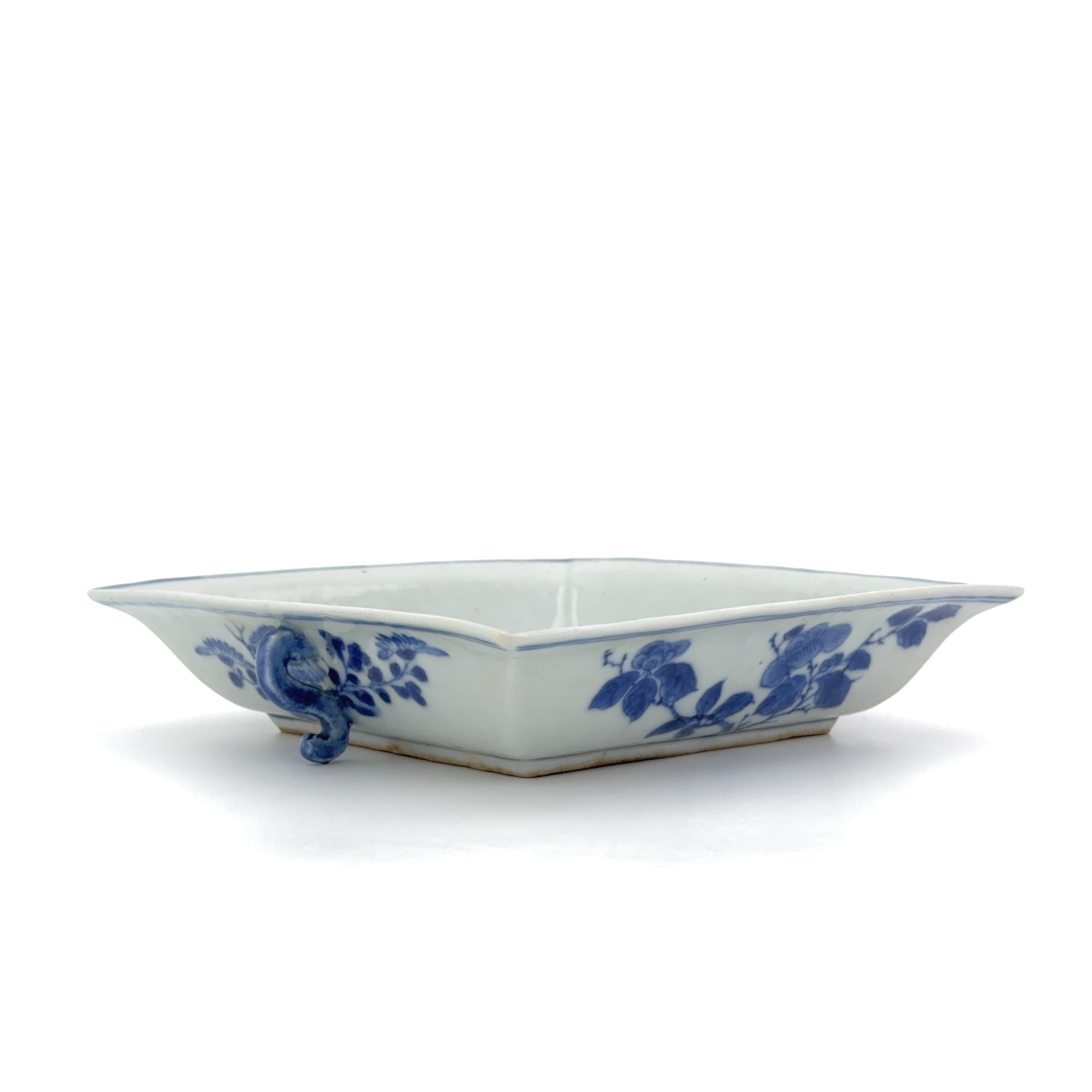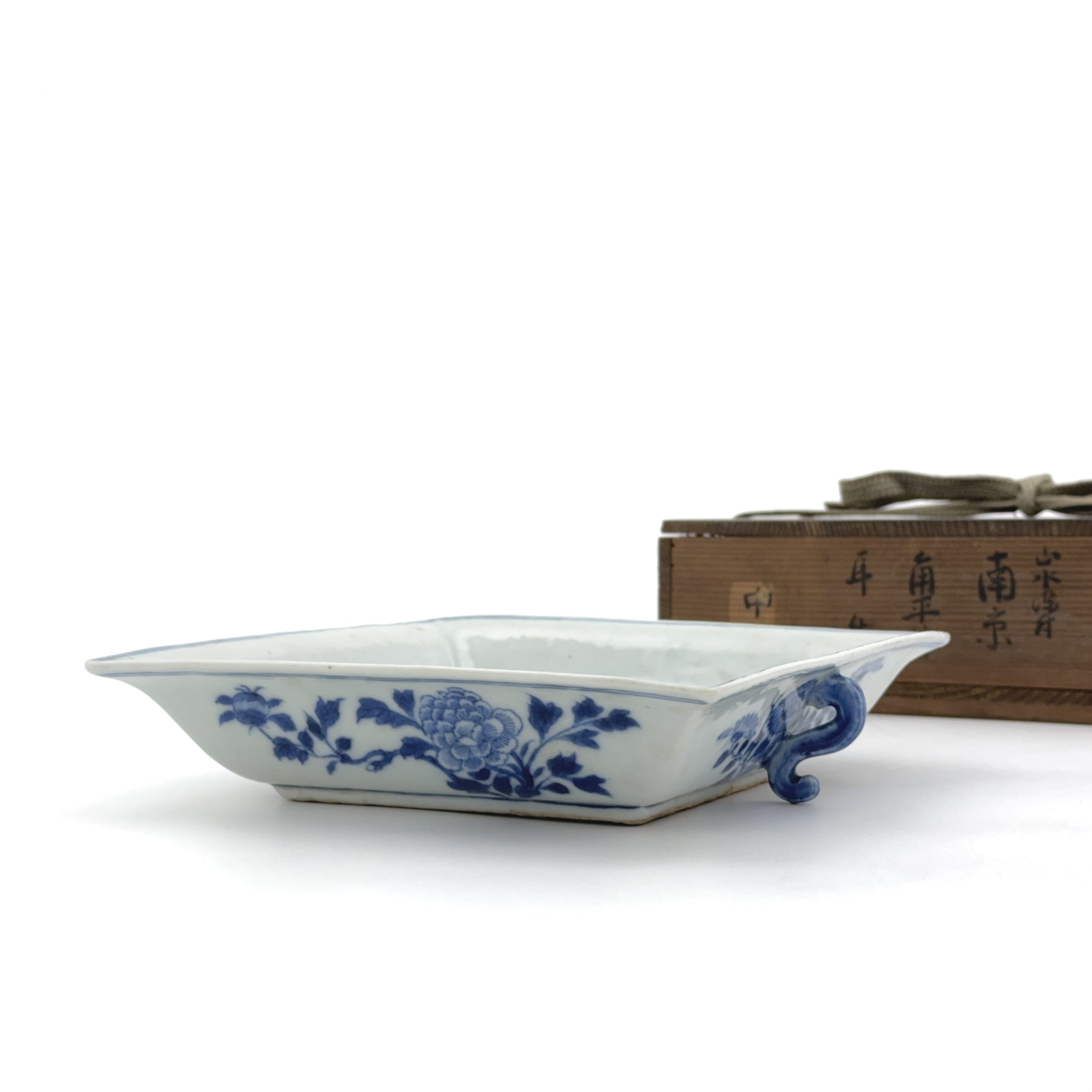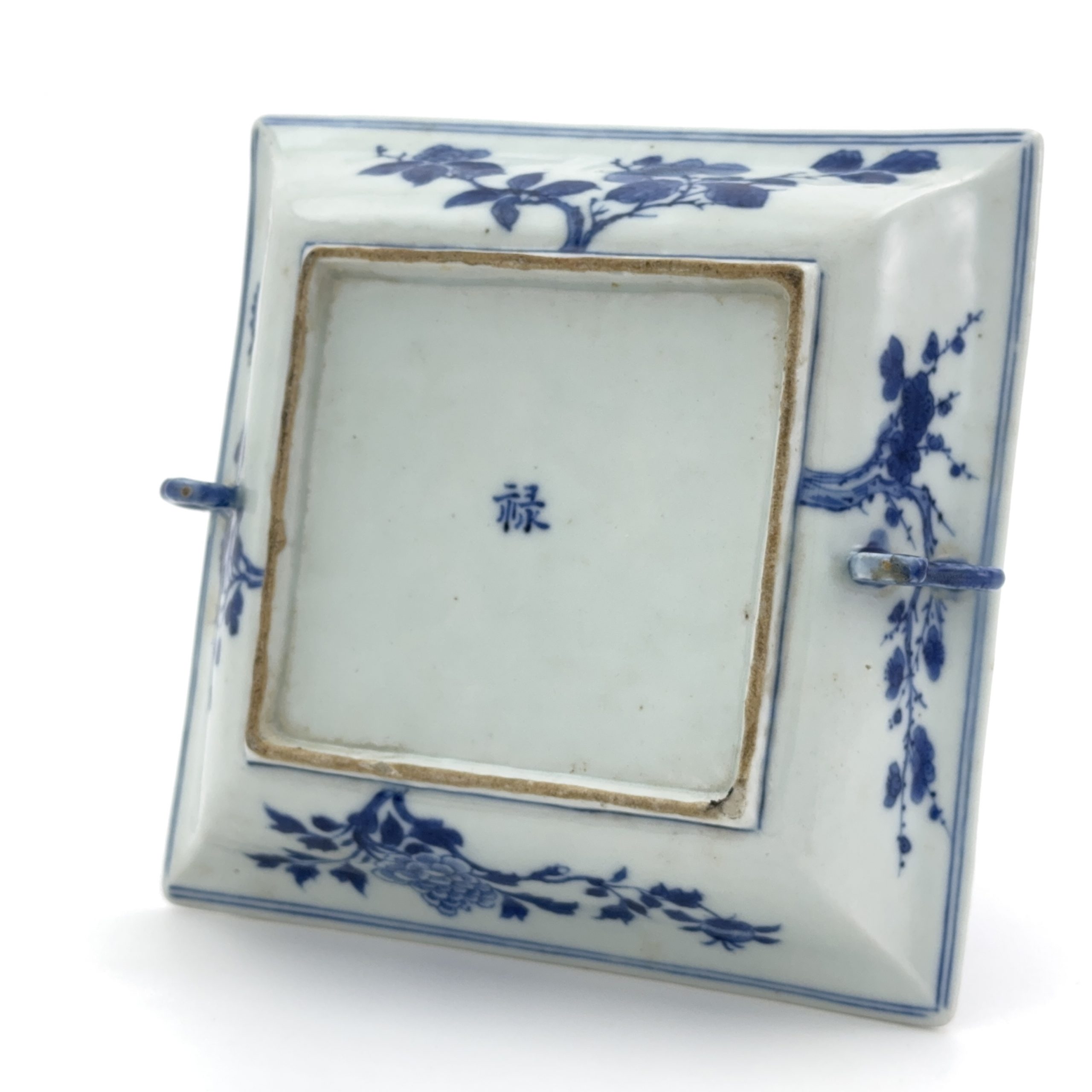 清「禄」款 青花 山水図 雙耳盤