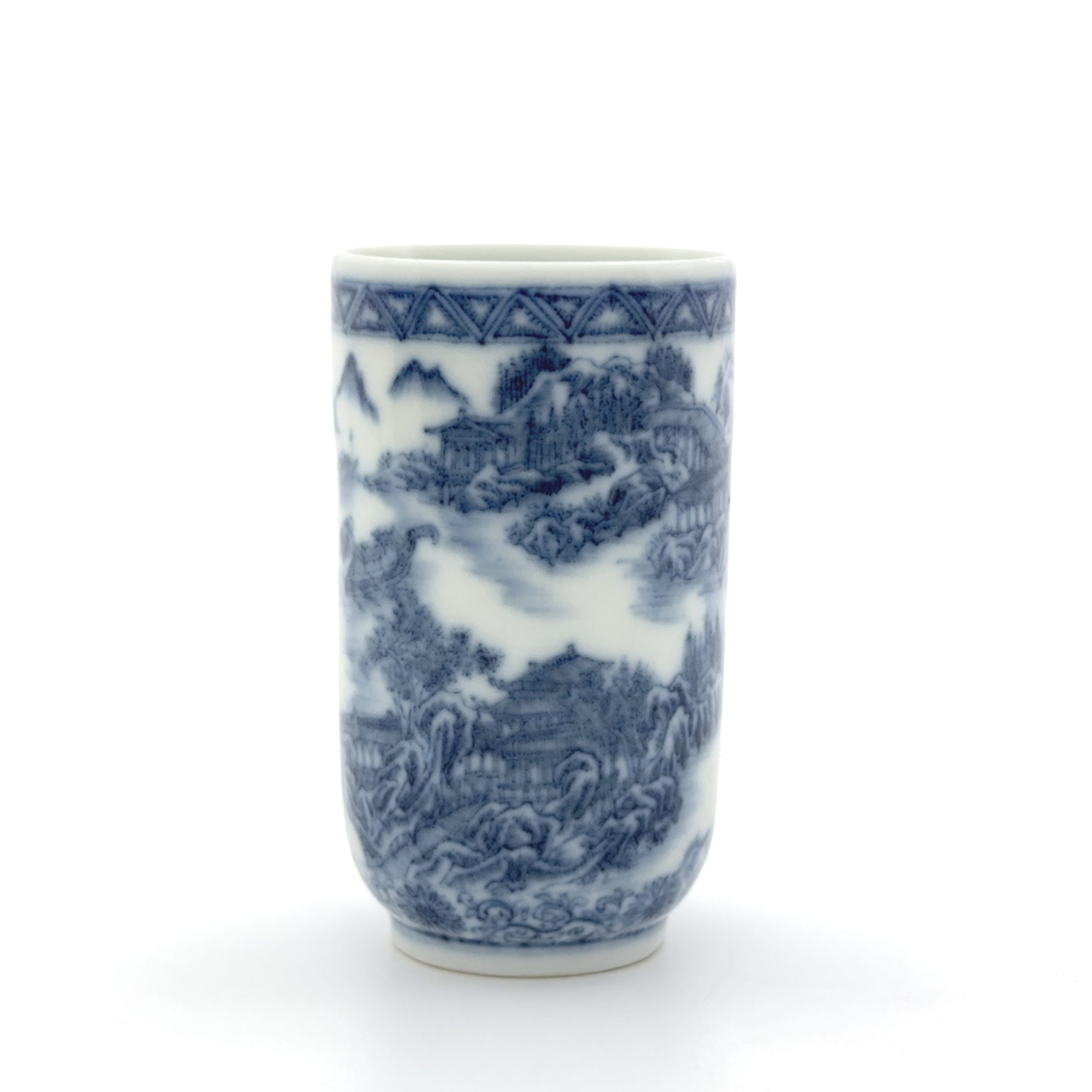 清「若深珍蔵」款 青花 山水図 杯