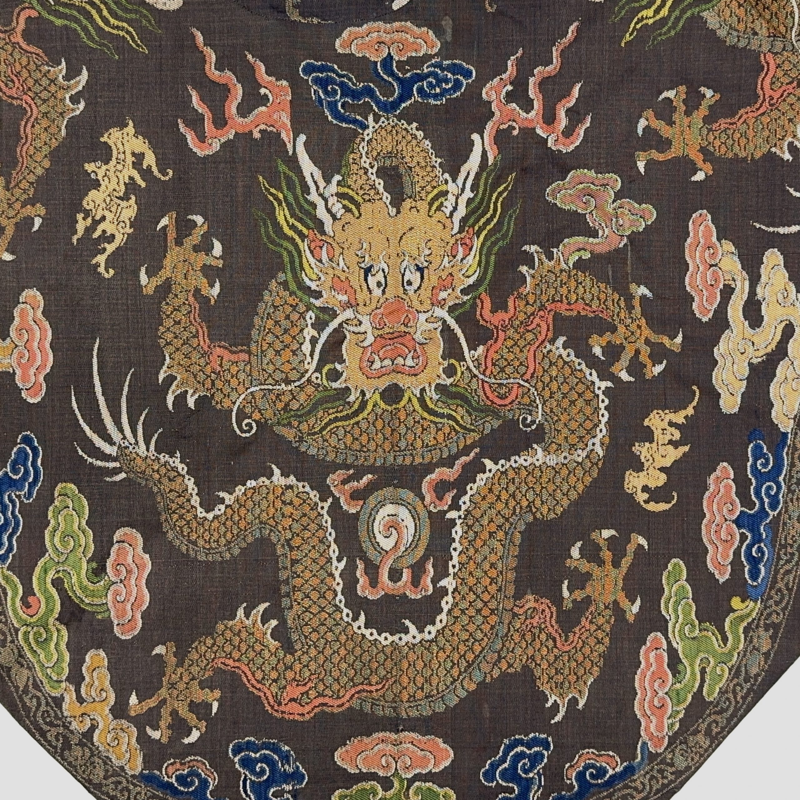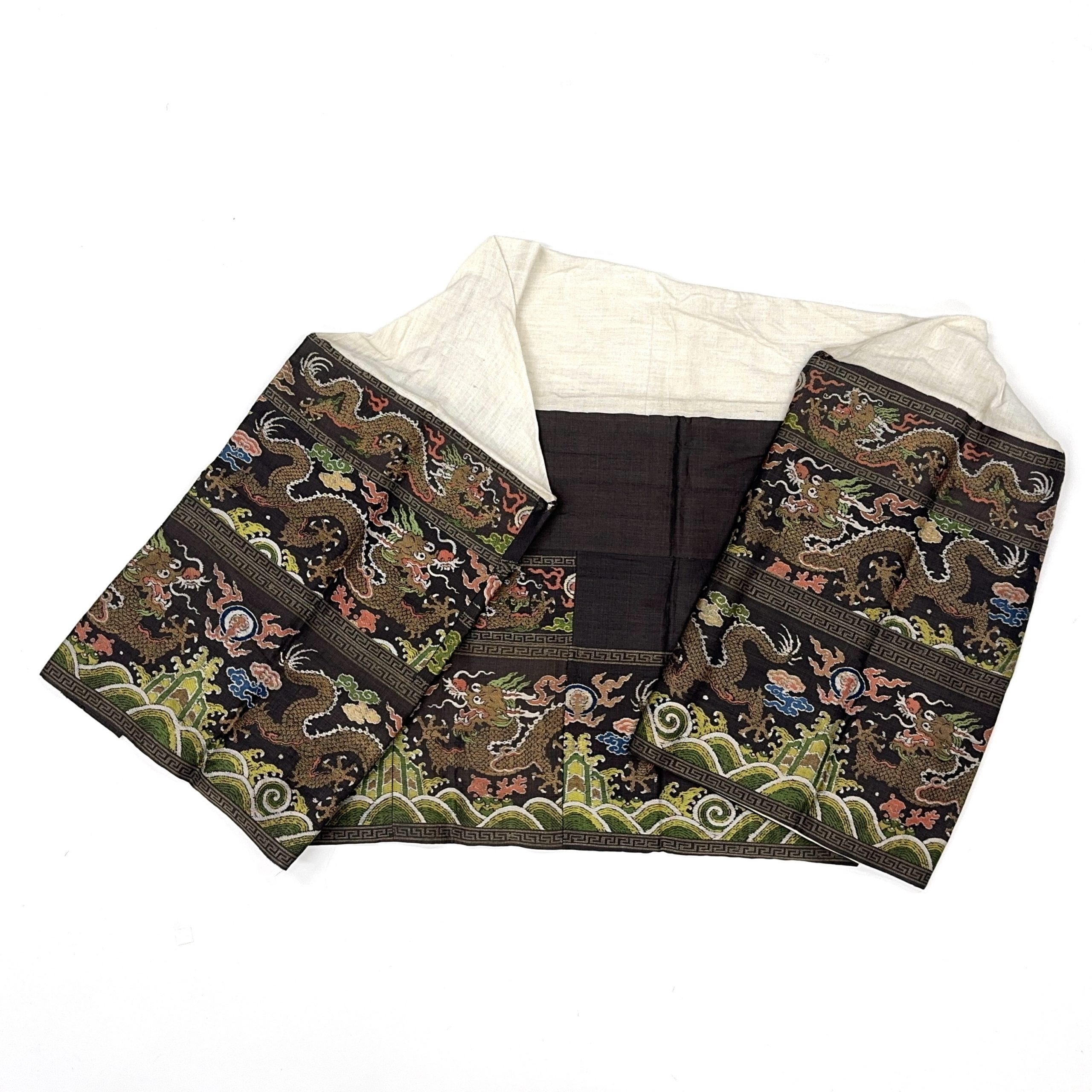 清 茶地龍紋 錦片等 計2件