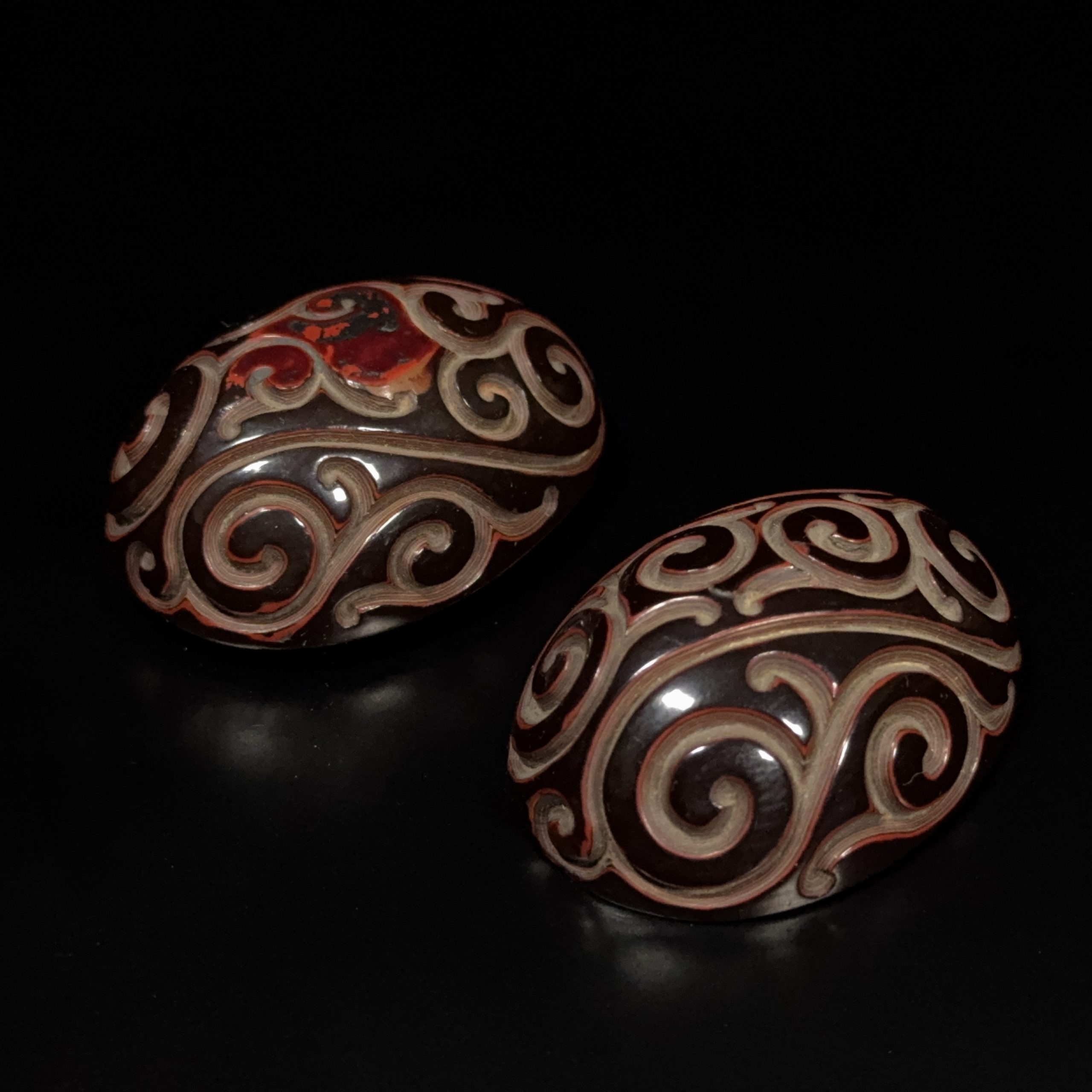 明 剔犀雕 如意雲紋 蓋盒