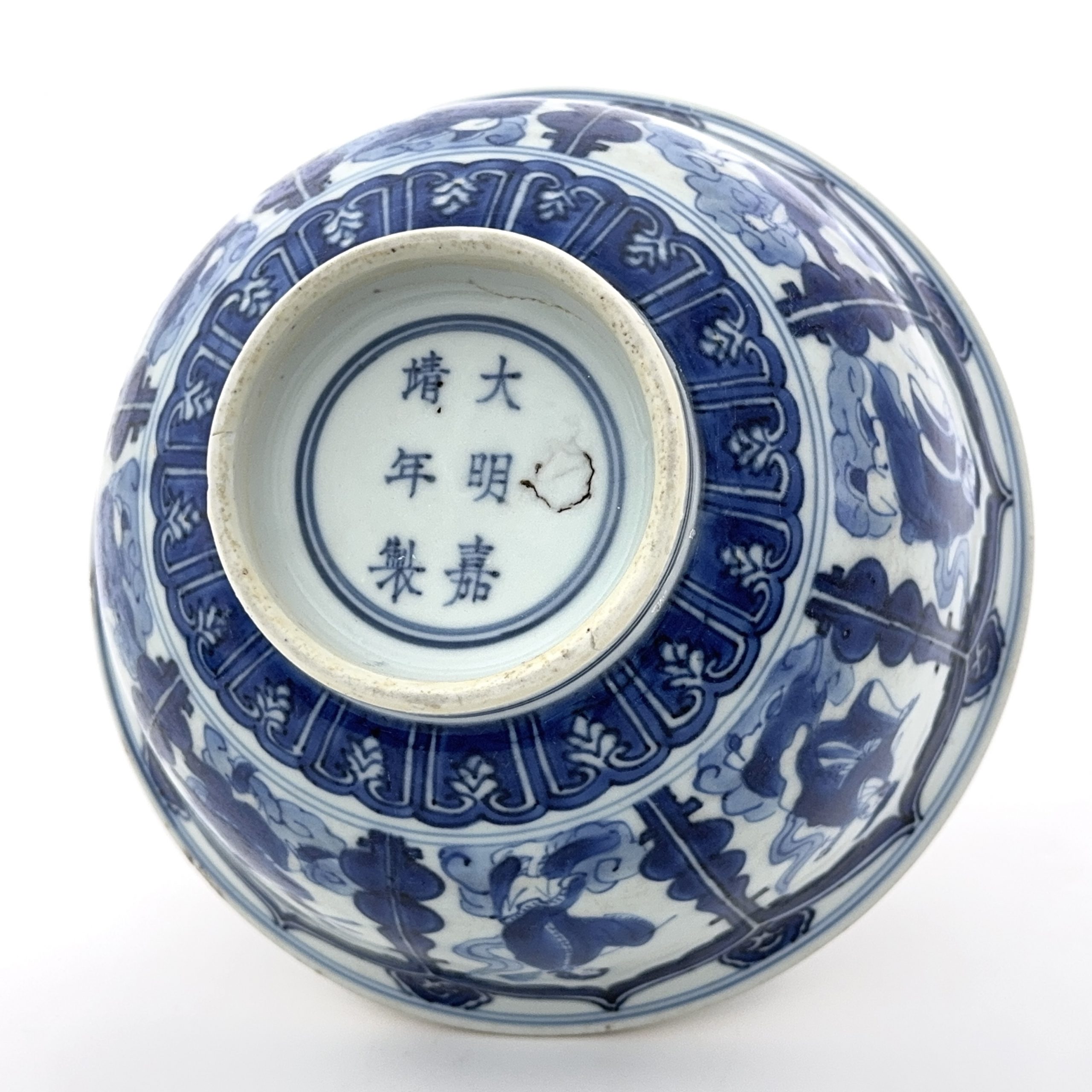 明嘉靖「大明嘉靖年製」款 青花 人物図 碗